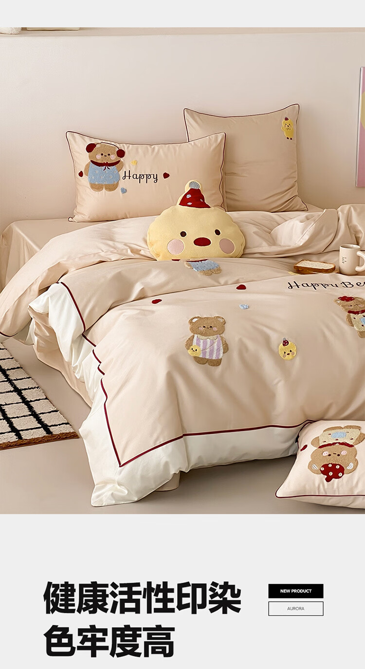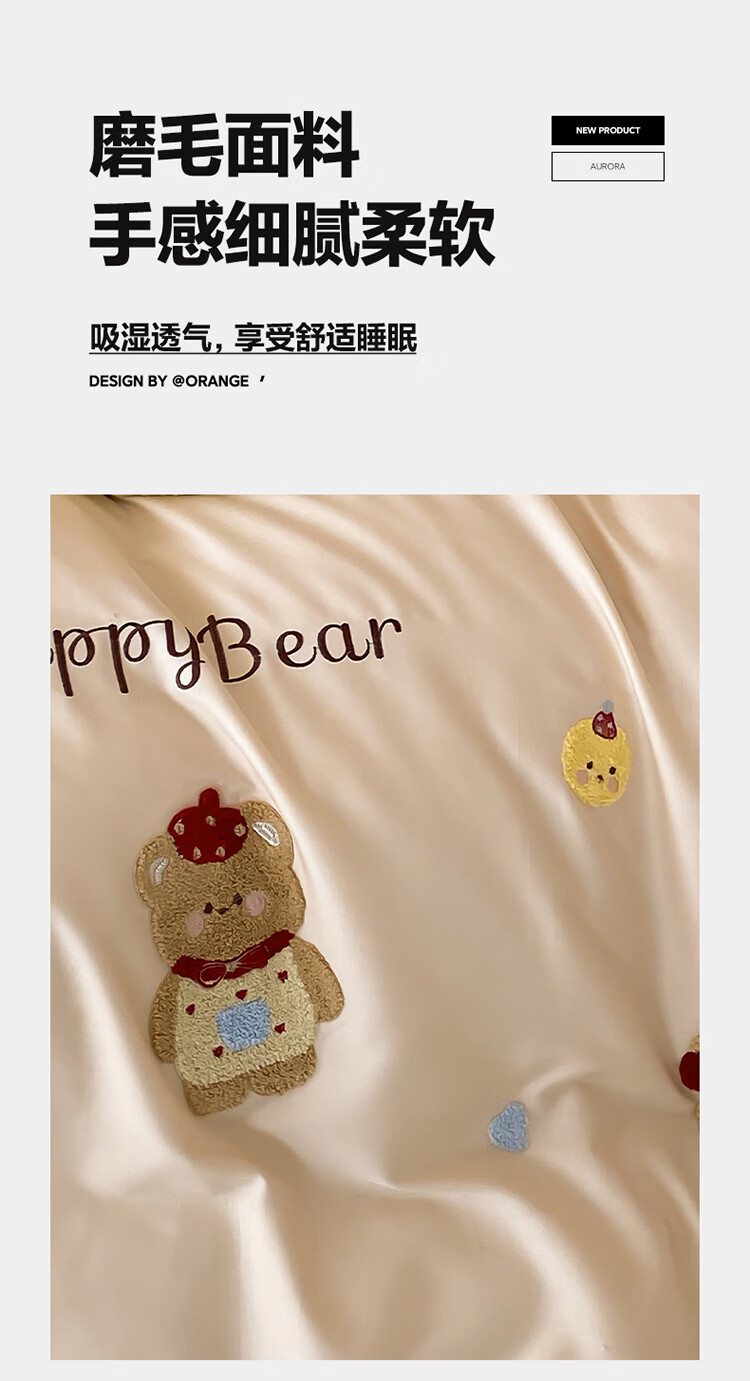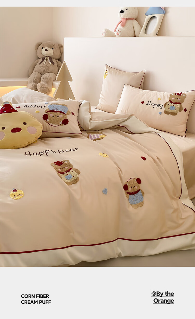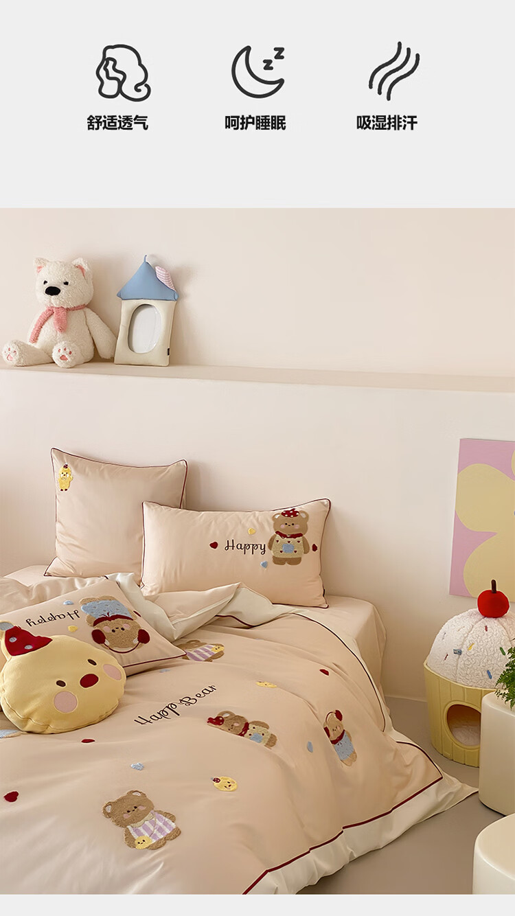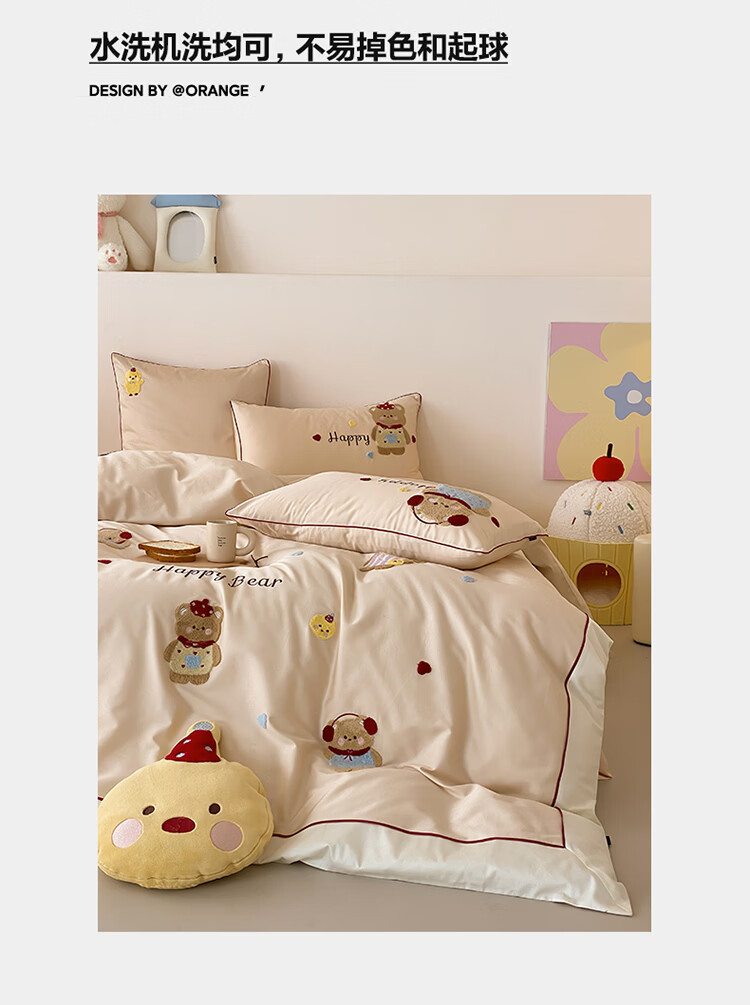 ROLAND LIVE秋冬全棉磨毛卡通四件套柔软被套床单纯棉儿童卧室三件套 XR 全棉磨毛套件-卡通奶油泡芙 1.2米床 床单款 【被套150*200cm】
