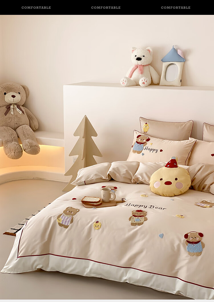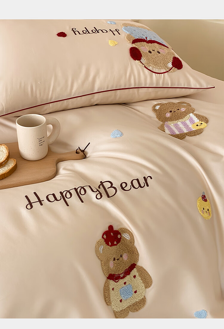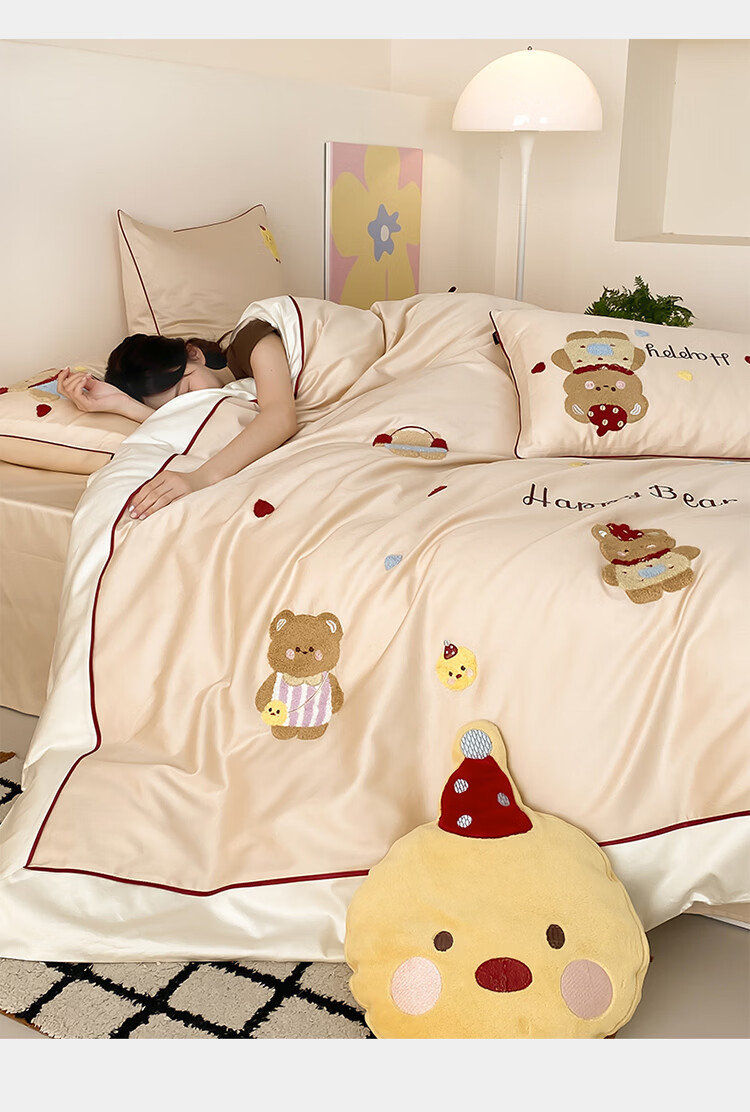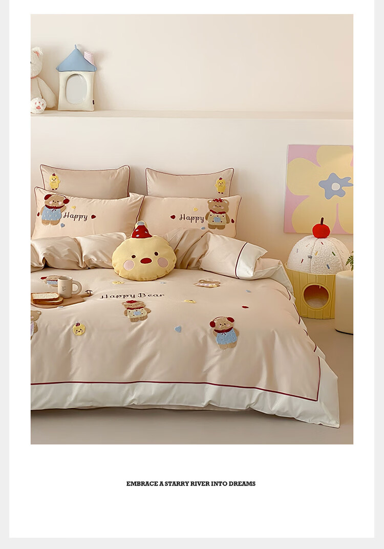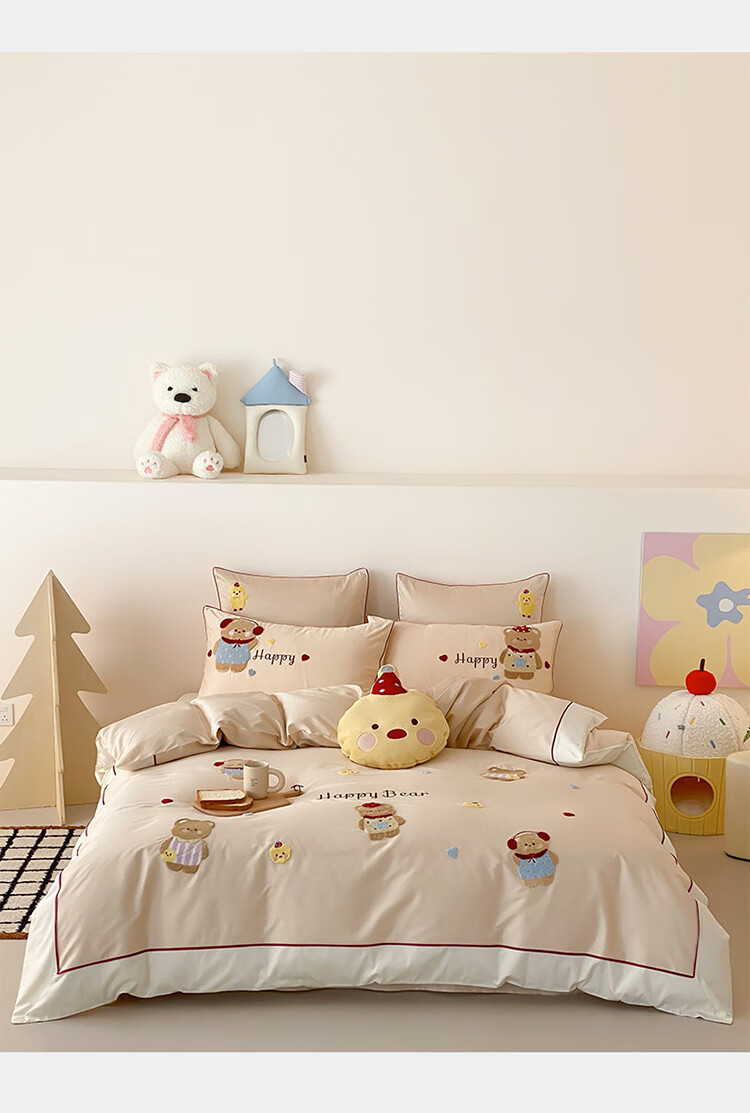ROLAND LIVE秋冬全棉磨毛卡通四件套柔软被套床单纯棉儿童卧室三件套 XR 全棉磨毛套件-卡通奶油泡芙 1.2米床 床单款 【被套150*200cm】