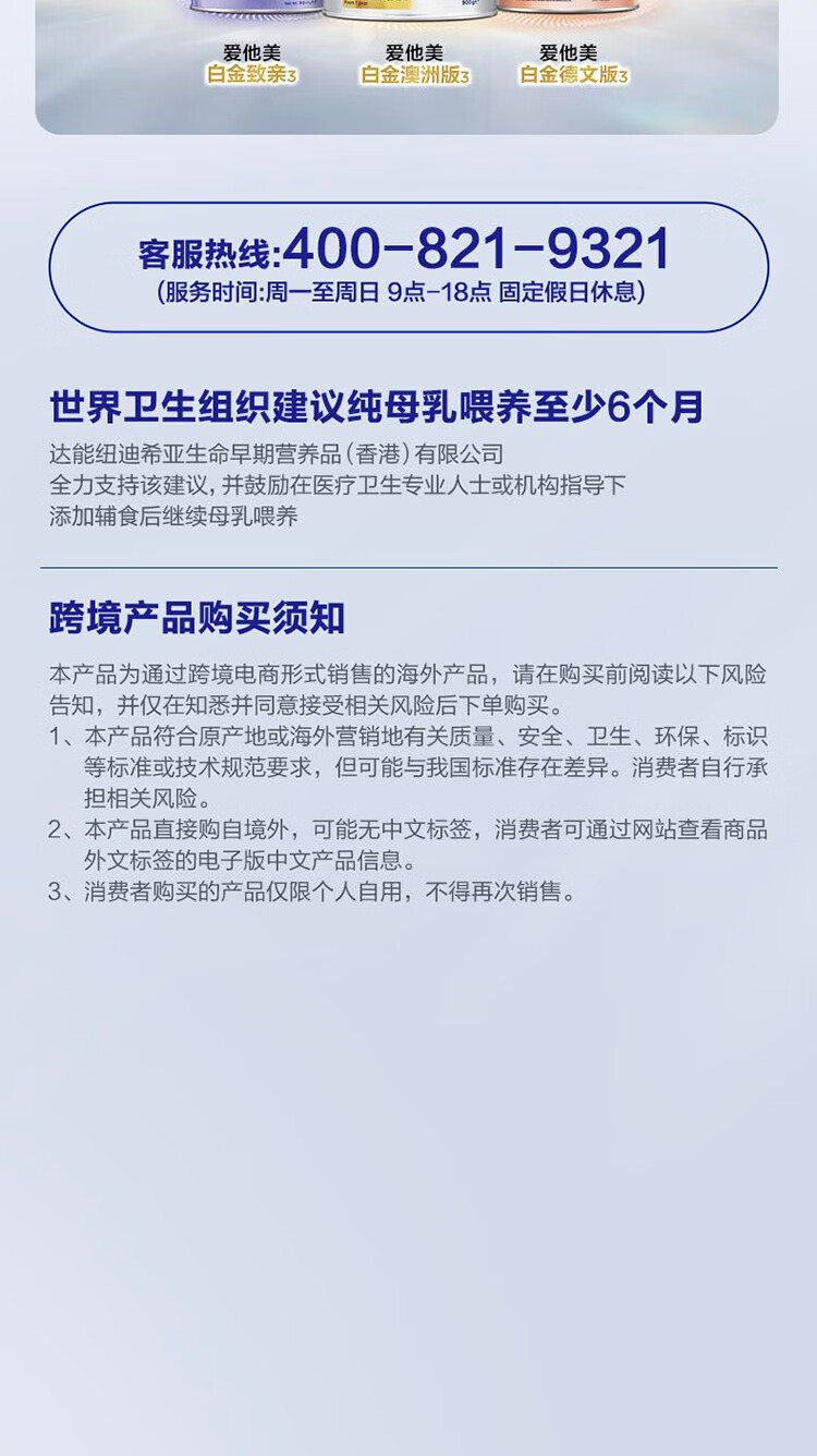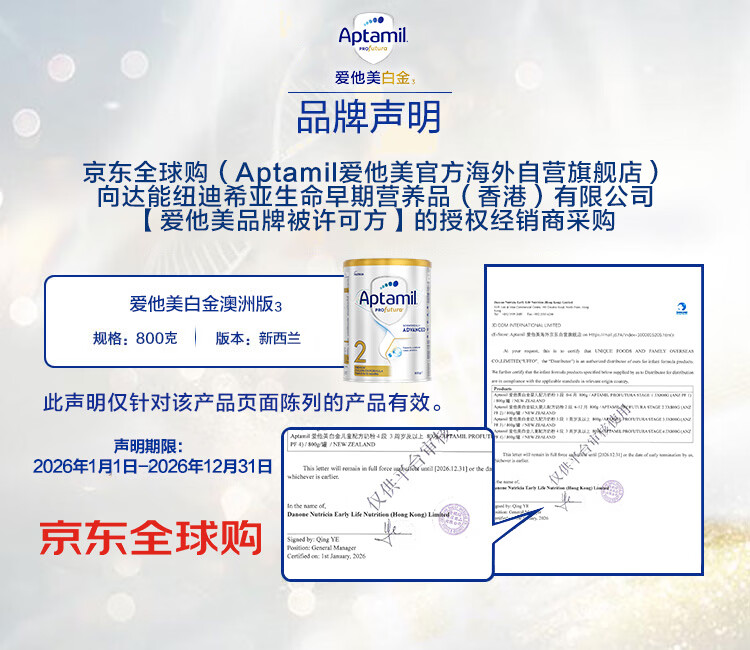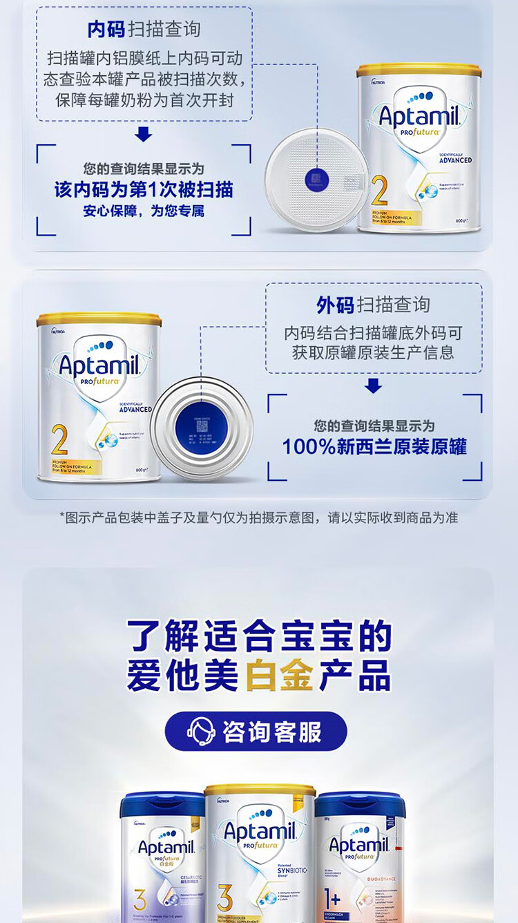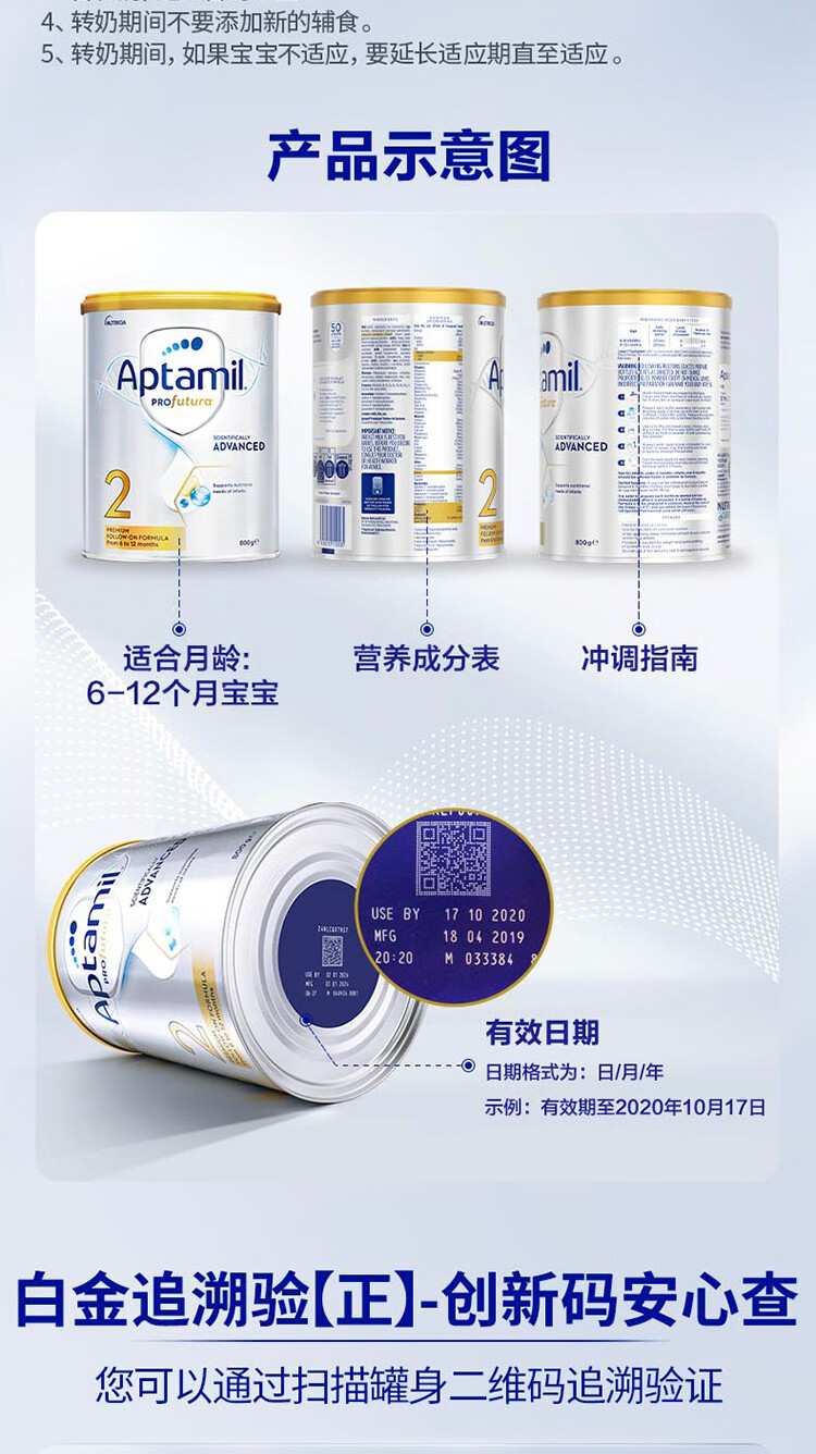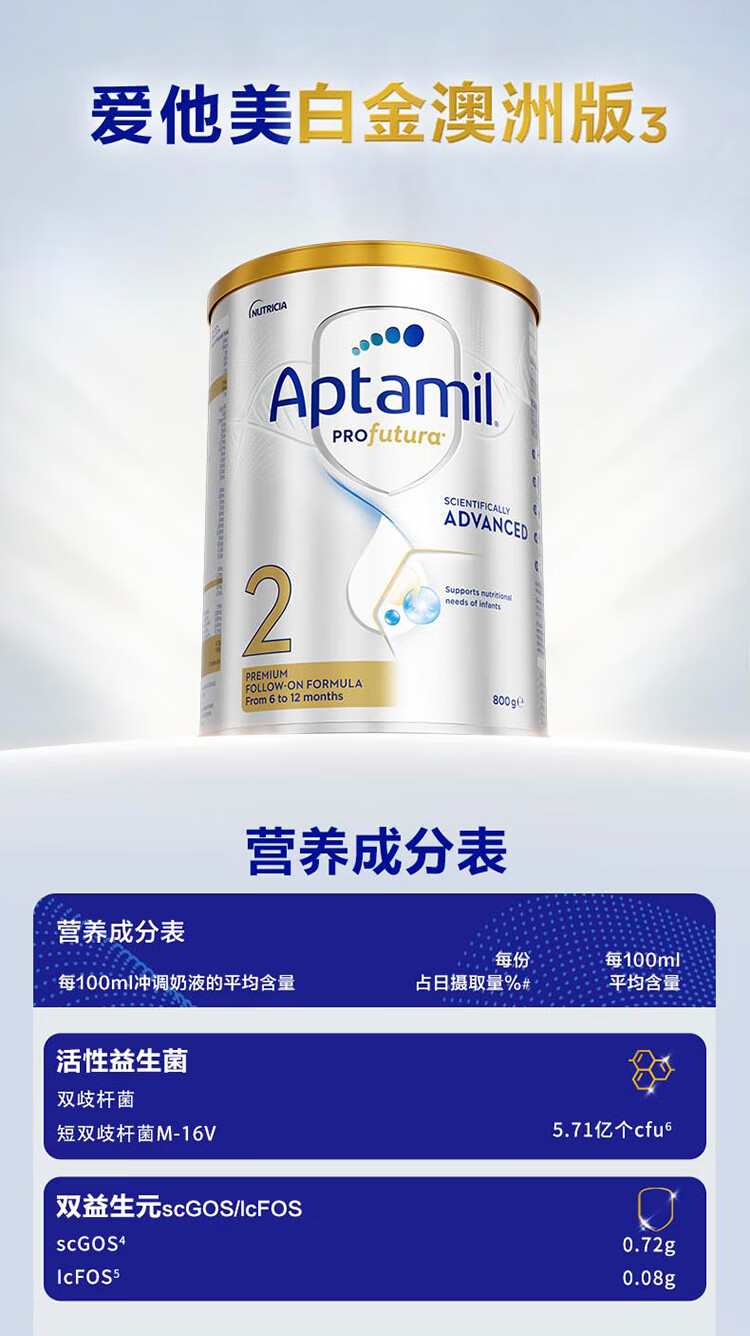 爱他美(Aptamil)白金澳洲版 婴儿配方奶粉 2段(6-12月) 800g