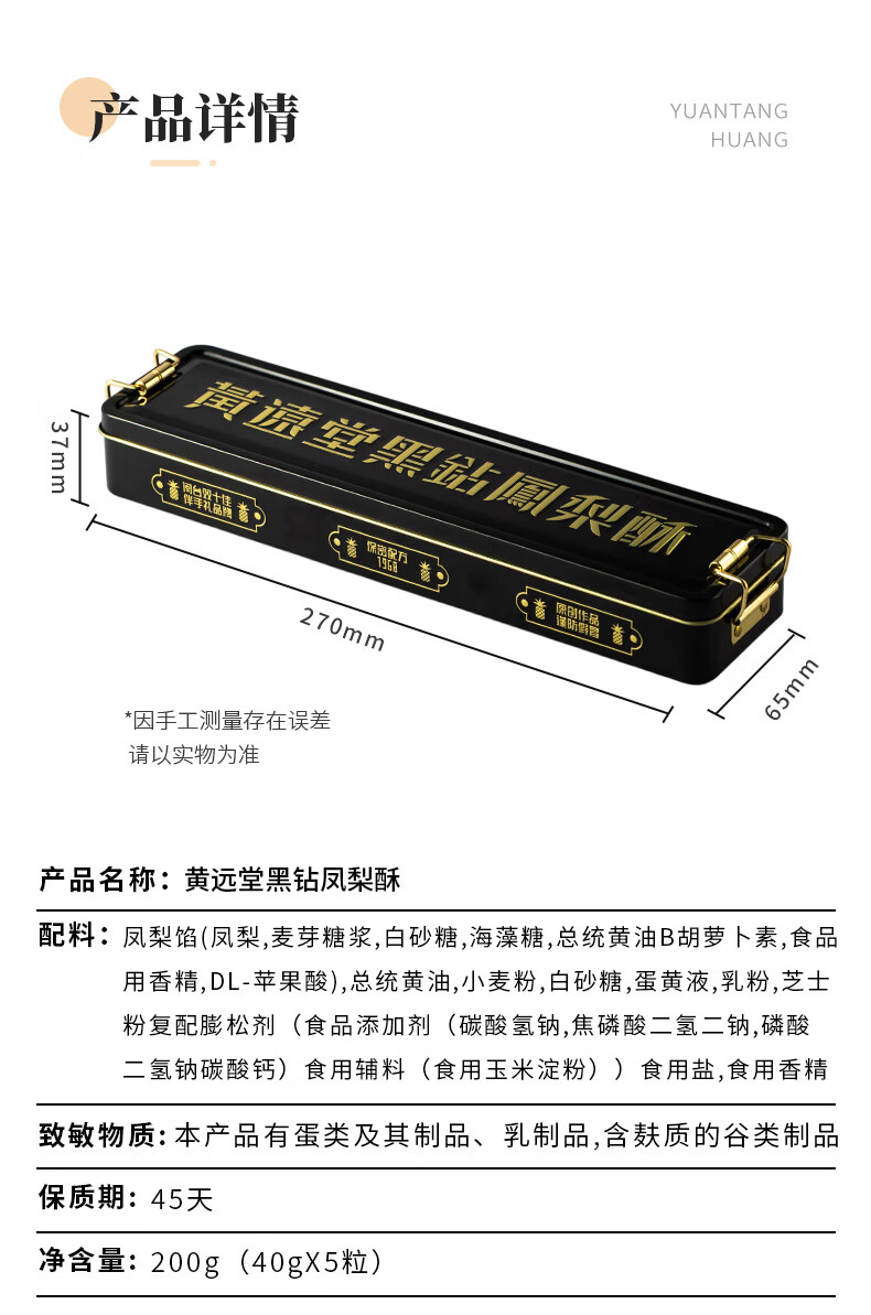 黄远堂黑钻凤梨酥厦门伴手礼特产传统中式糕点心送精致年货礼盒零食 黑钻凤梨酥*1盒200g