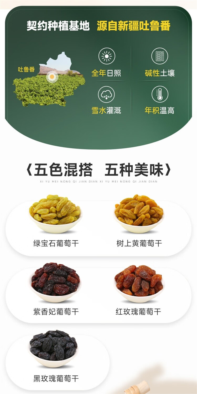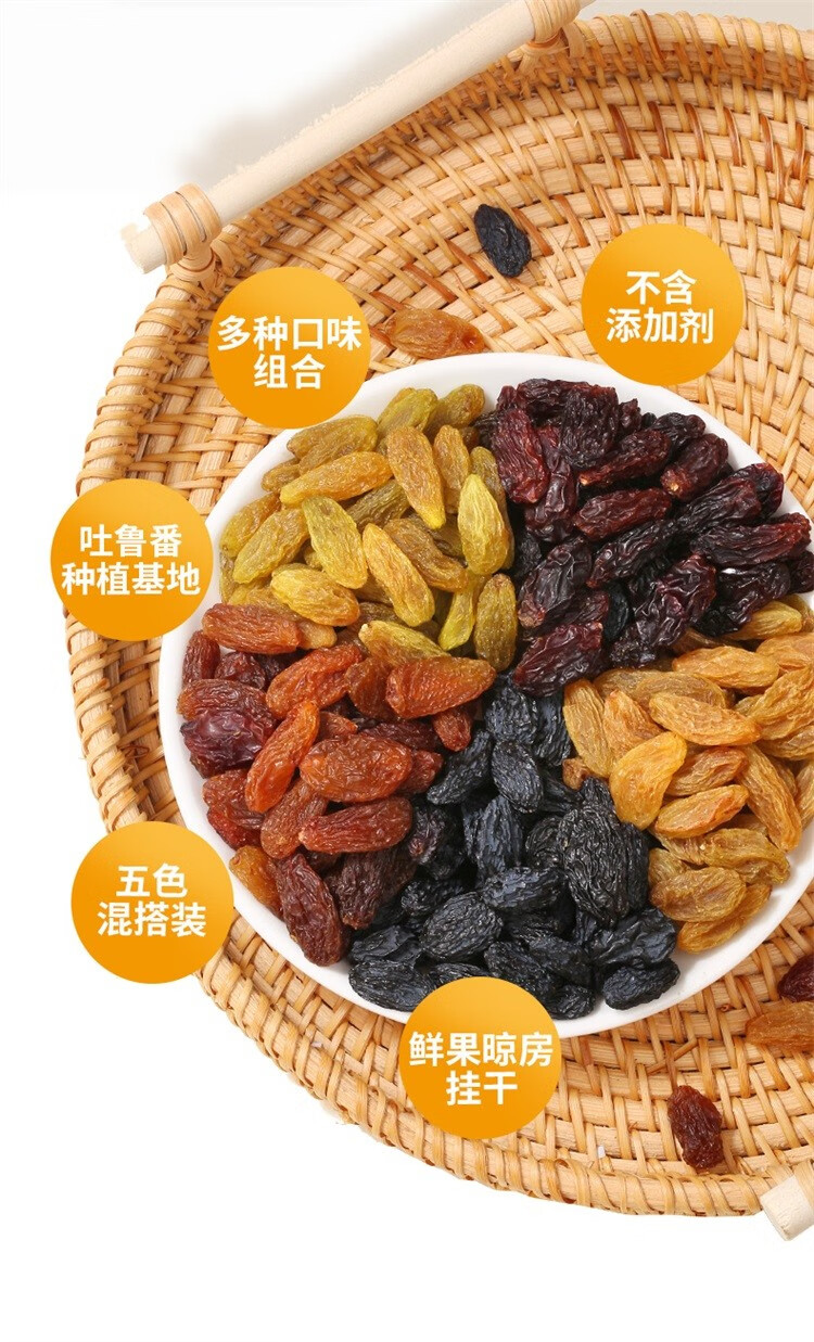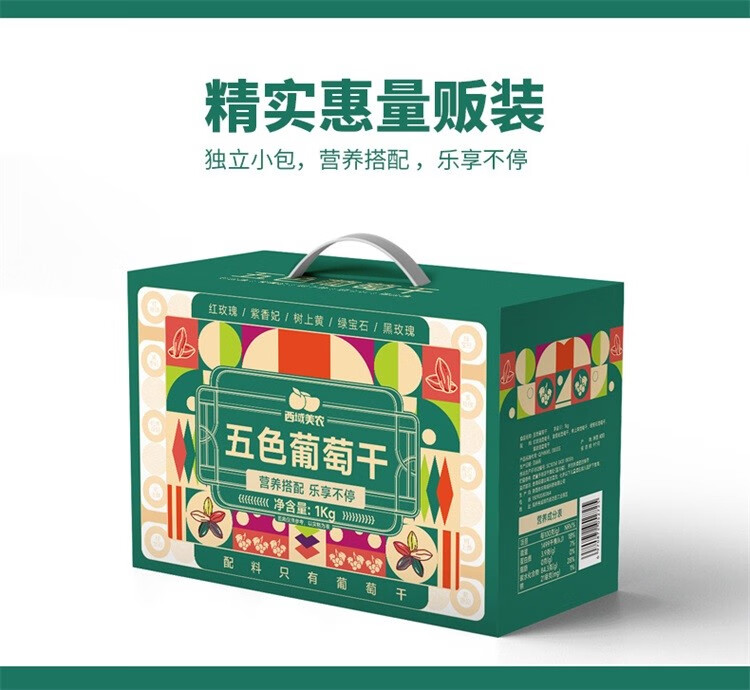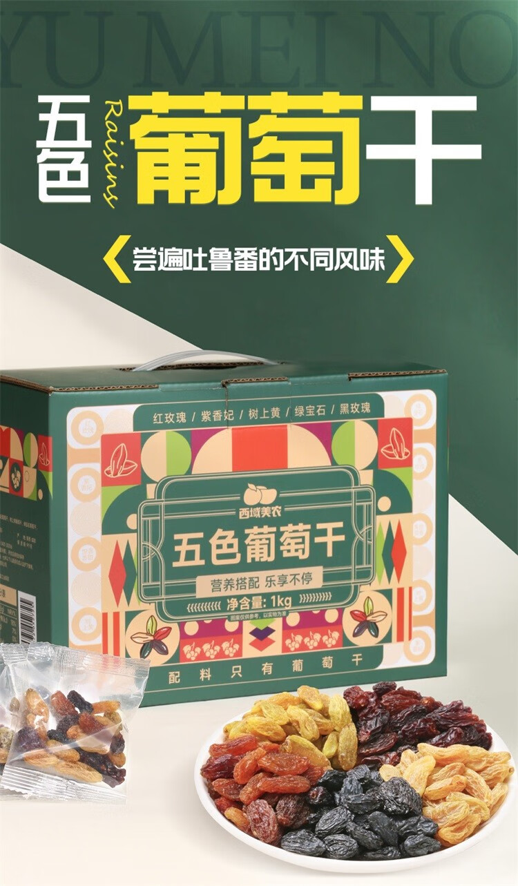 西域美农五色葡萄干1000g 独立小包装新疆特产 休闲零食蜜饯果干整箱零食