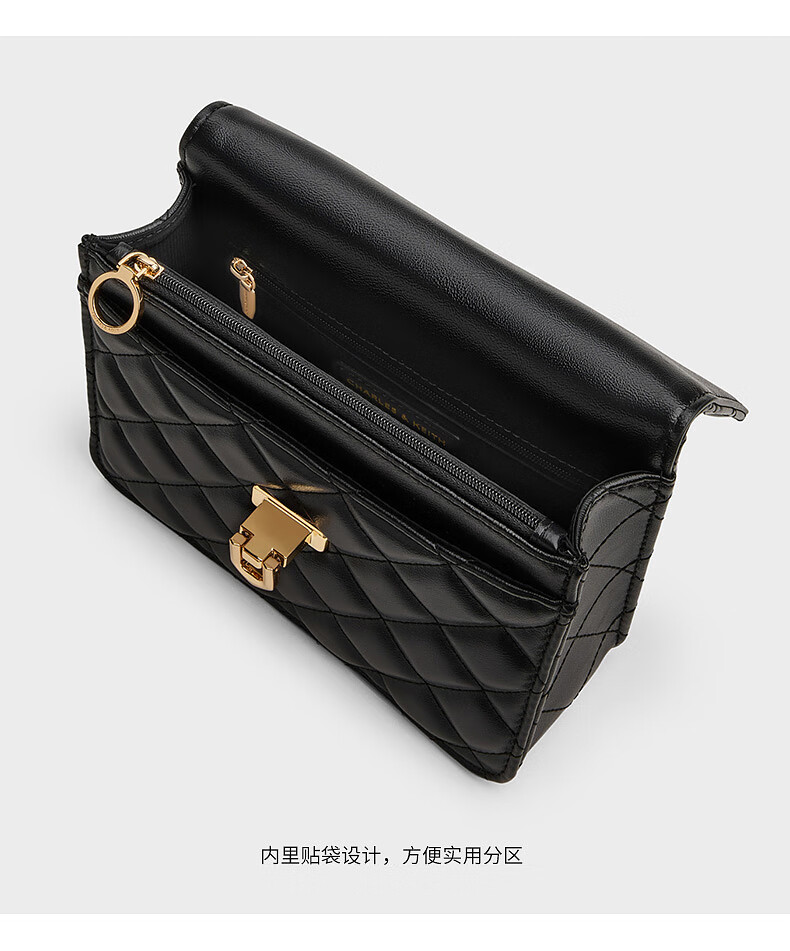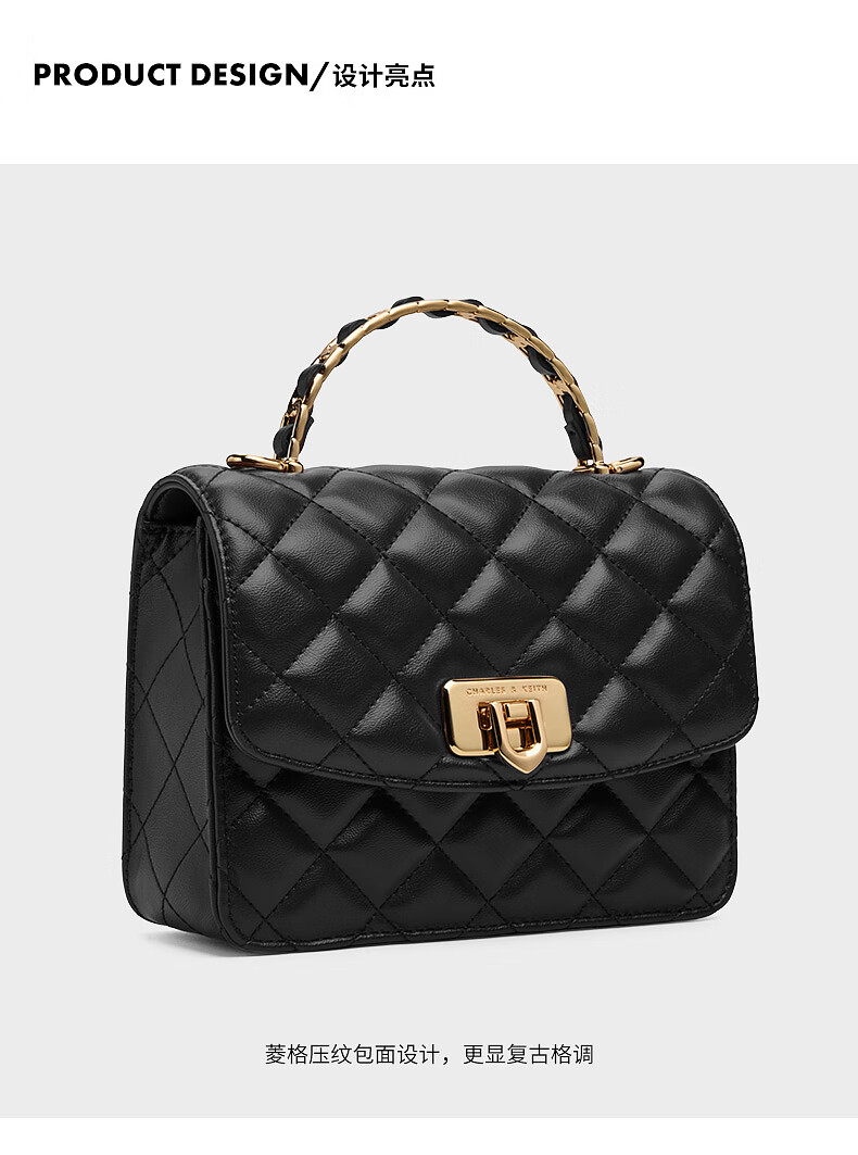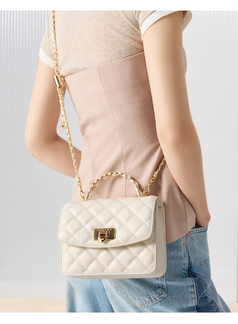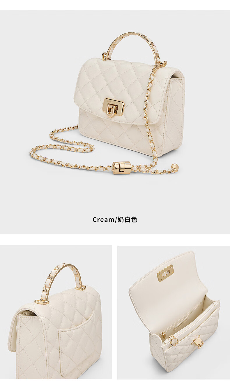 CHARLES&KEITH菱格链条手提斜挎包小方包包女包生日礼物CK2-50701608 Cream奶白色 S