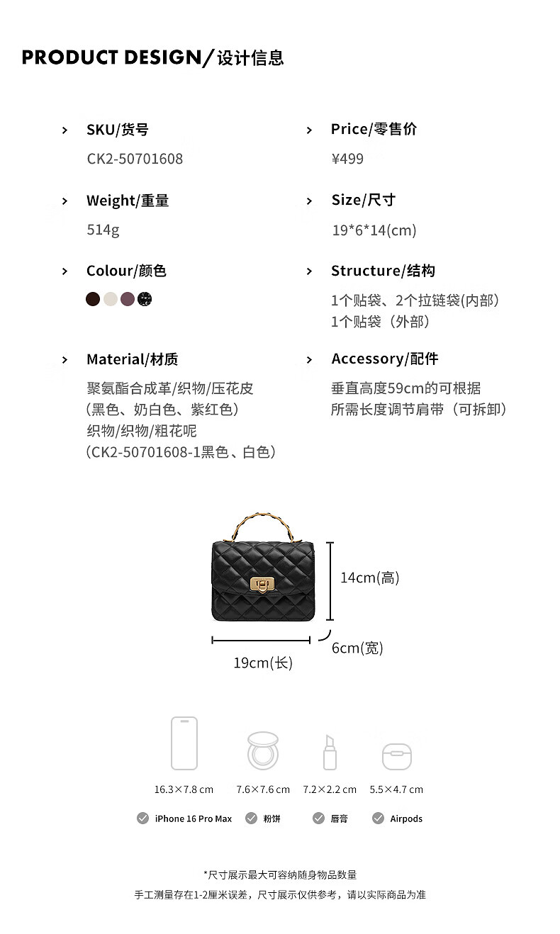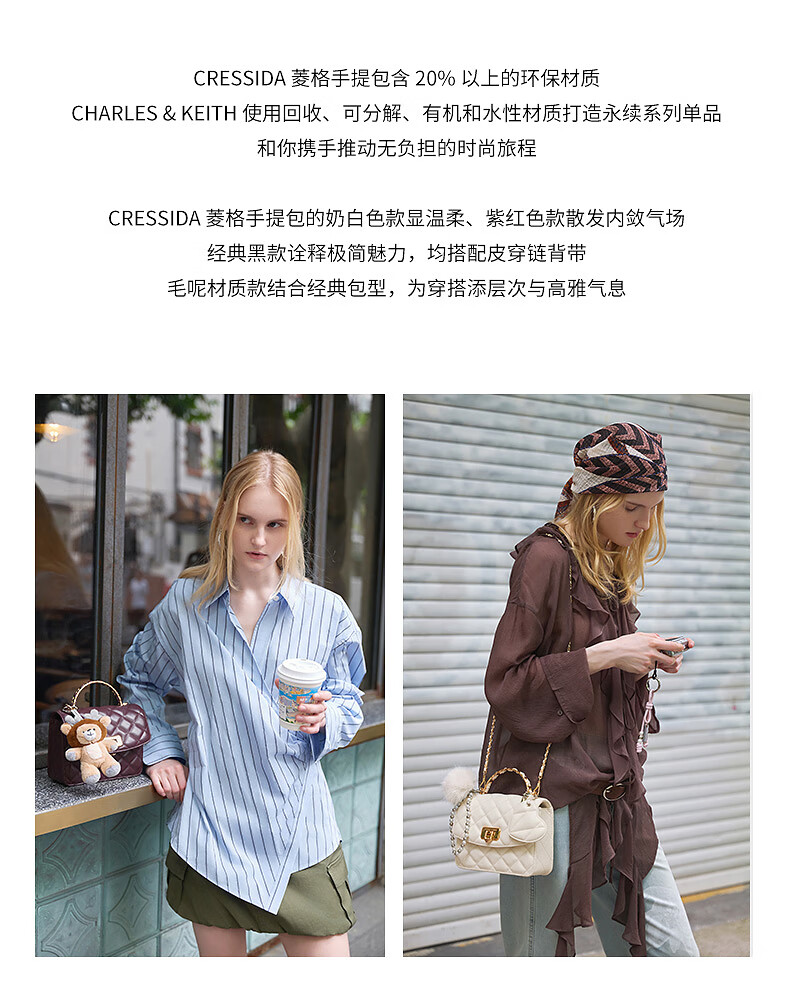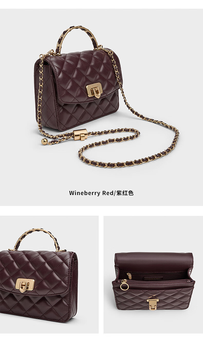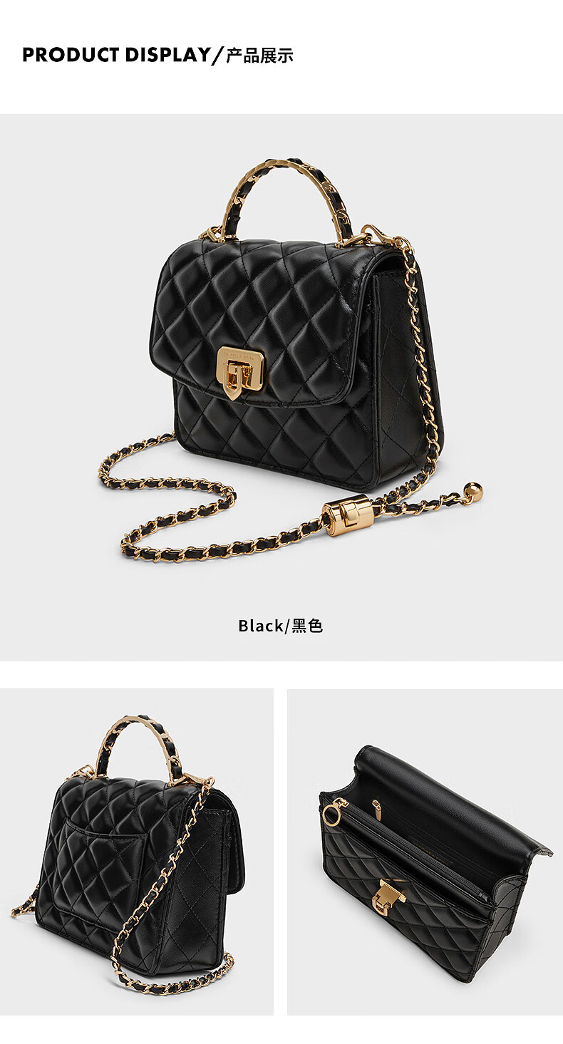 CHARLES&KEITH菱格链条手提斜挎包小方包包女包生日礼物CK2-50701608 Cream奶白色 S