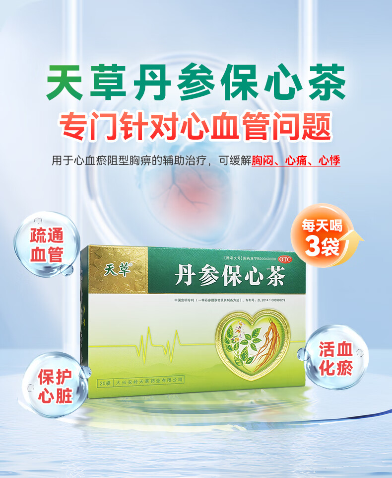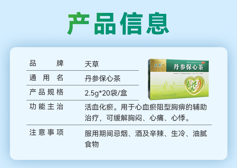 天草 丹参保心茶 2.5g*180袋 活血化瘀 用于心血瘀阻型胸痹的辅助治疗可缓解胸闷、心痛、心悸