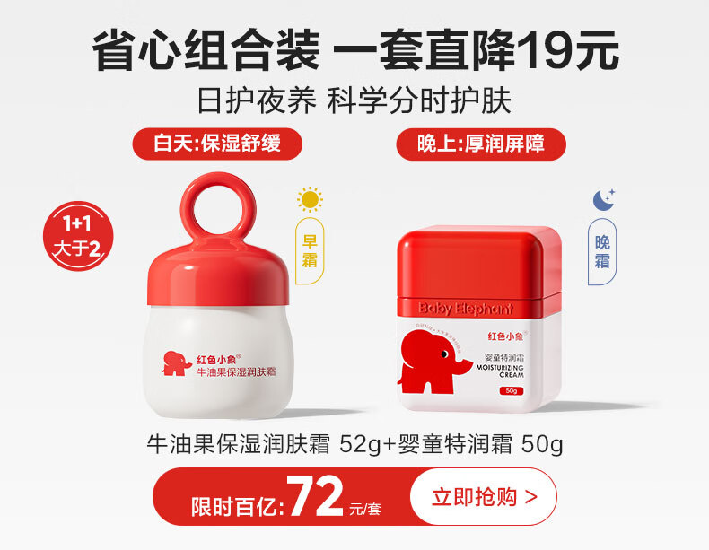 红色小象牛油果润肤霜儿童面霜换季保湿舒缓滋润宝宝面霜52g
