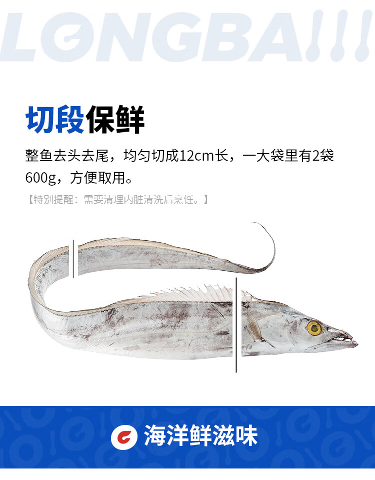 GUO LIAN国联水产 东海带鱼段2.4斤 去头去尾 国产海鲜 生鲜鱼类