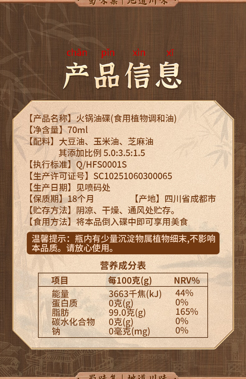 蜀味集 火锅油碟70ml*7罐 四川火锅香油食用调味油 烧烤火锅底料蘸料