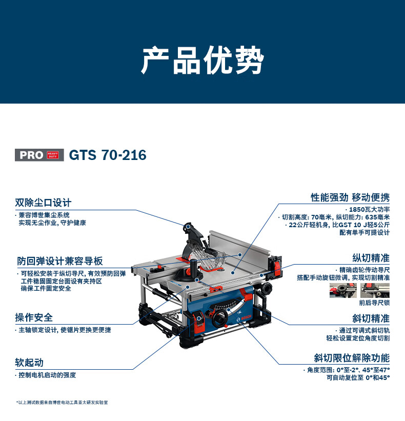 博世(BOSCH)GTS 70-216重载级台锯木工高效切割台式切割机大功率多功能电锯 GTS 70-216重载级台锯
