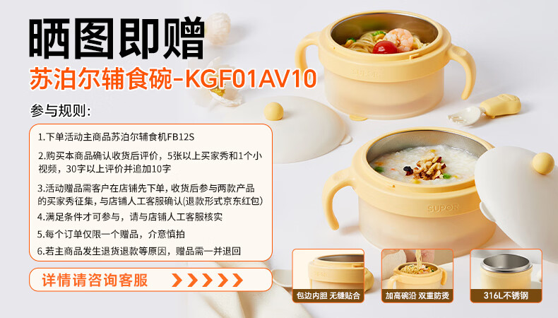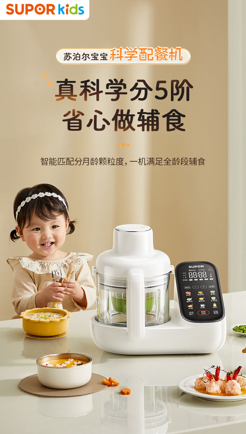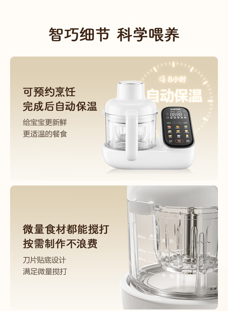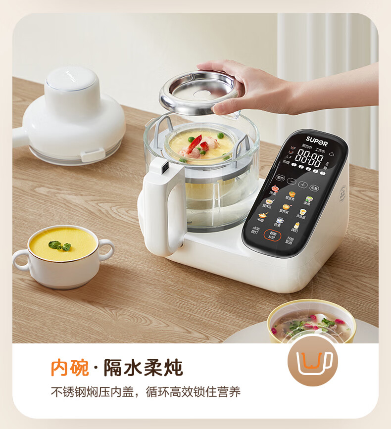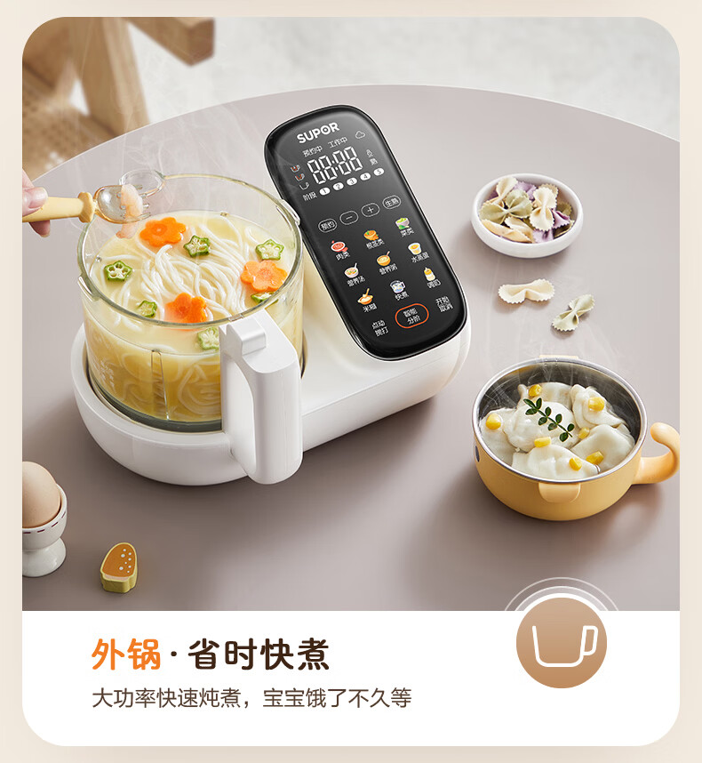 苏泊尔(SUPOR)辅食机婴儿辅食锅 蒸煮搅一体多合一米糊辅食料理机全钢刀 FB12S