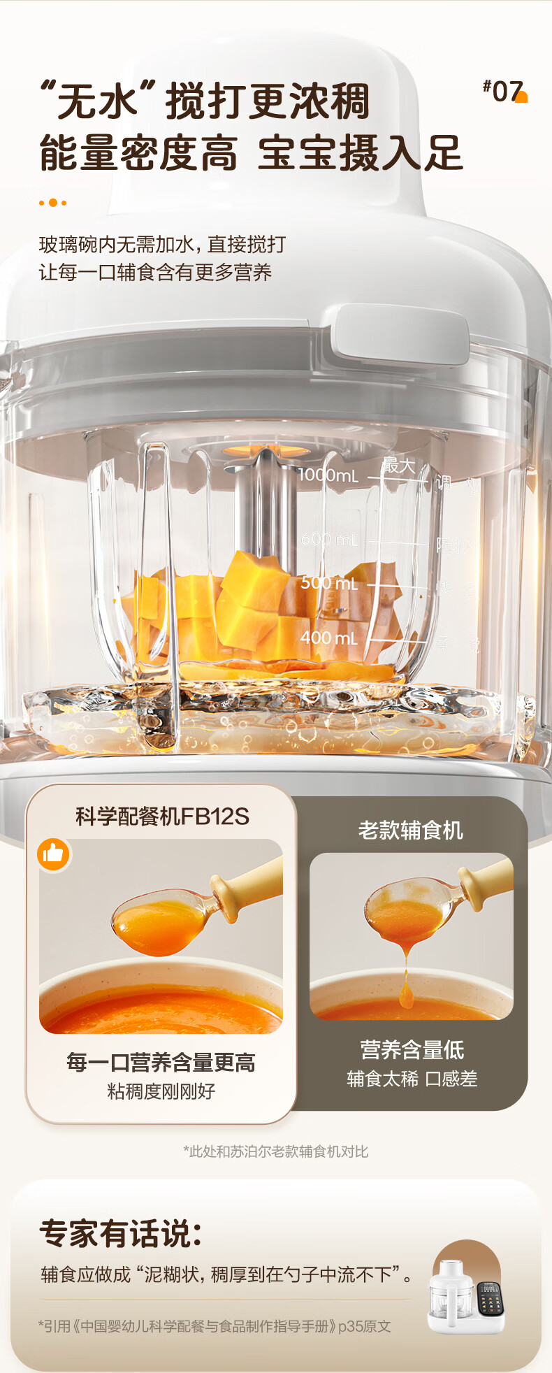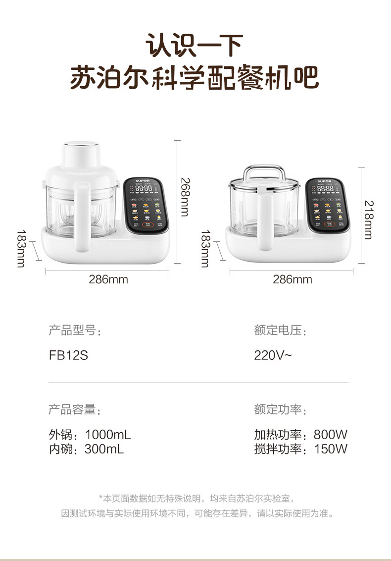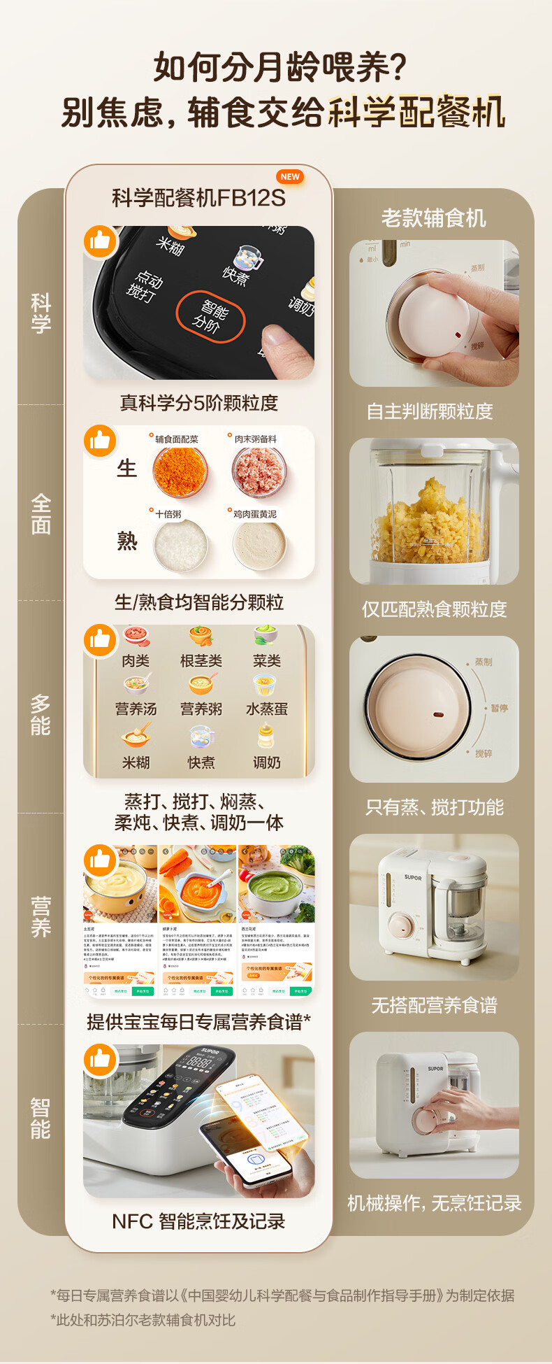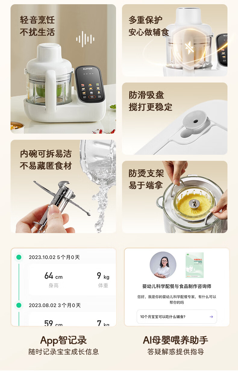 苏泊尔(SUPOR)辅食机婴儿辅食锅 蒸煮搅一体多合一米糊辅食料理机全钢刀 FB12S