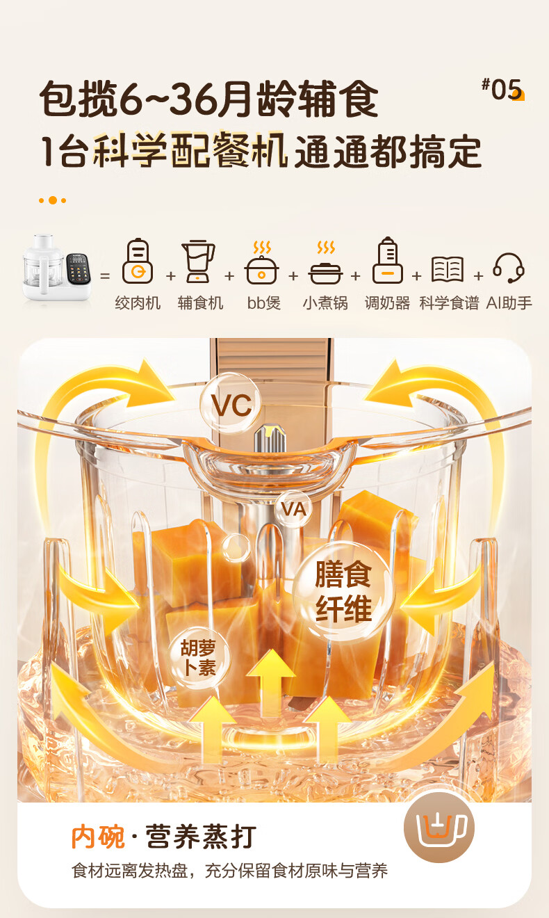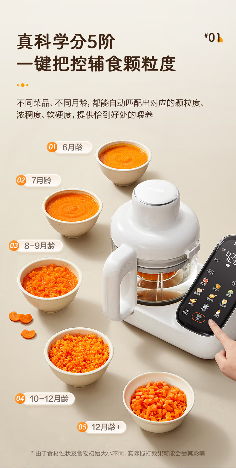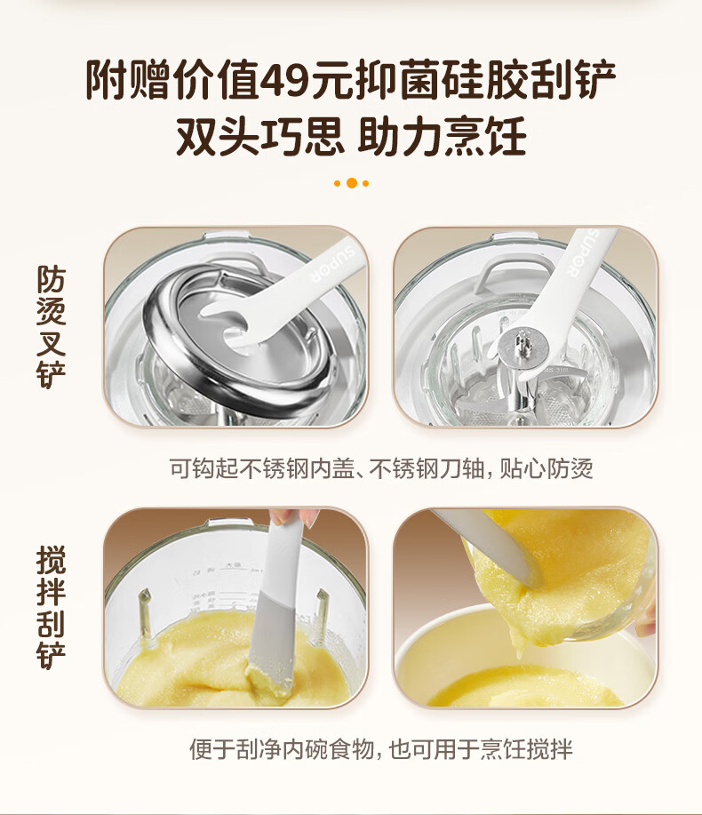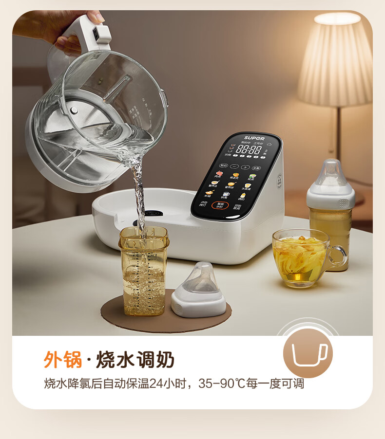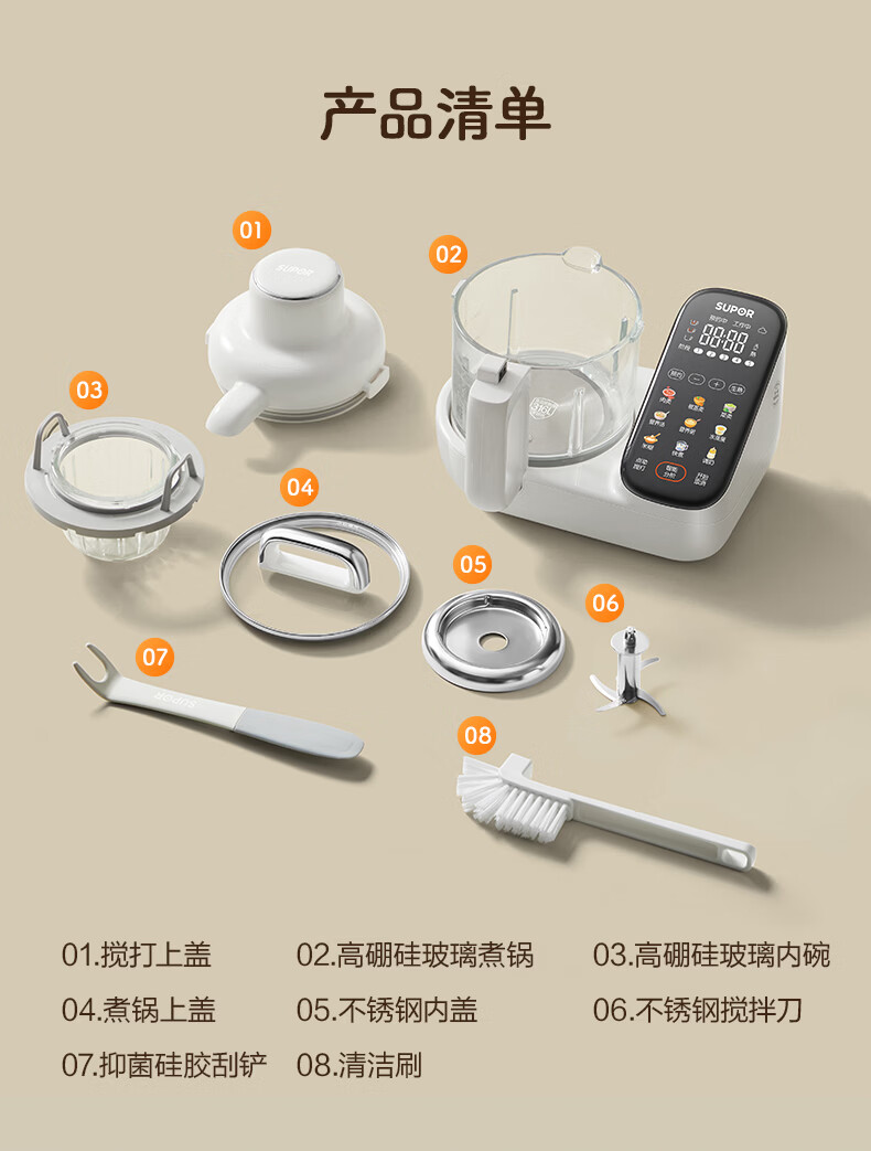 苏泊尔(SUPOR)辅食机婴儿辅食锅 蒸煮搅一体多合一米糊辅食料理机全钢刀 FB12S