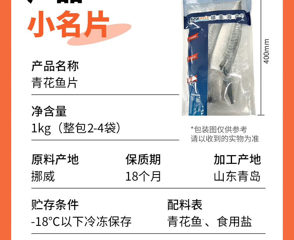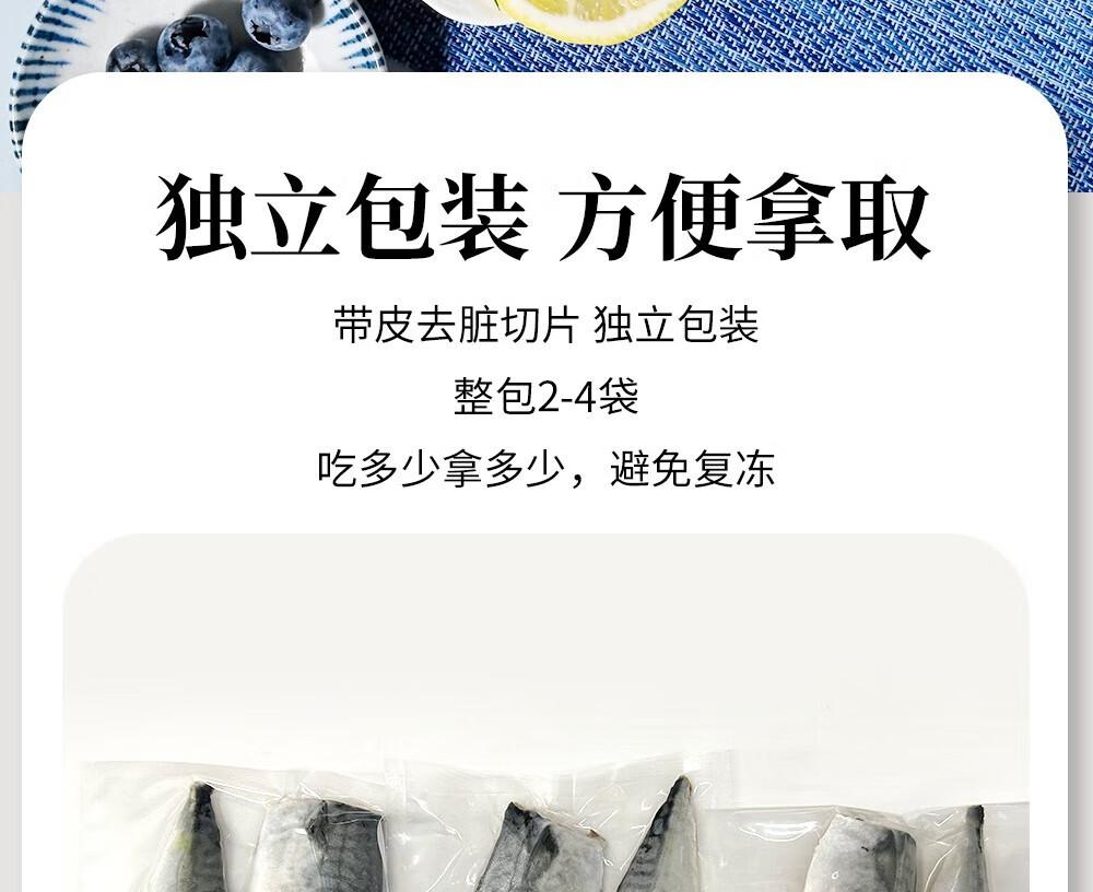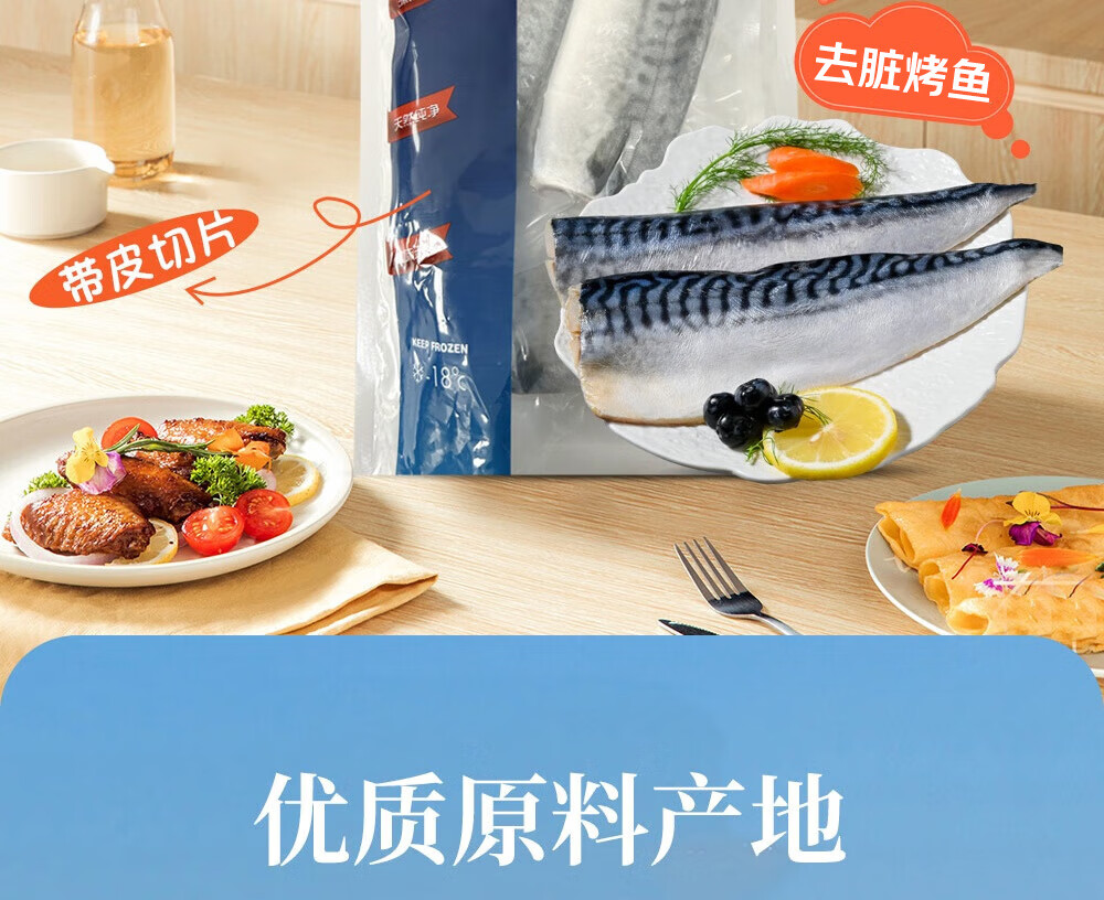 禧美海产冷冻挪威青花鱼片净重2斤 独立2-4袋装 大西洋鲭鱼 露营烧烤食材