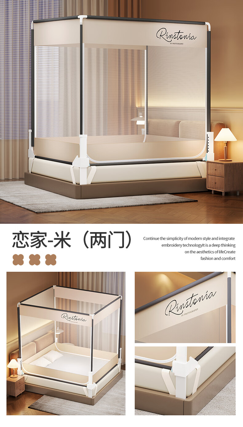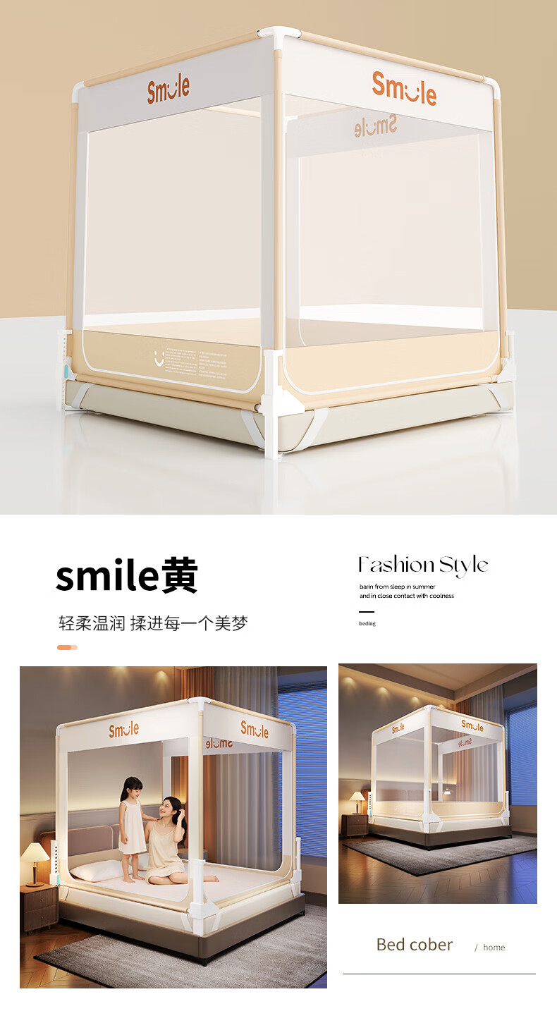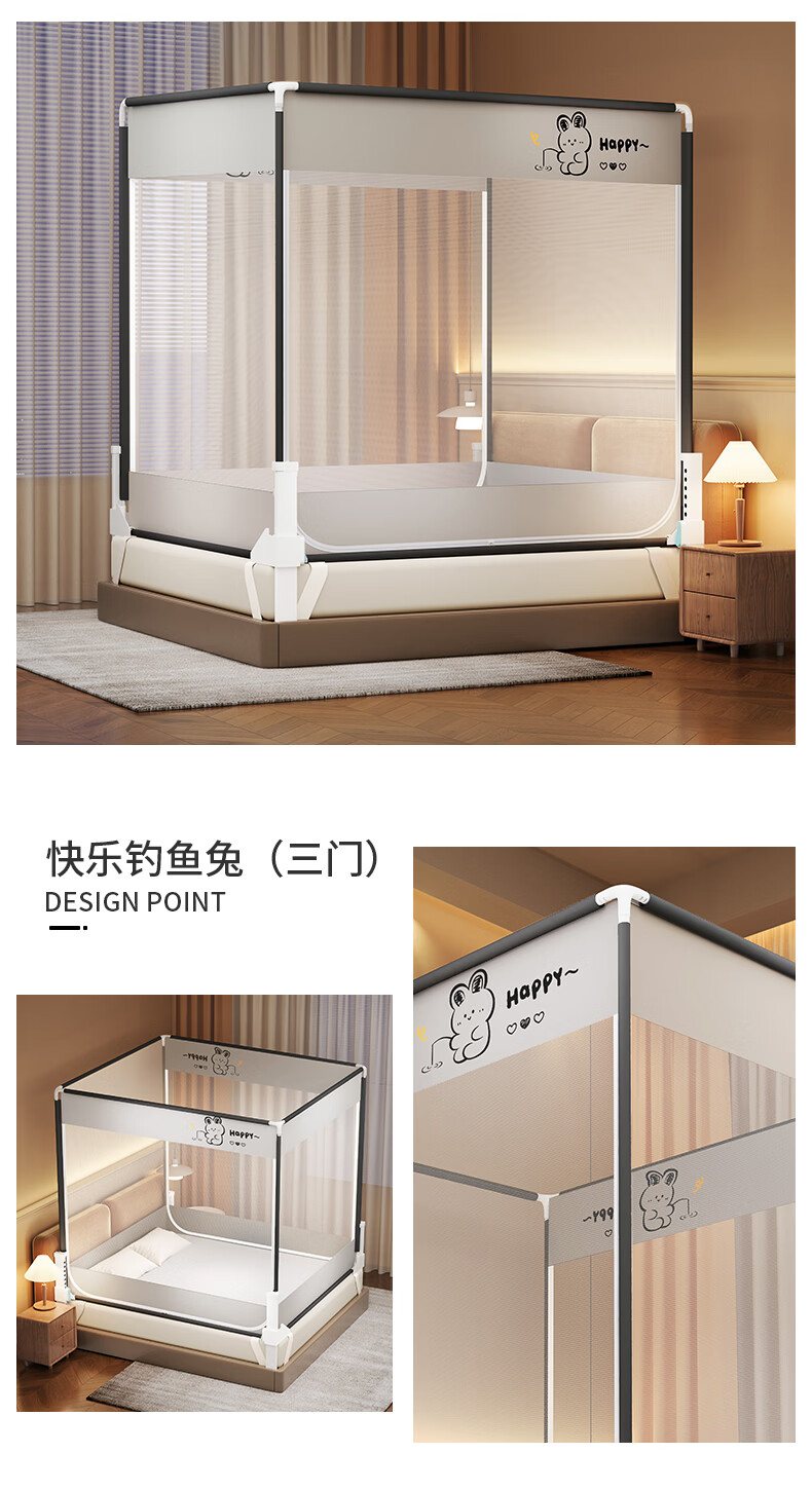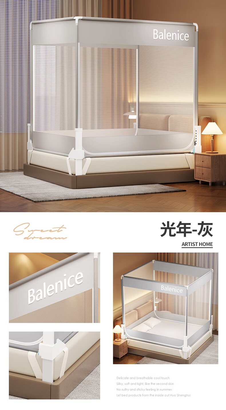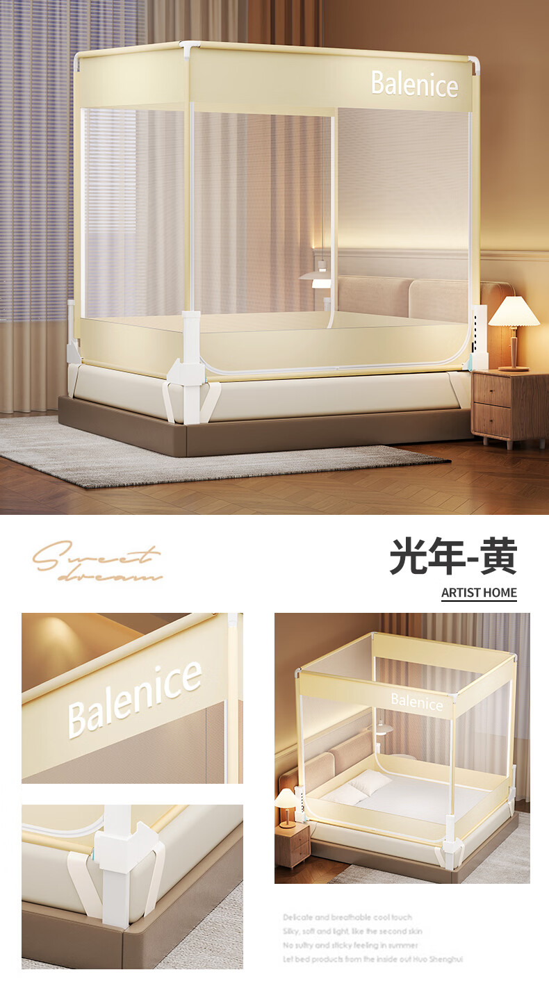 无印良品防摔蚊帐1.5米x2米家用卧室婴儿童防掉床可升降床围栏加固蚊帐架 蛋糕熊-全底【防摔防蚊+遮光顶】 180cm*200cm*170cm 【大力士压脚支架】