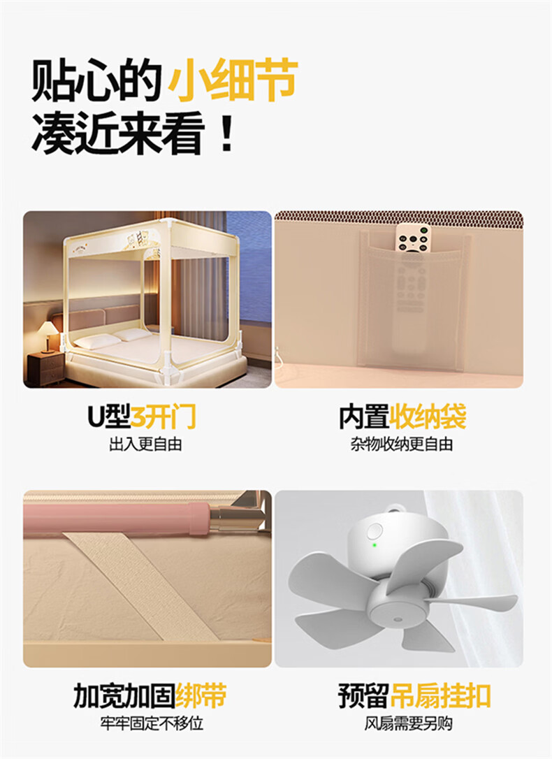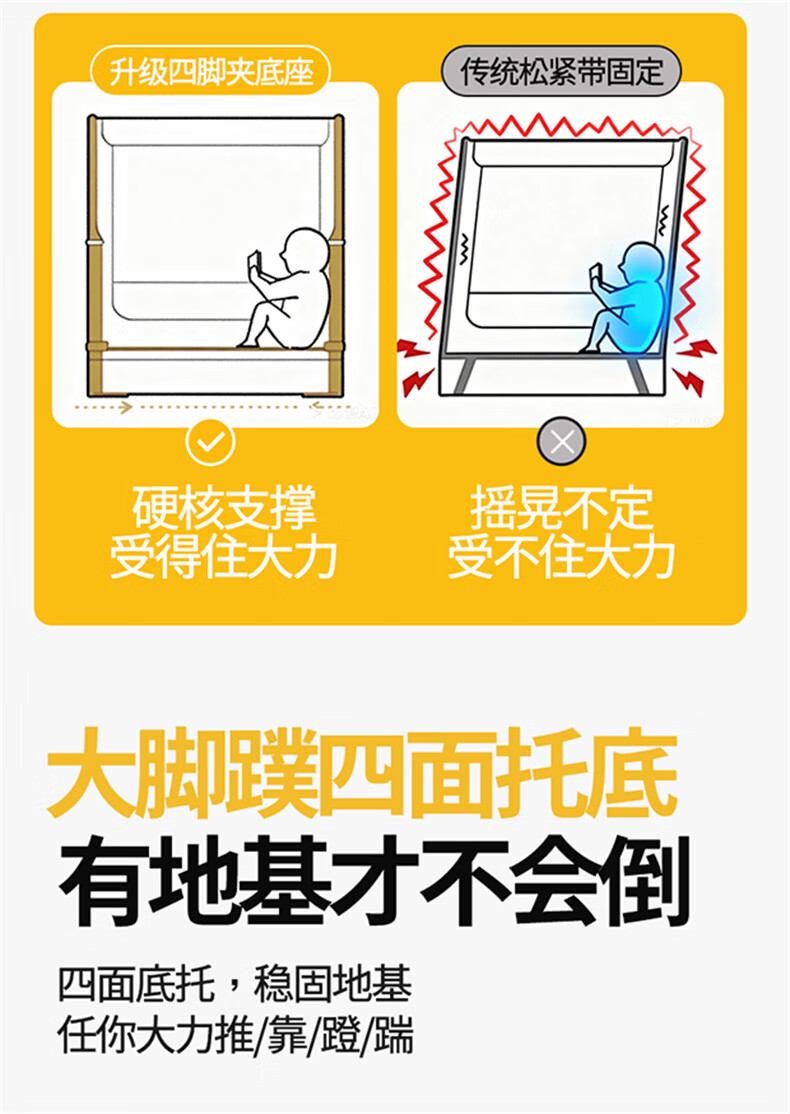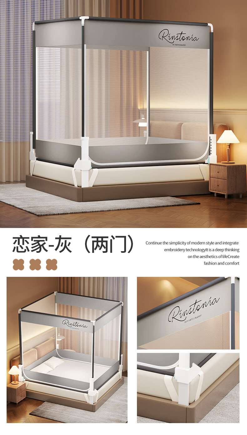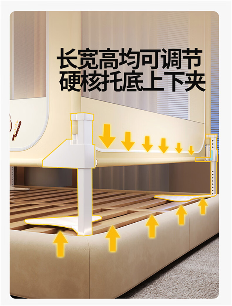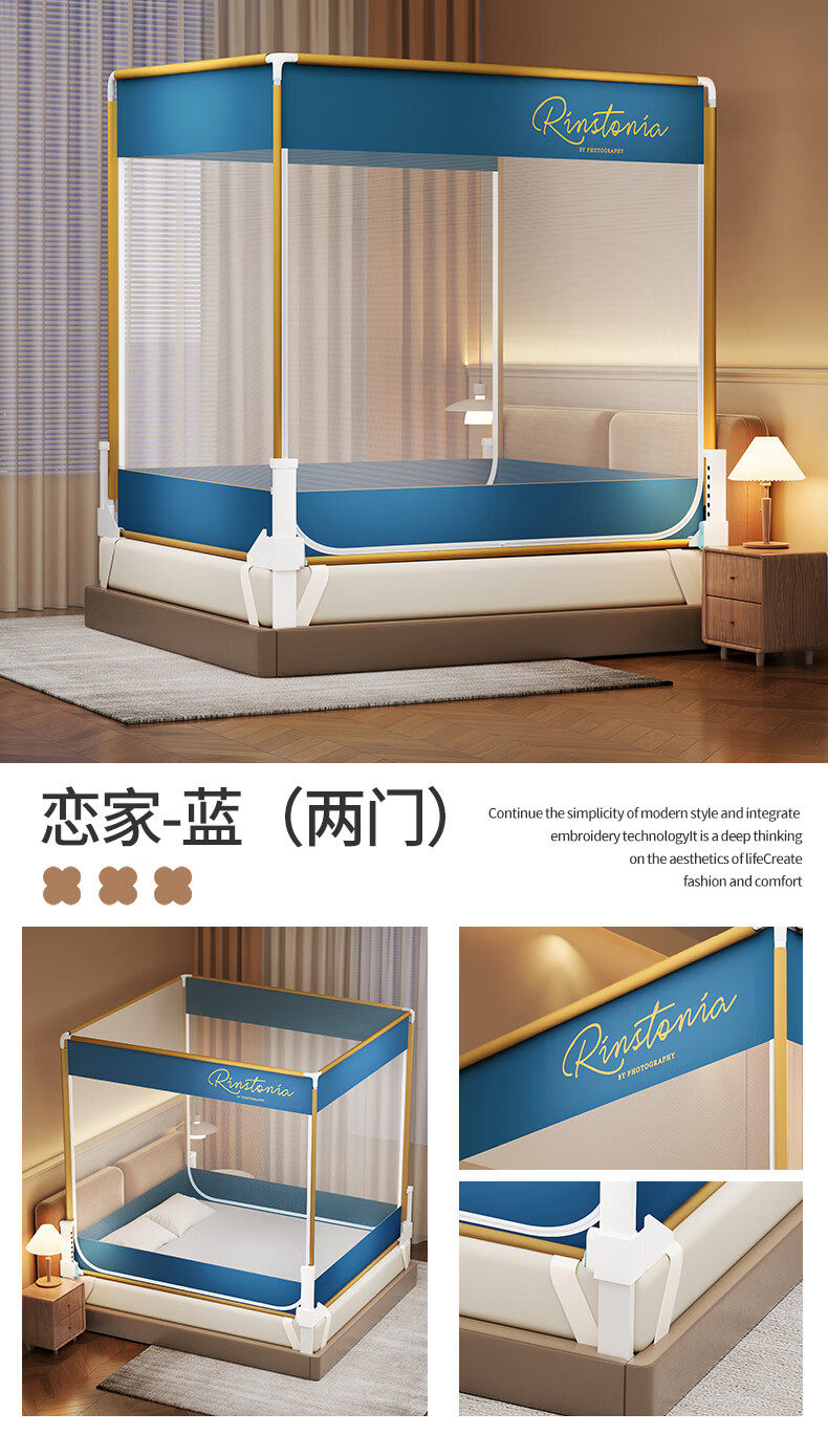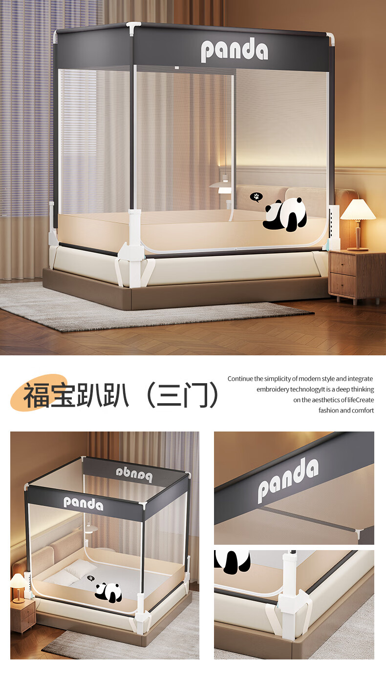 无印良品防摔蚊帐1.5米x2米家用卧室婴儿童防掉床可升降床围栏加固蚊帐架 蛋糕熊-全底【防摔防蚊+遮光顶】 180cm*200cm*170cm 【大力士压脚支架】