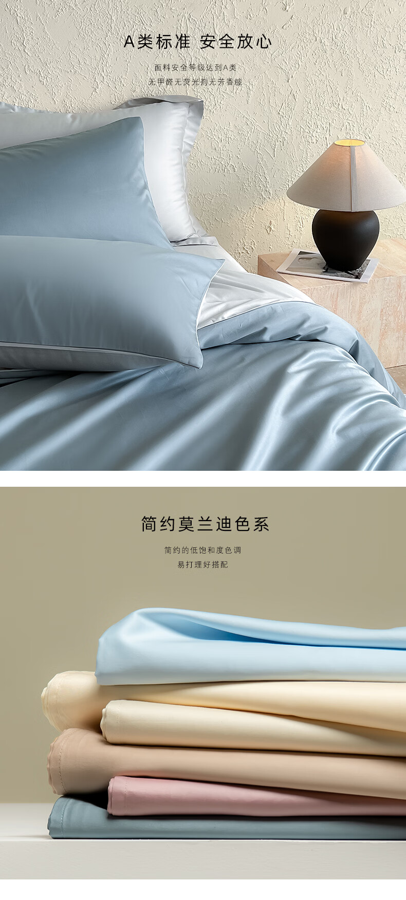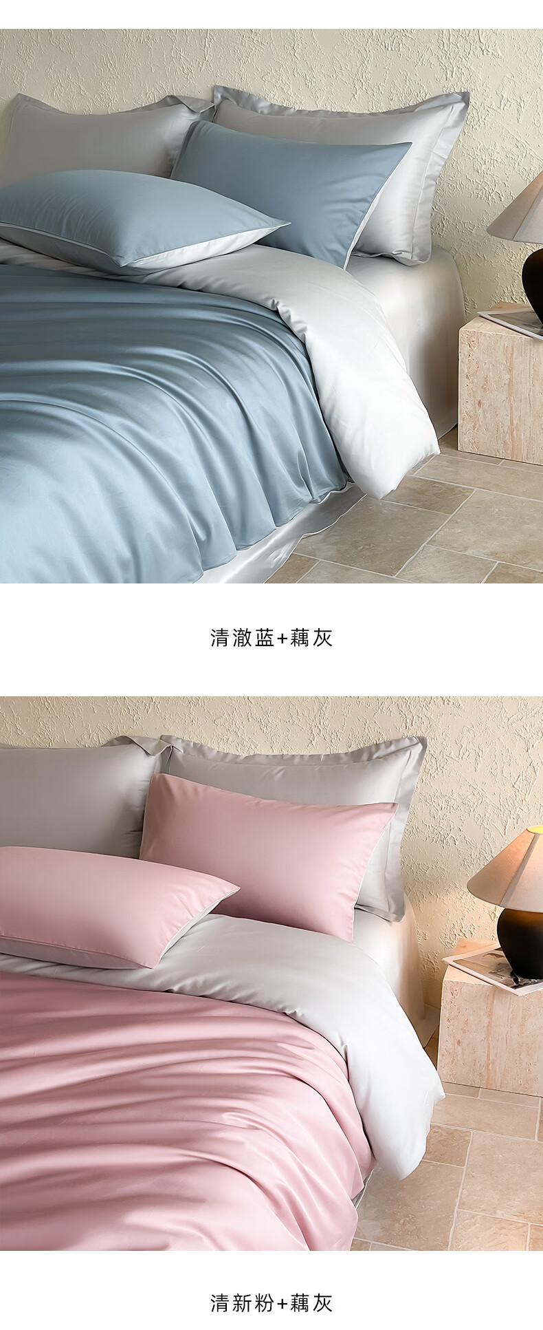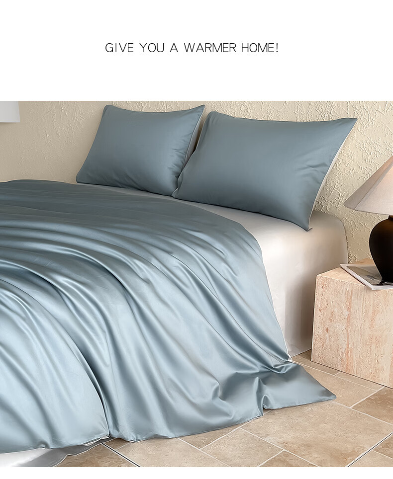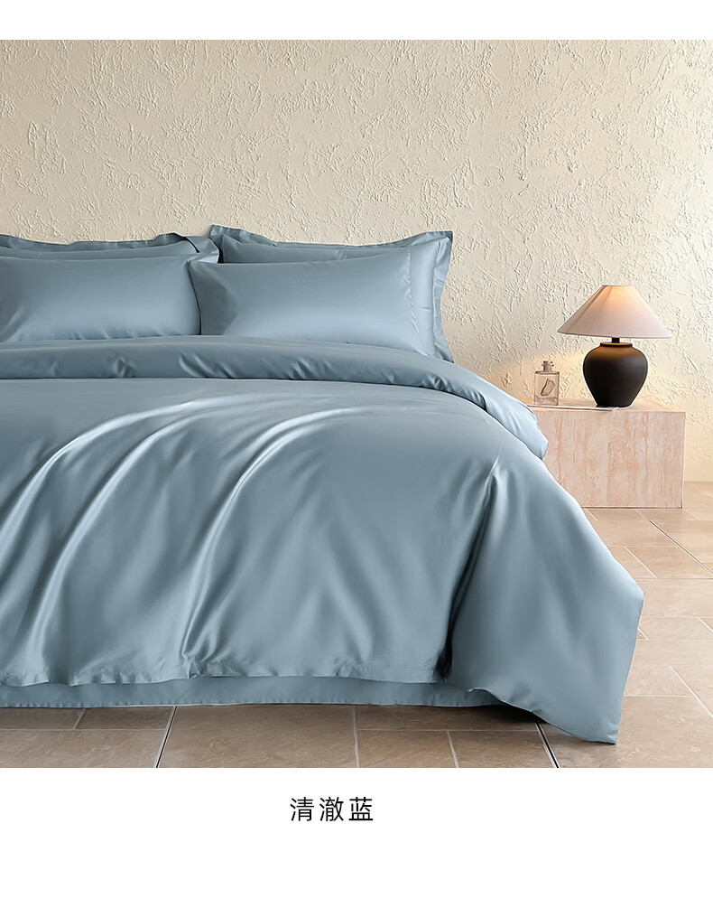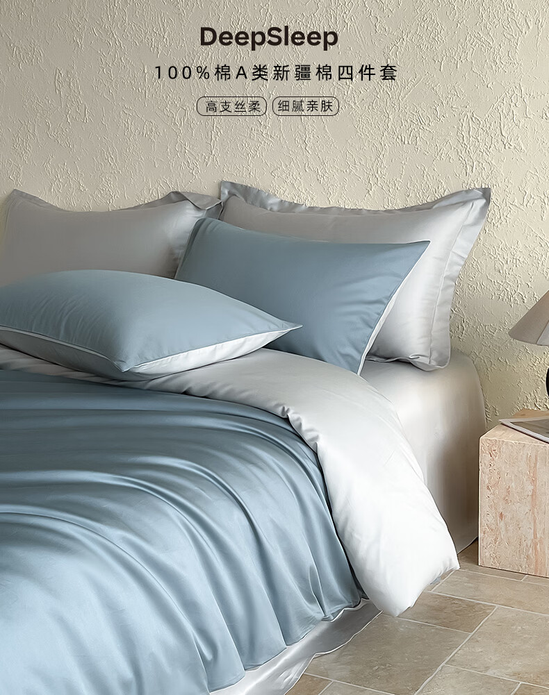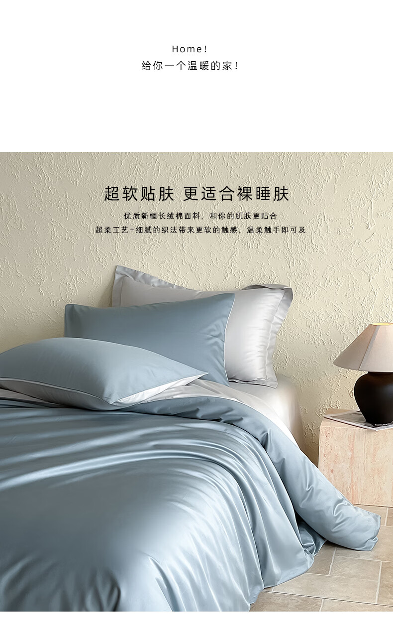 无印良品a类100%新疆长绒棉全棉四件套纯棉床单被套可裸睡床笠款床上用品 清澈蓝+藕灰【新疆长绒棉 细腻亲肤】 1.8m四件套 床单款 (被套200*230cm)