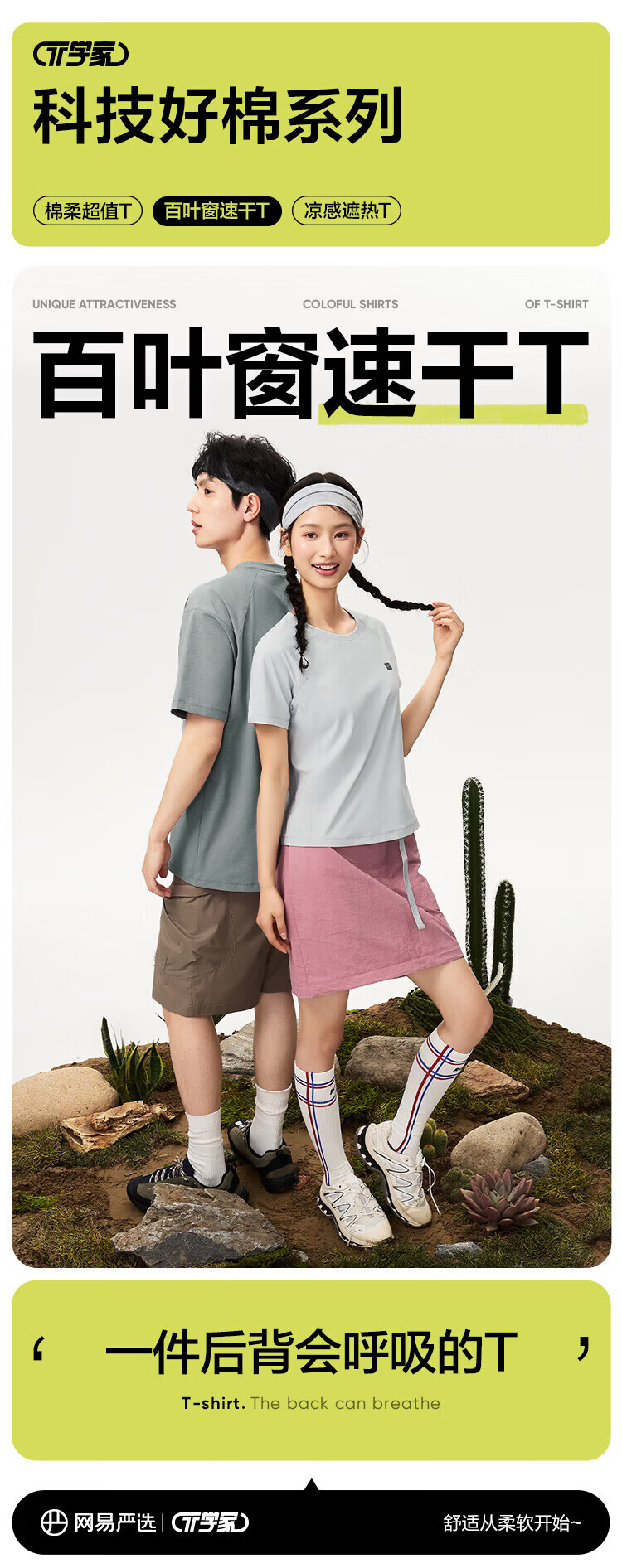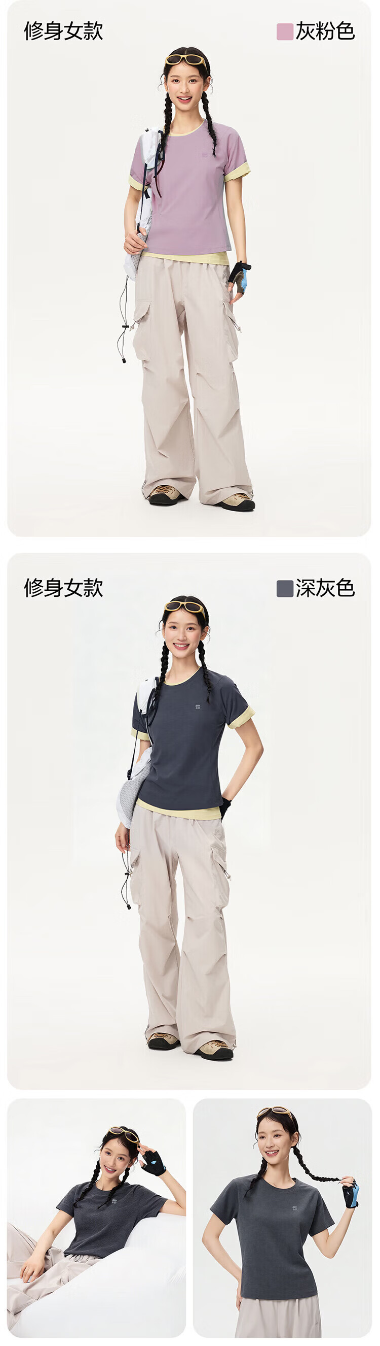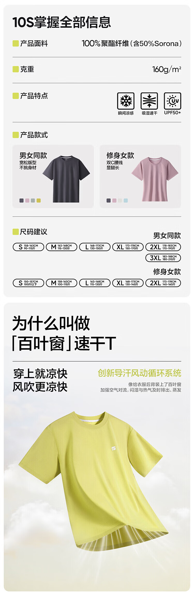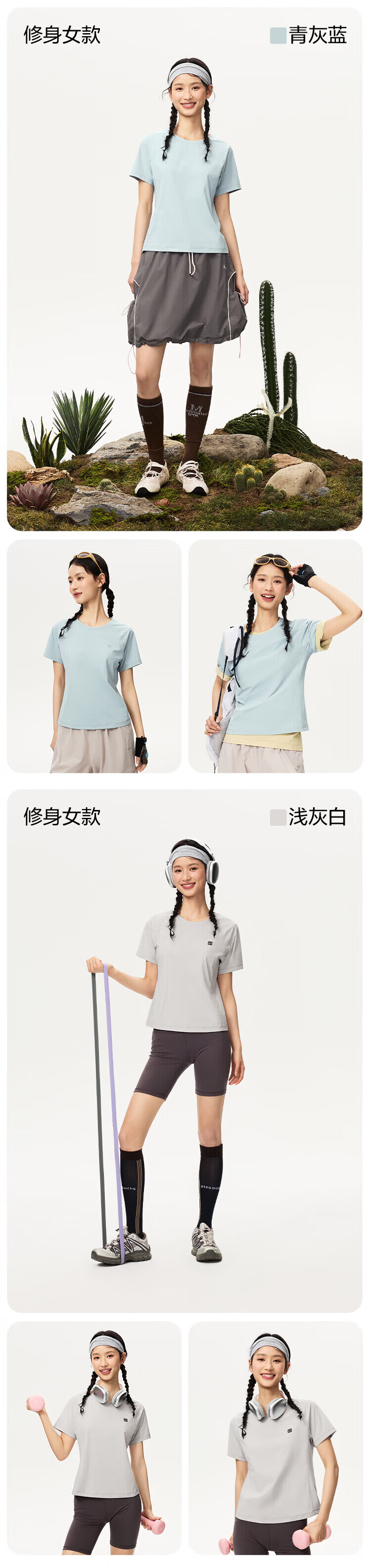 网易严选26新品百叶窗T恤UPF50+防晒轻薄凉感吸湿速干高弹短袖男女同款 青灰蓝【纯女款-修身显瘦】 M