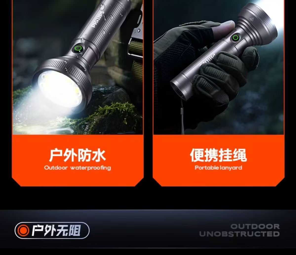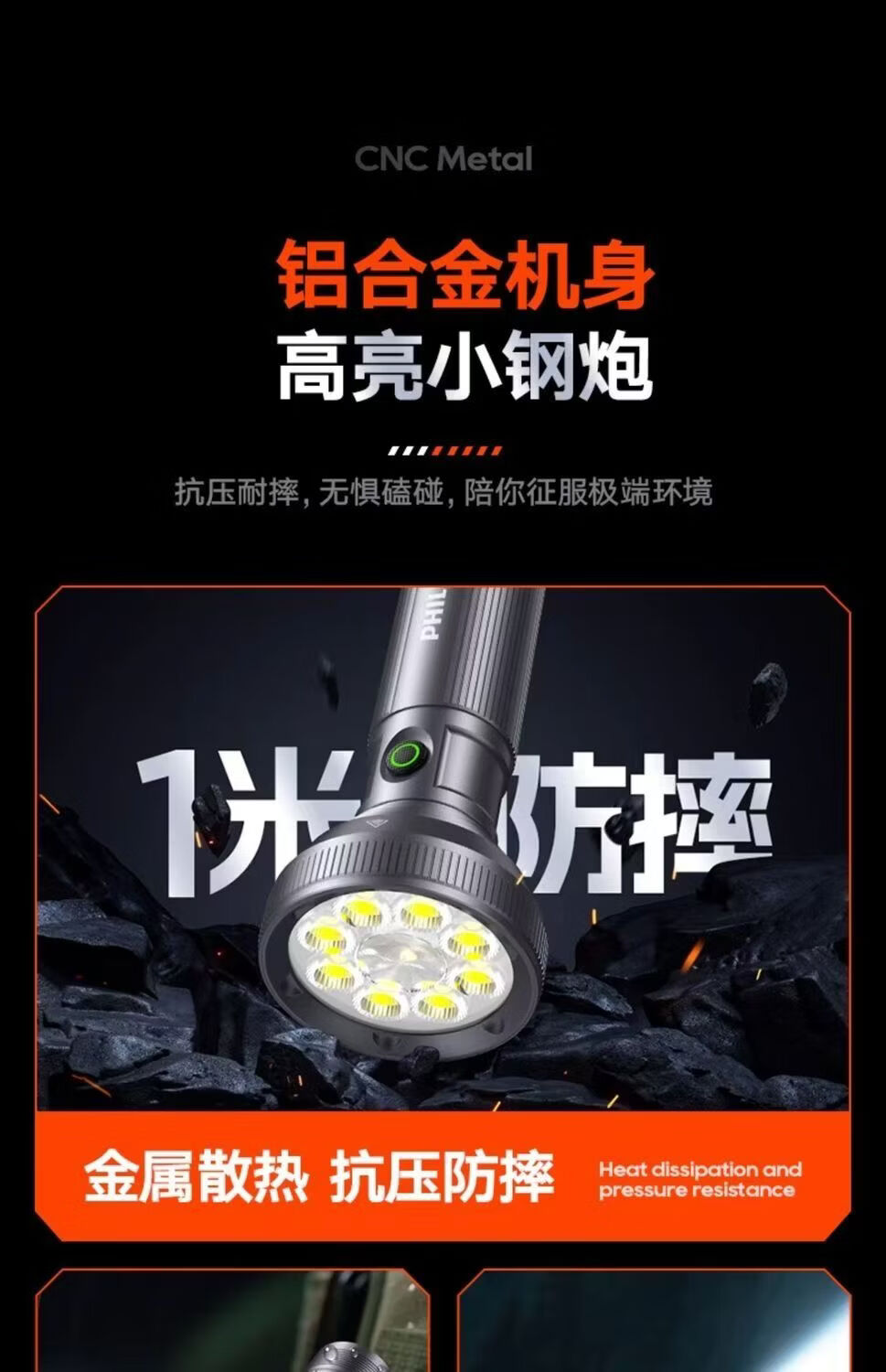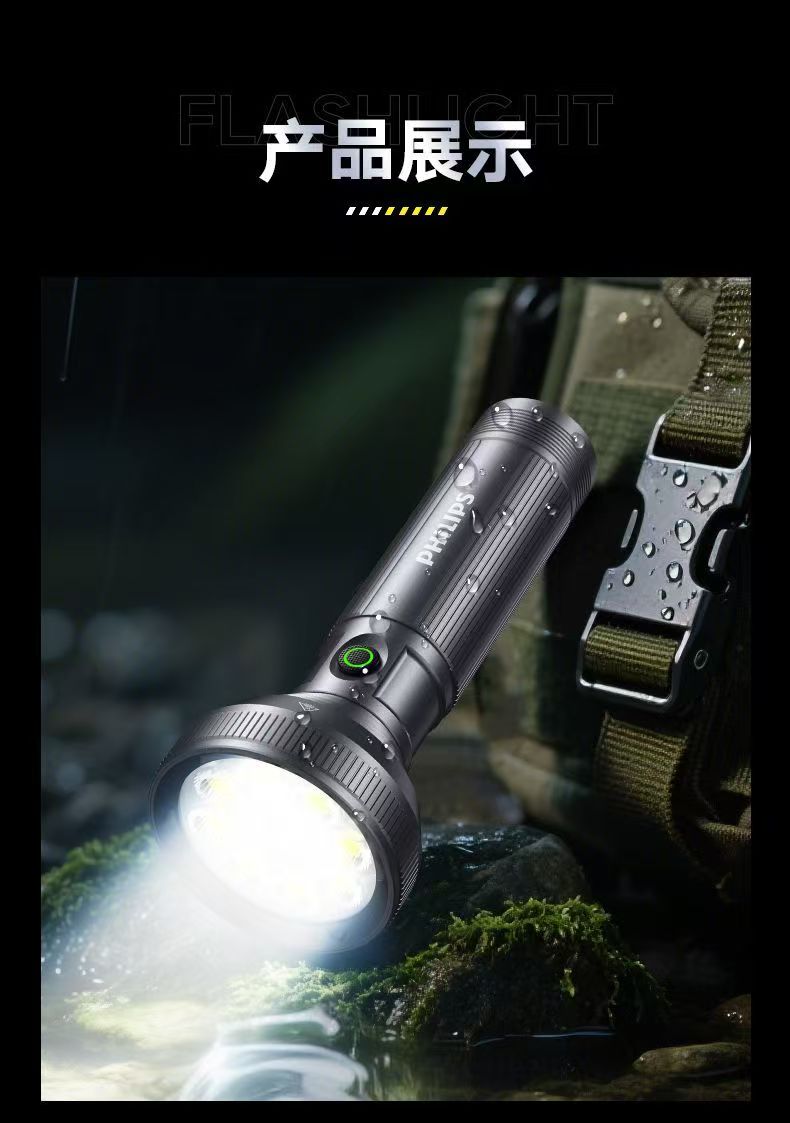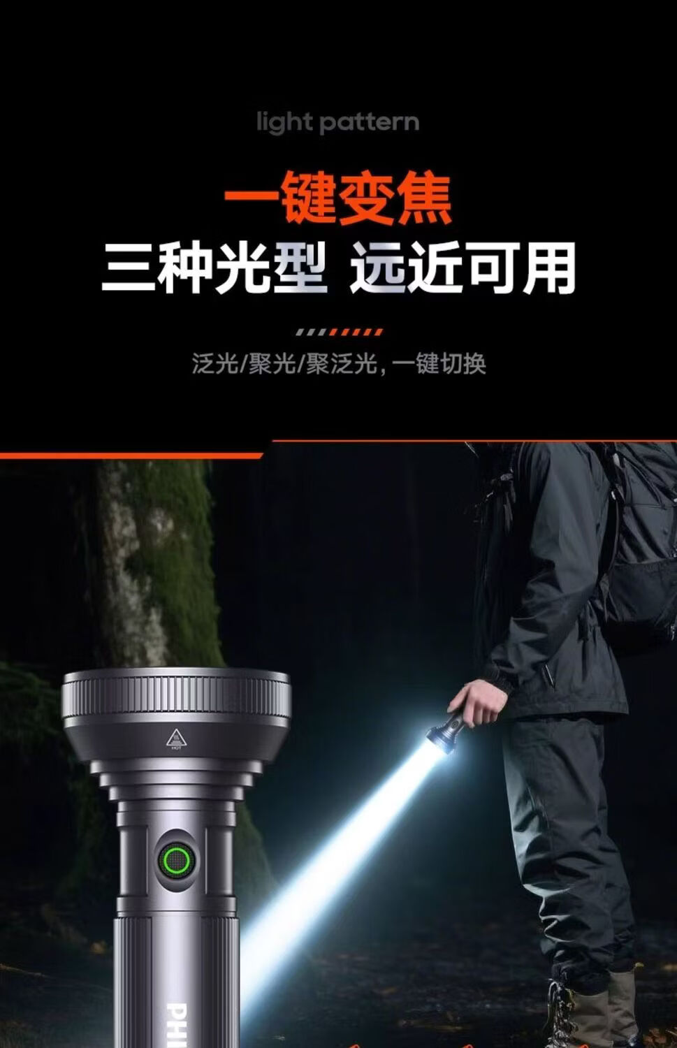 飞利浦(PHILIPS)手电筒强光可充电高亮多功能户外便携巡逻登山露营手电SFL6252 29W/3000毫安/变焦/SFL6252