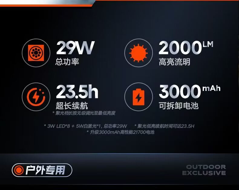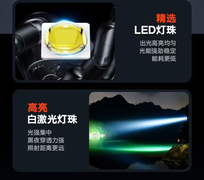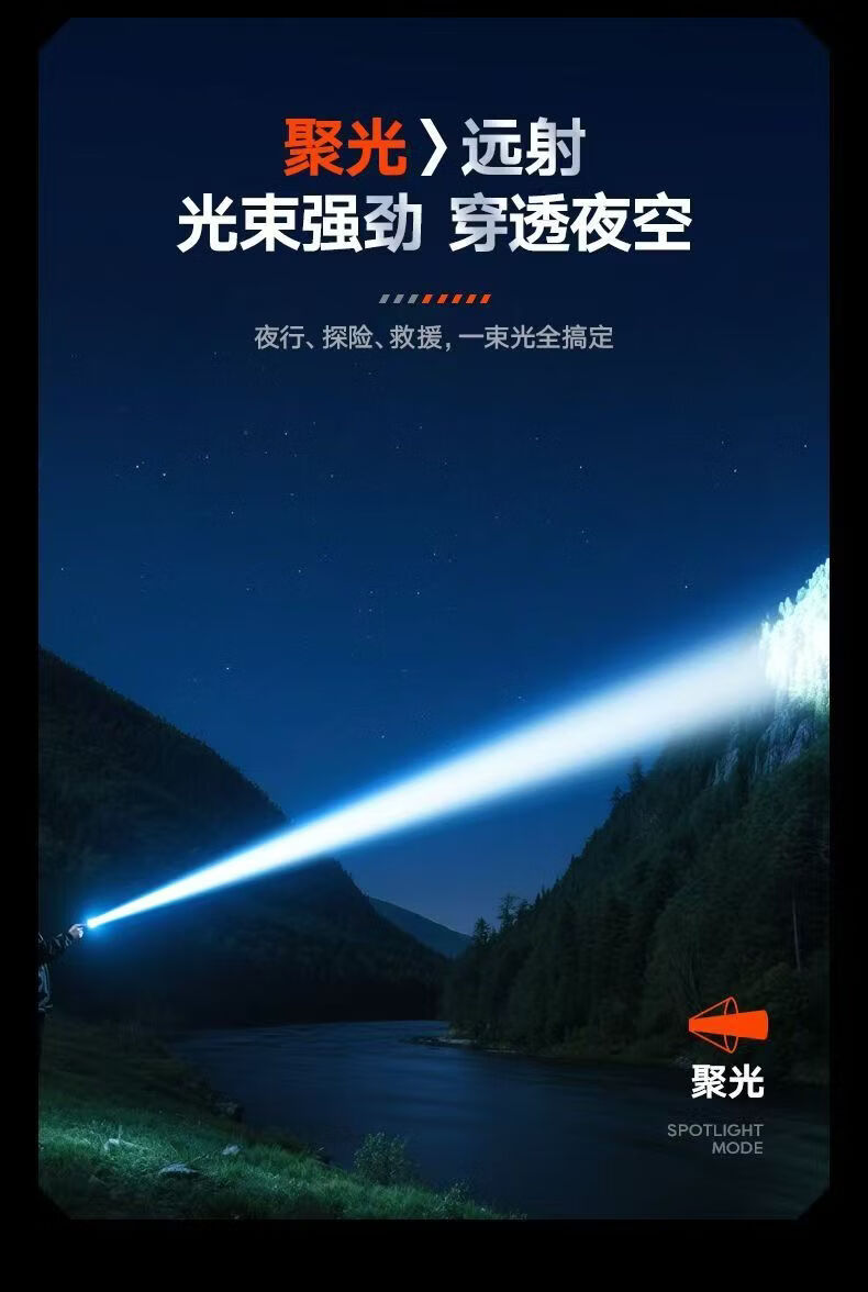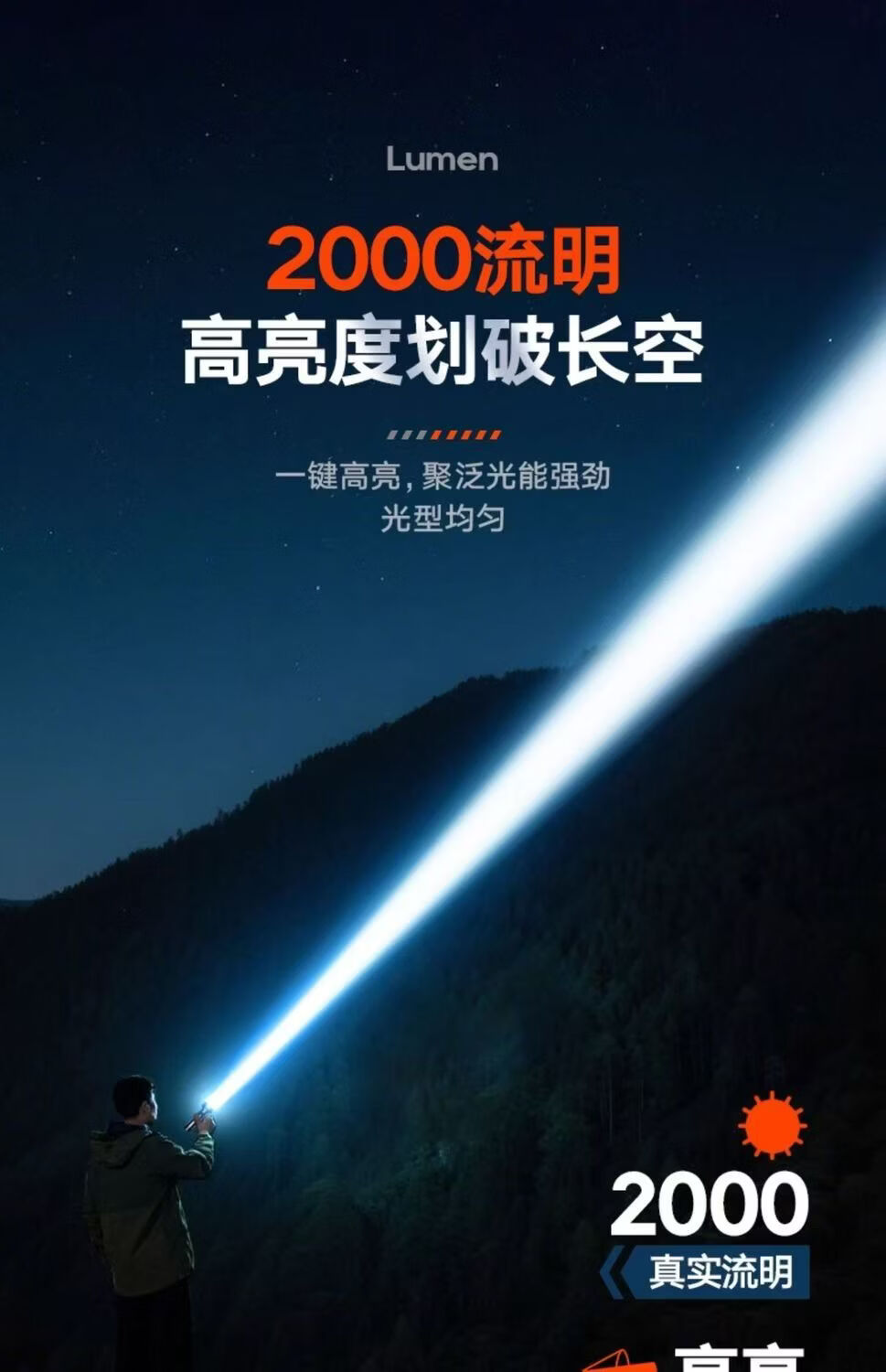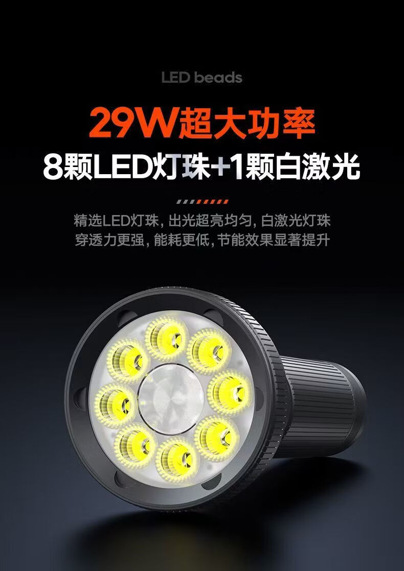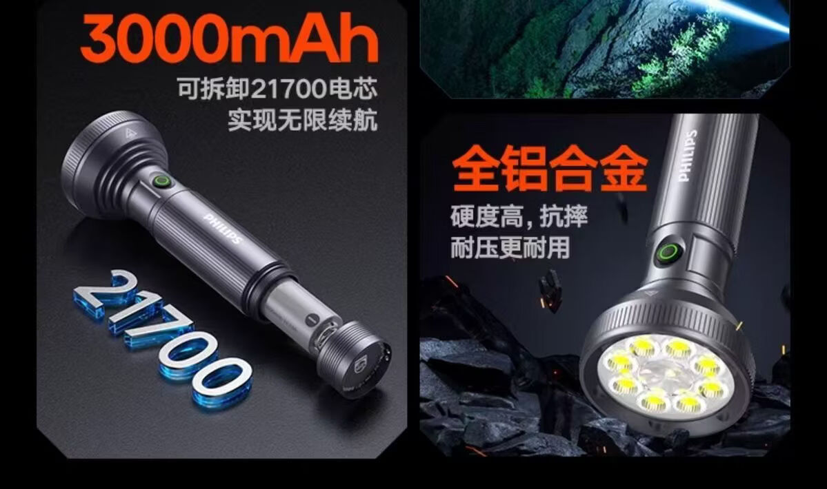 飞利浦(PHILIPS)手电筒强光可充电高亮多功能户外便携巡逻登山露营手电SFL6252 29W/3000毫安/变焦/SFL6252