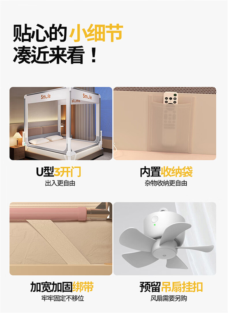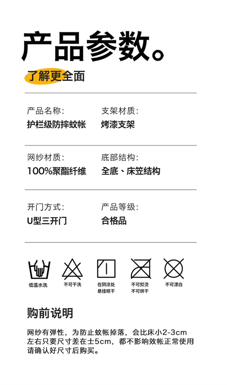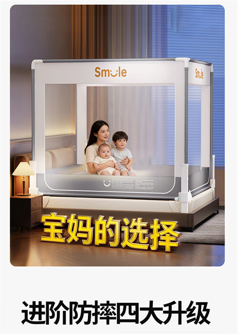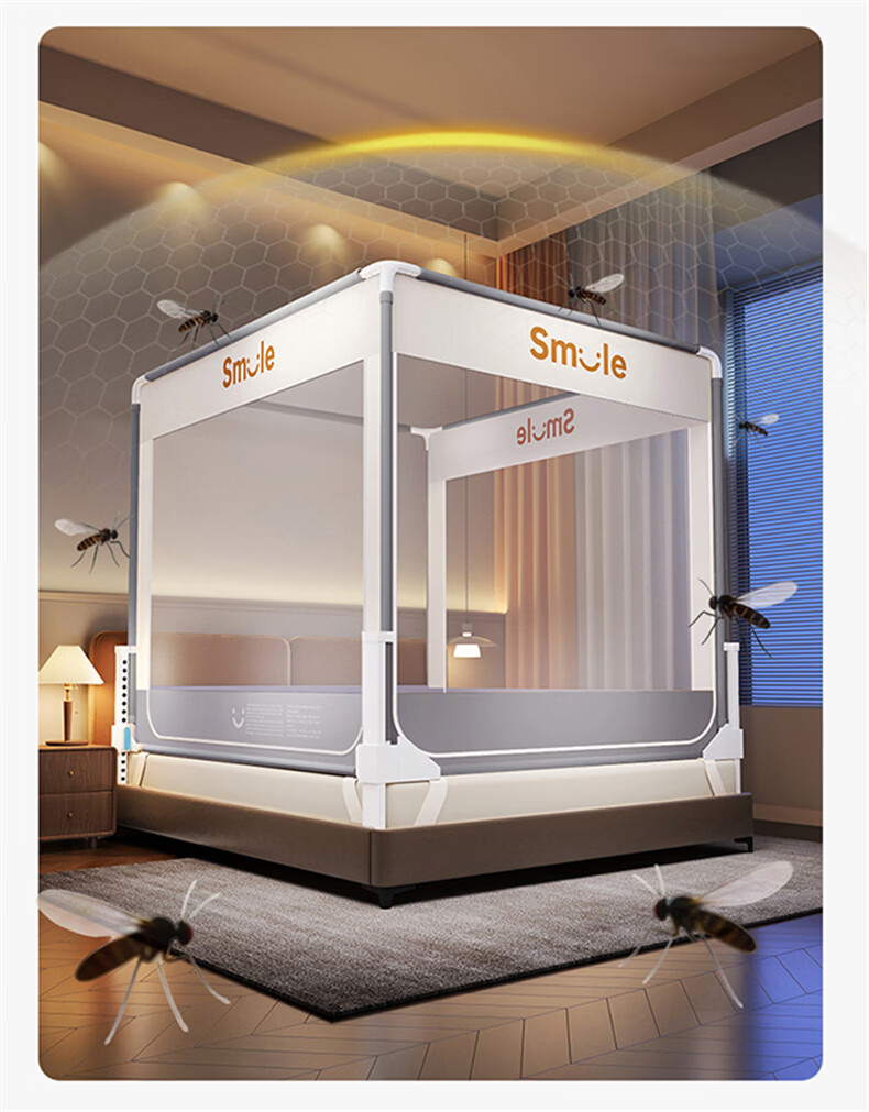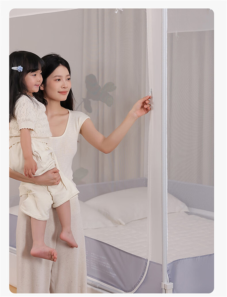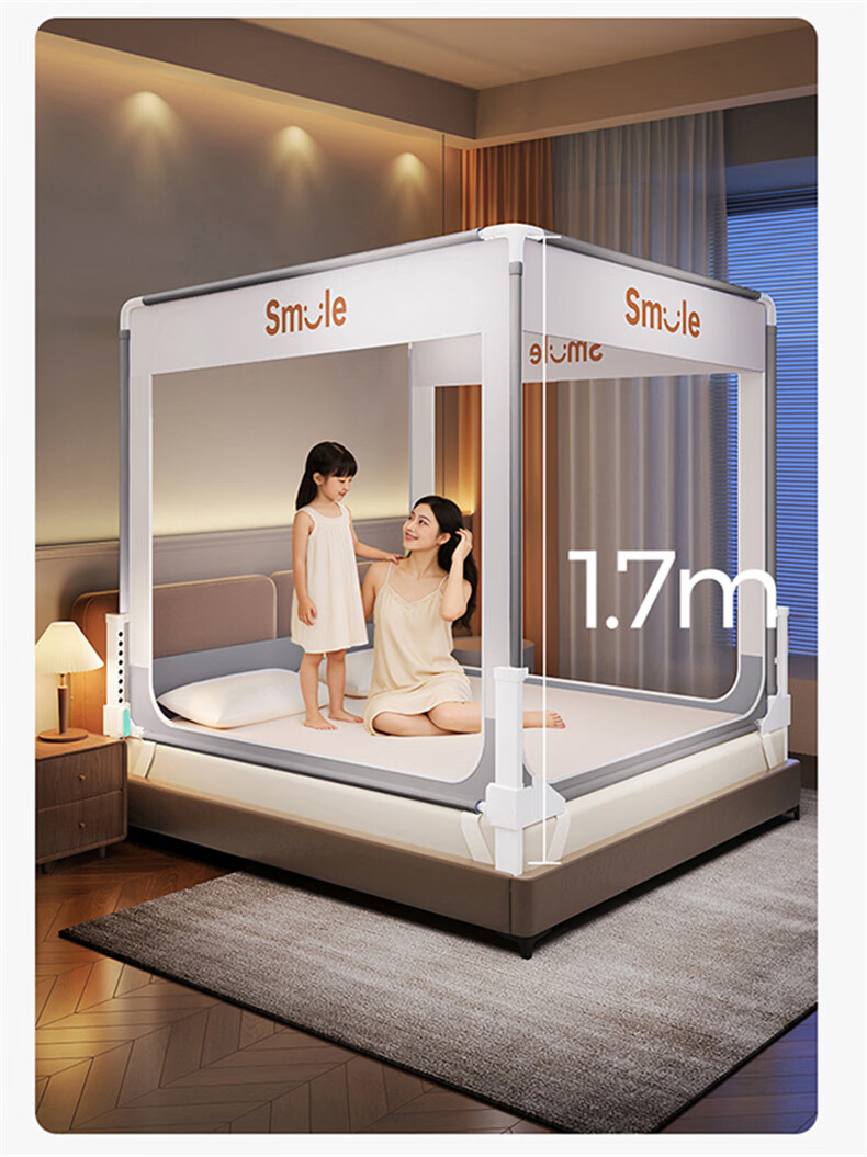无印良品防摔蚊帐1.8x2米家用一体式免安装床围栏全底三开门学生宿舍床帐 smile灰【大力士压脚支架+防尘顶】 1.8m床-宽180x长200x高170cm【全底三门】