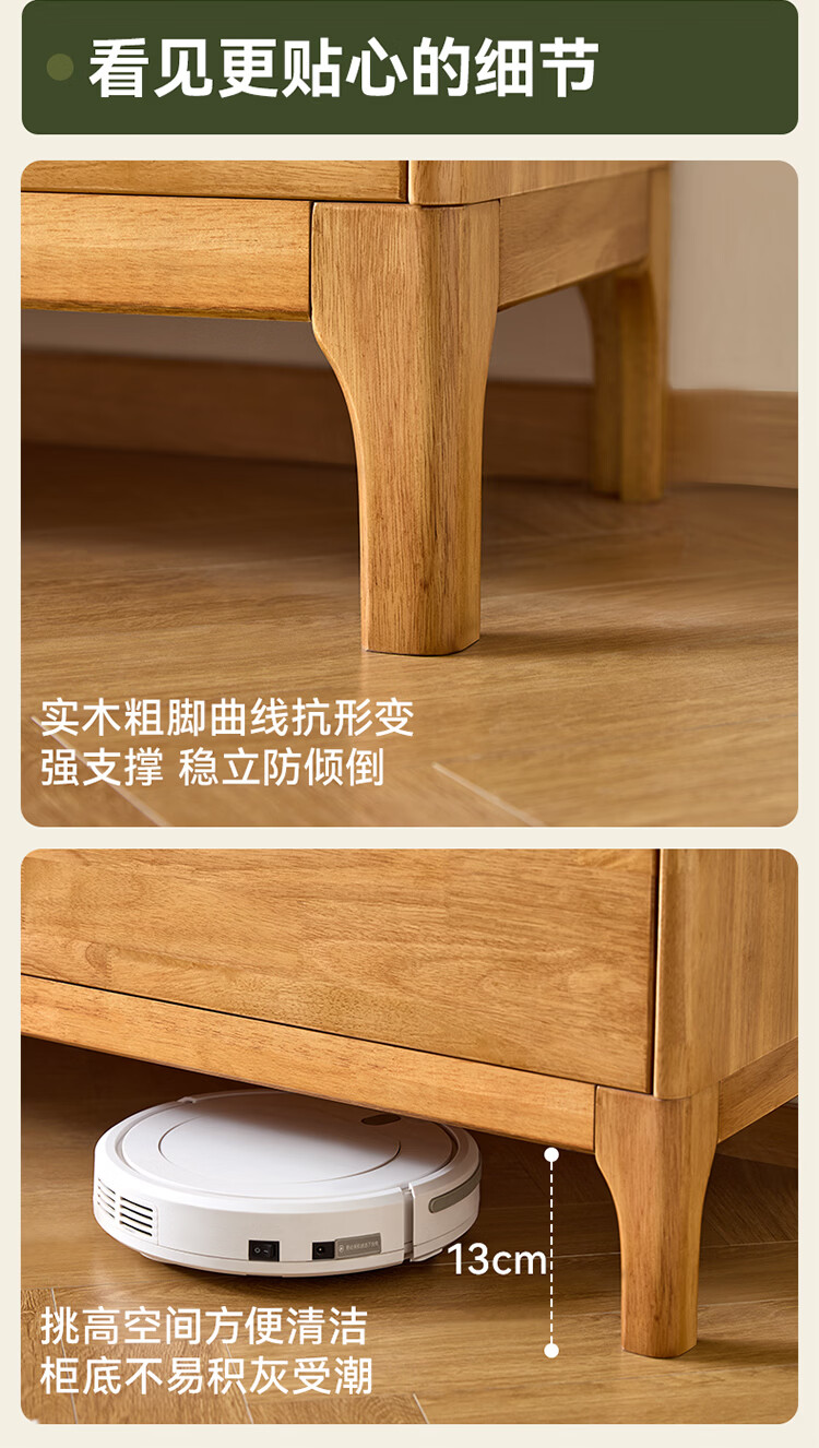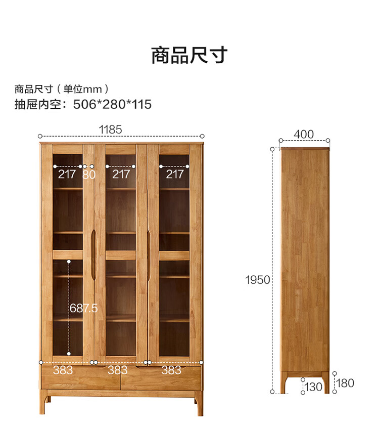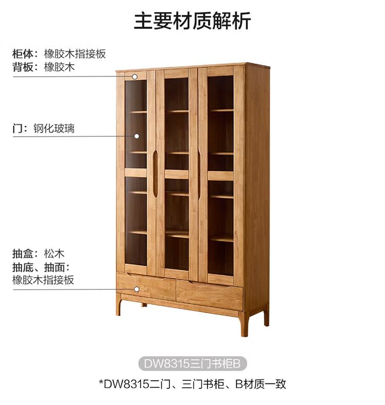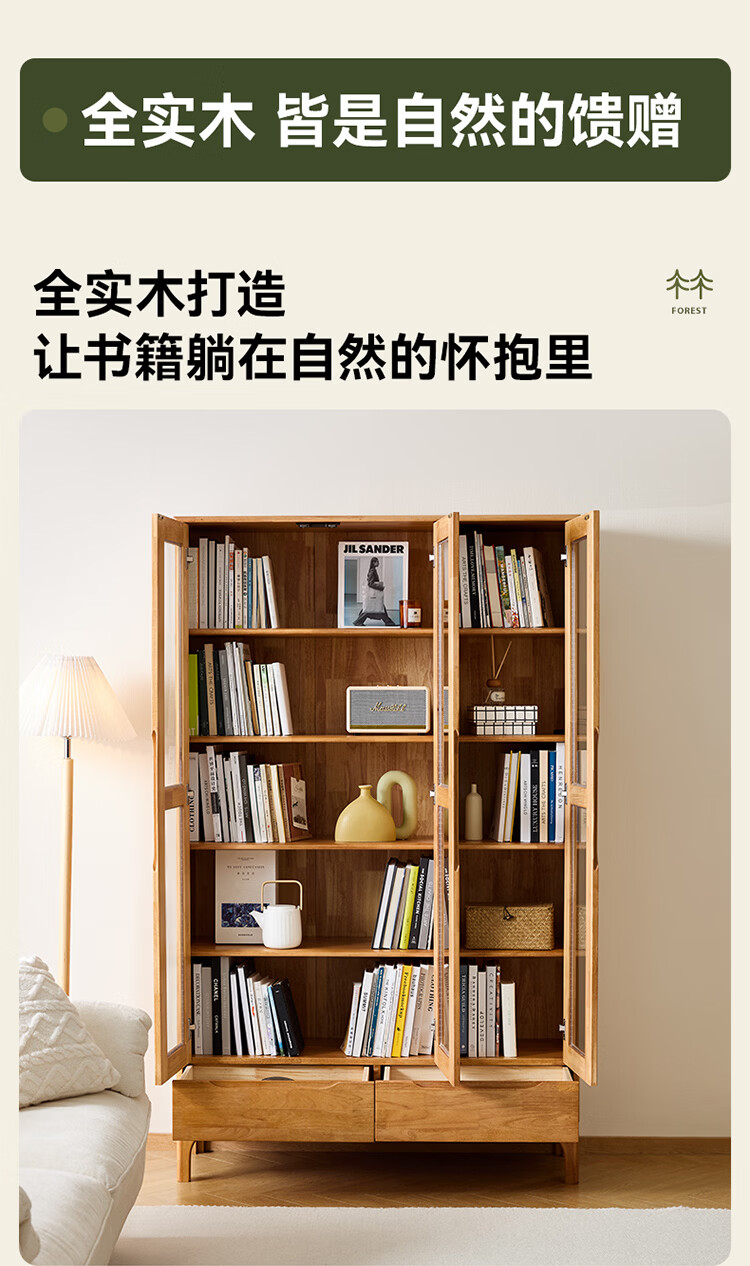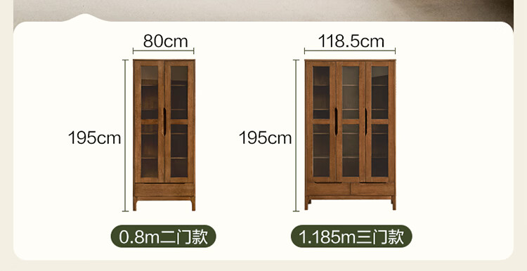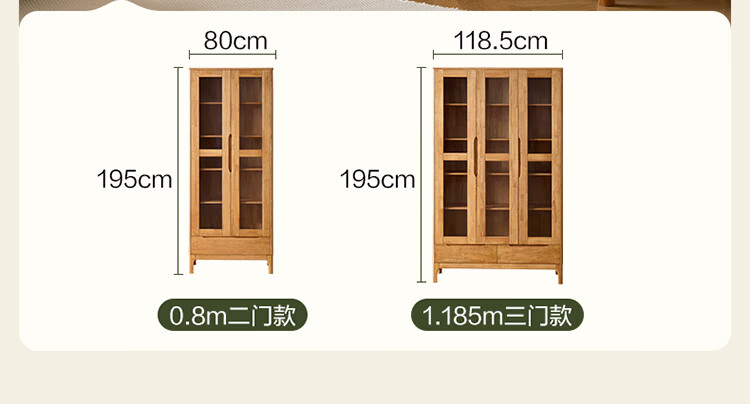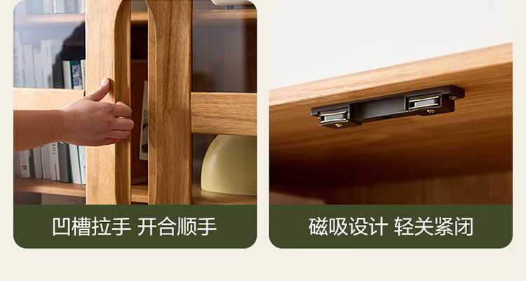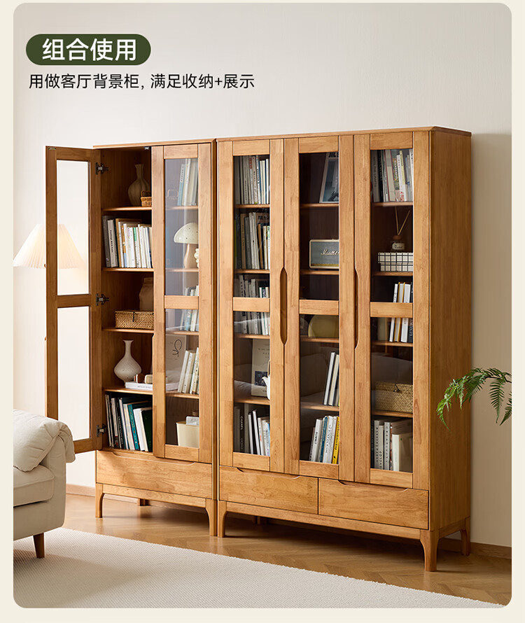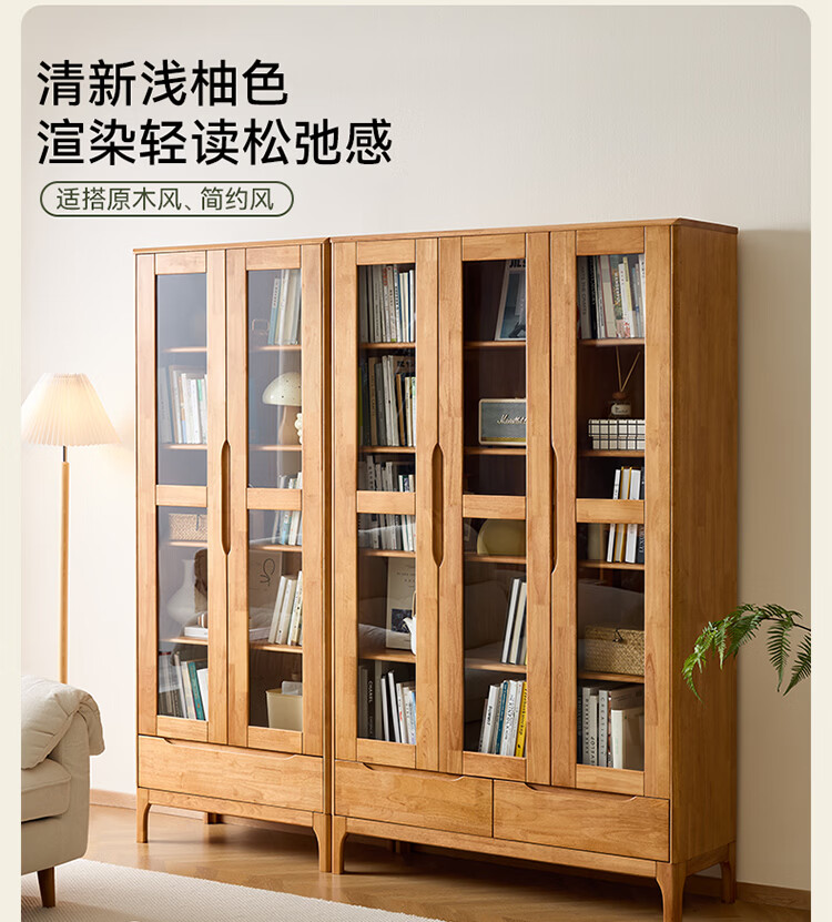 全友家居原木风实木餐边柜家用玻璃展示柜收纳储物小柜子沙发边柜KS 【樱桃木色|橡胶木】双门款餐边柜