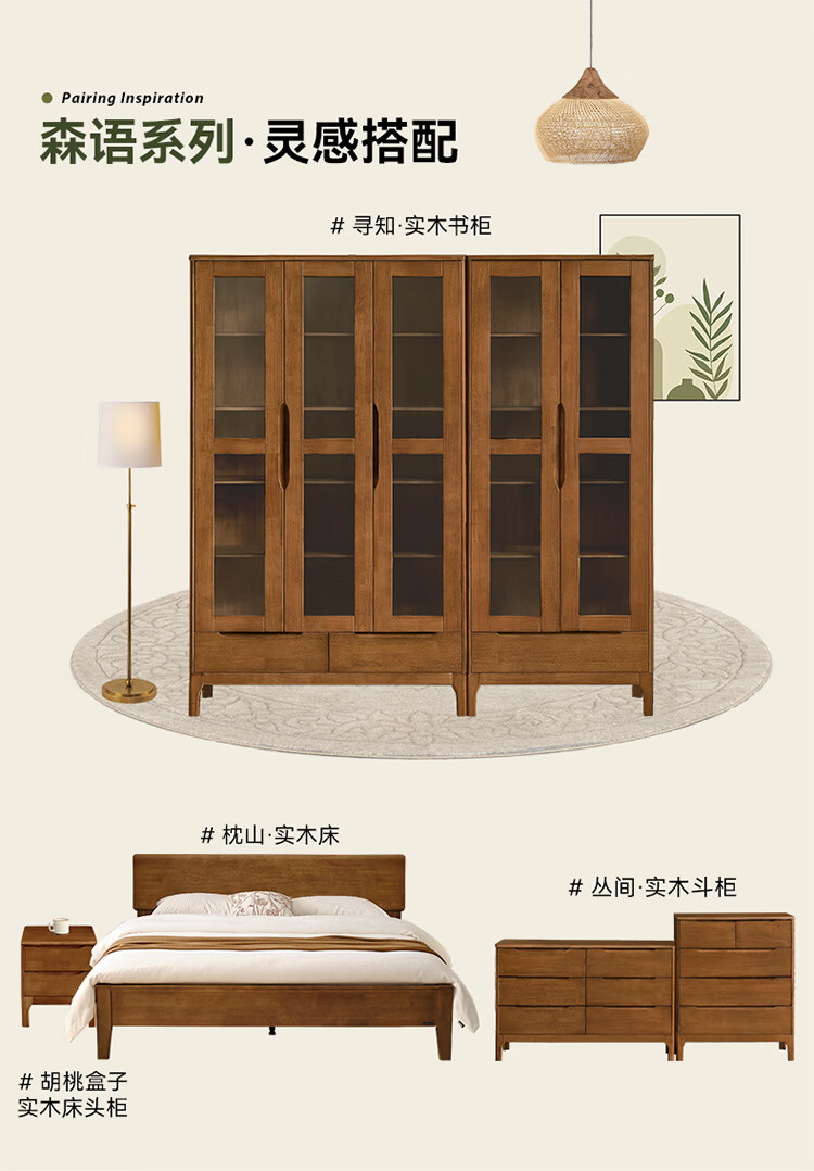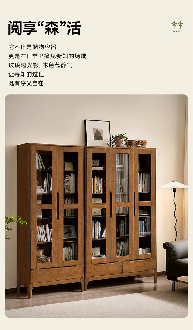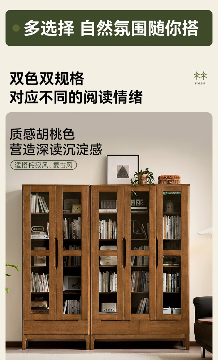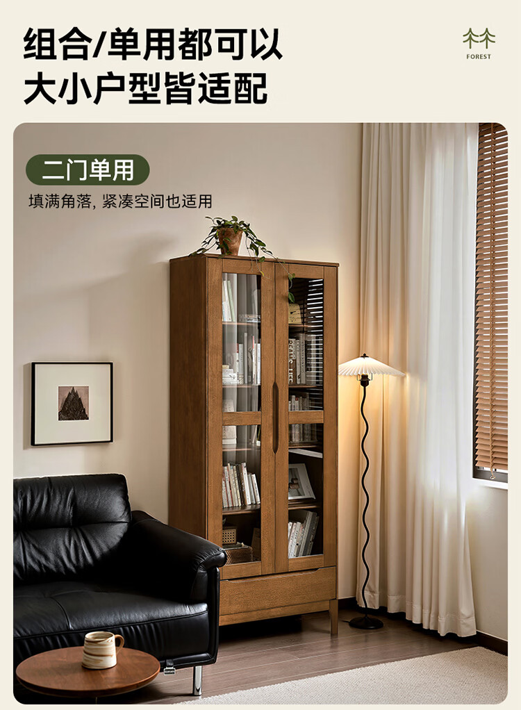 全友家居原木风斗柜客厅沙发边展示收纳柜子卧室床头柜组合书柜家具 【胡桃色|橡胶木】二门书柜