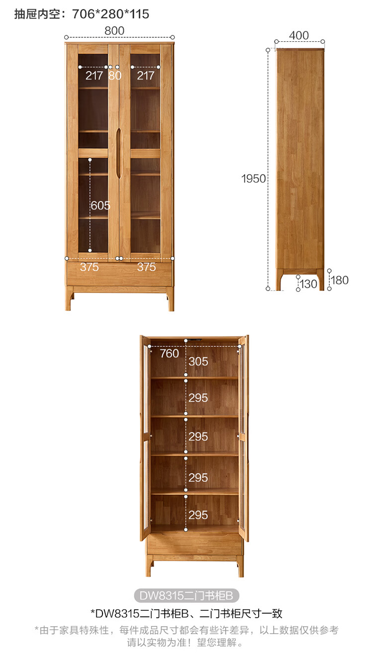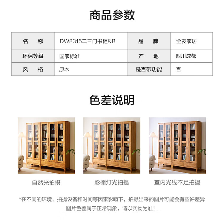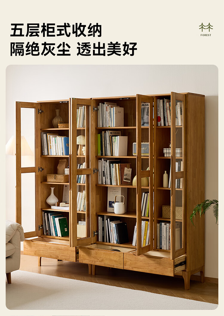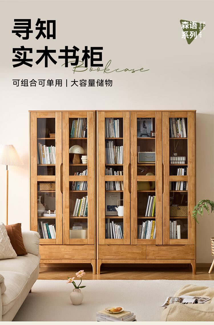 全友家居原木风斗柜客厅沙发边展示收纳柜子卧室床头柜组合书柜家具 【胡桃色|橡胶木】二门书柜