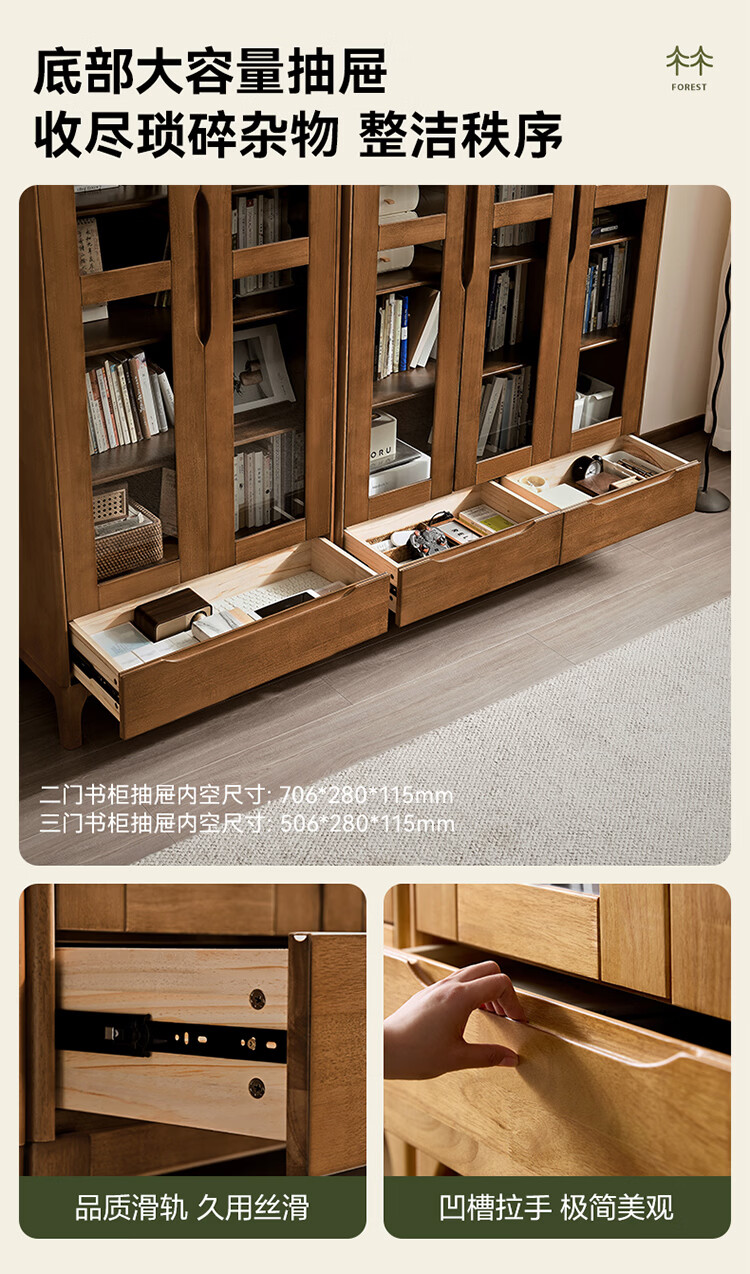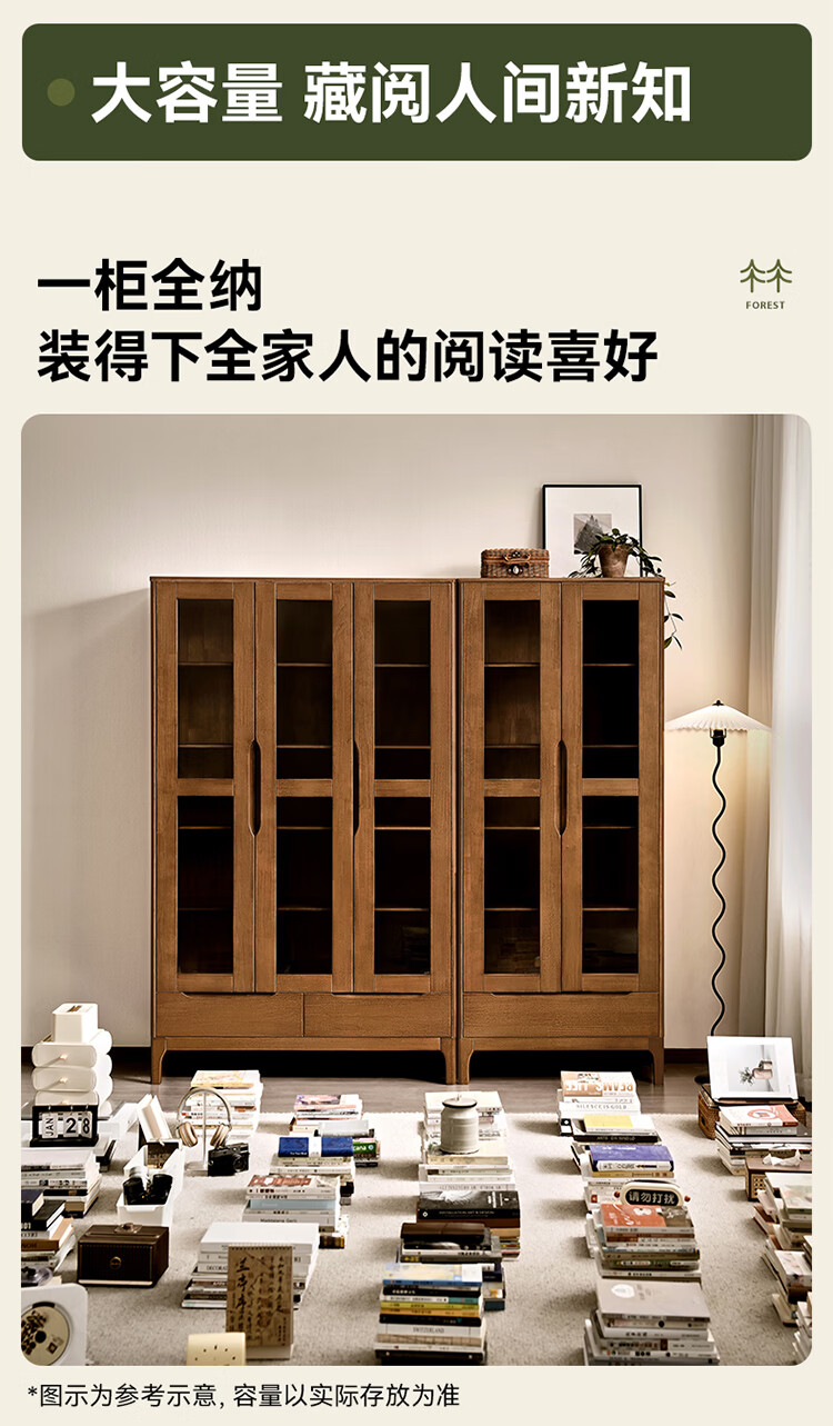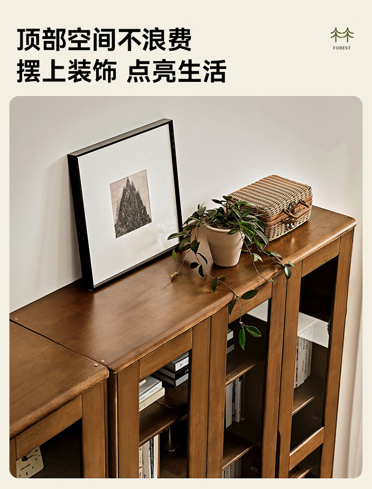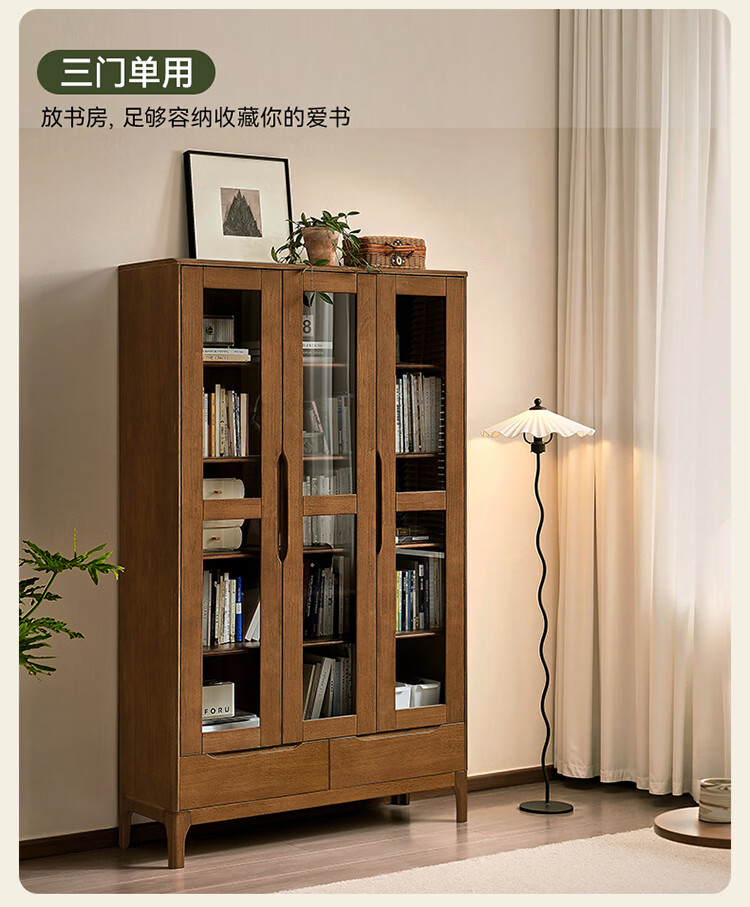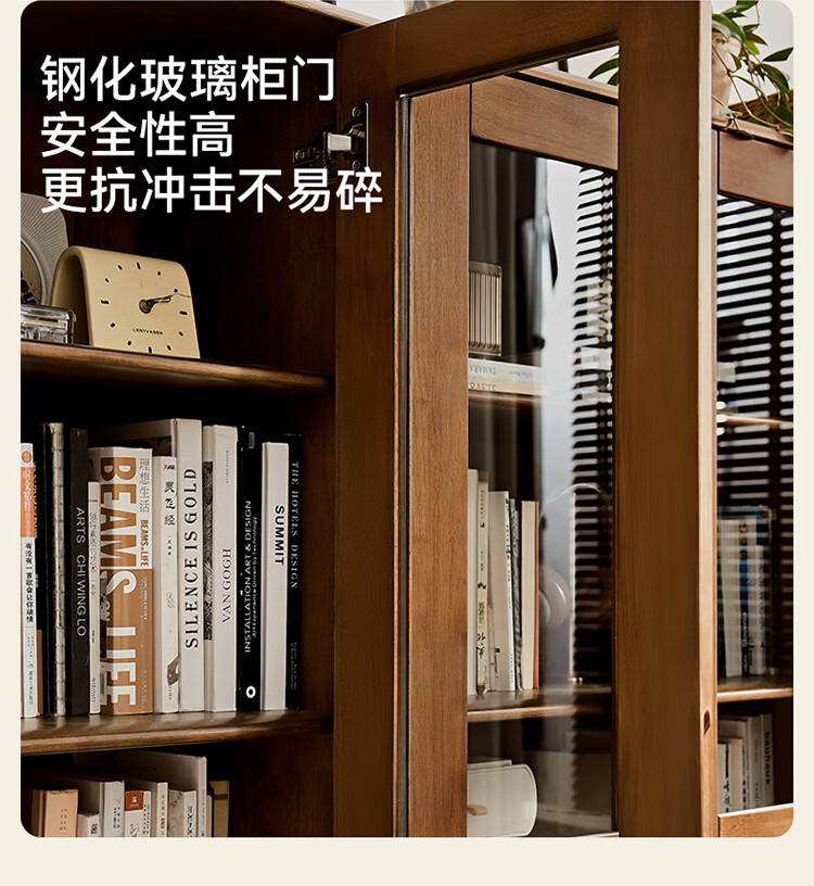 全友家居原木风实木餐边柜家用玻璃展示柜收纳储物小柜子沙发边柜KS 【胡桃木色|橡胶木】双门款餐边柜