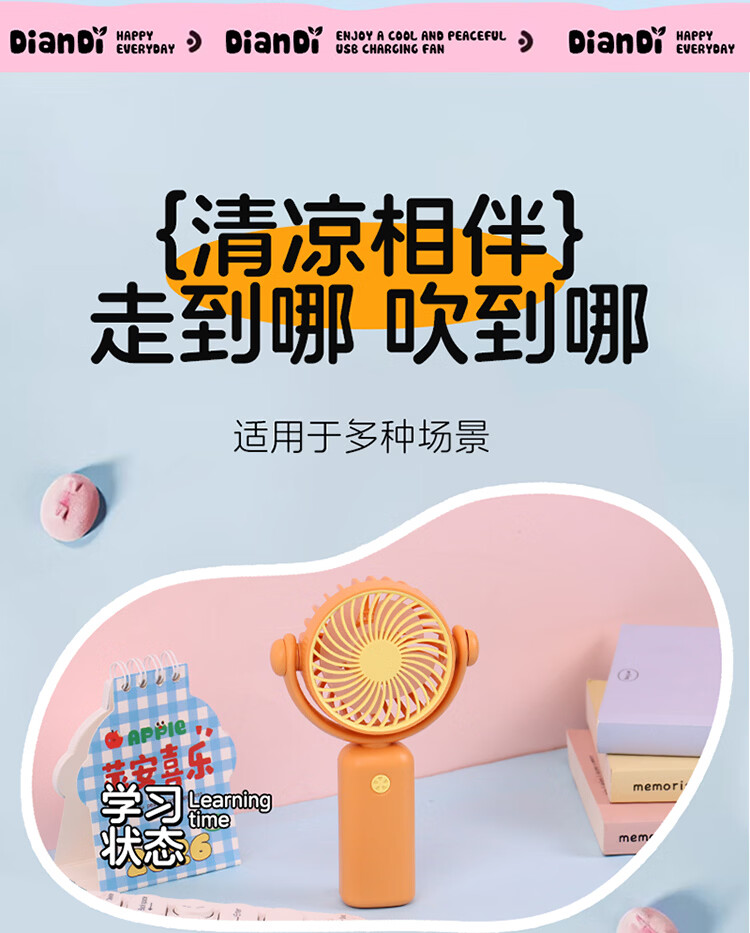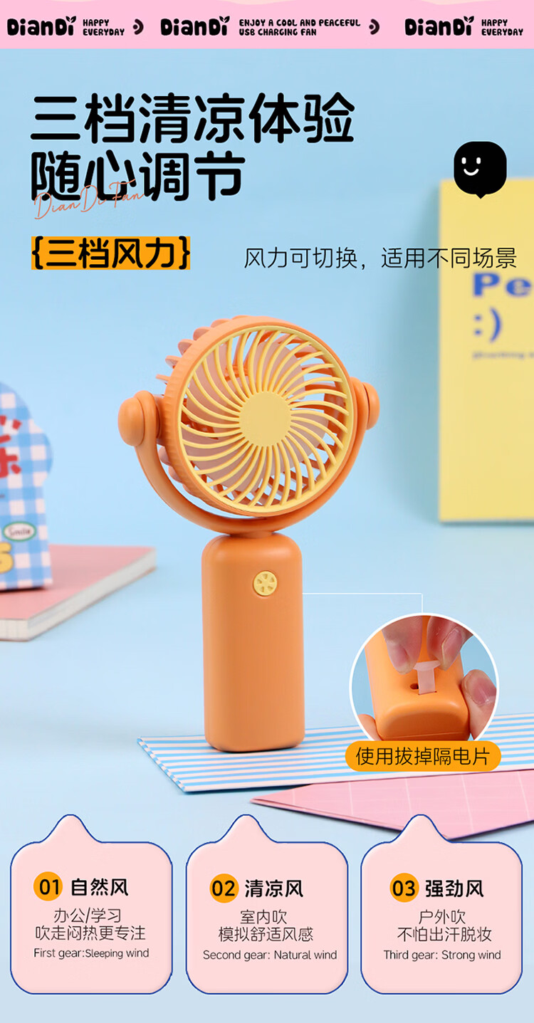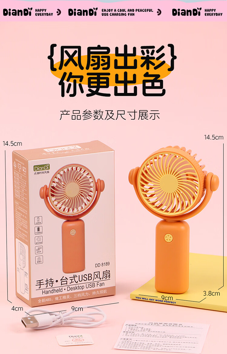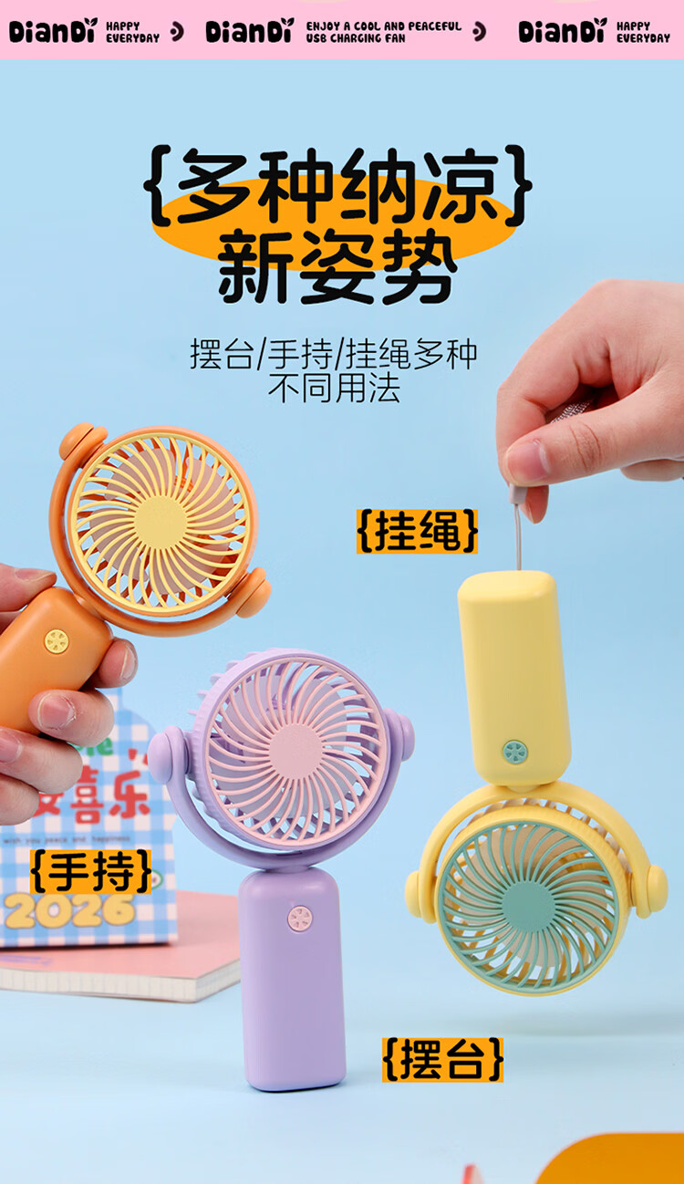 翰鸥斐usb手持风扇小风炮便携式折叠充电迷你小型长续航户外轻音节能电风扇开学季军训宿舍 usb风扇