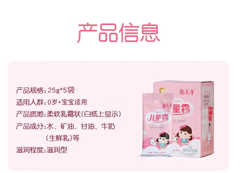 郁美净鲜奶儿童面霜25g*5袋霜保湿补水滋润宝宝面霜润肤霜鲜奶霜