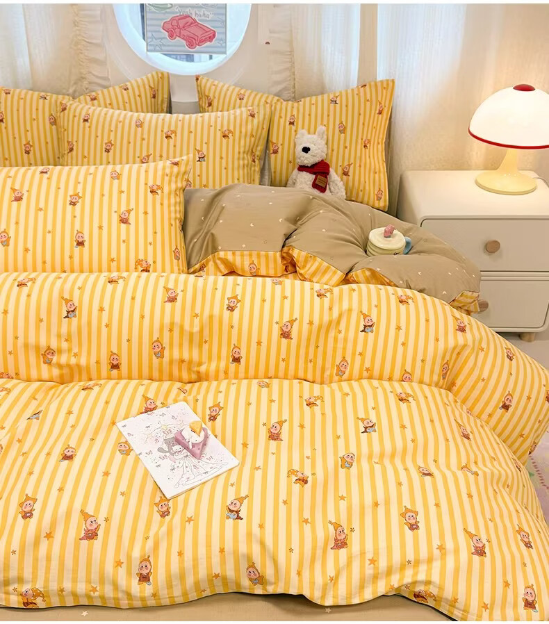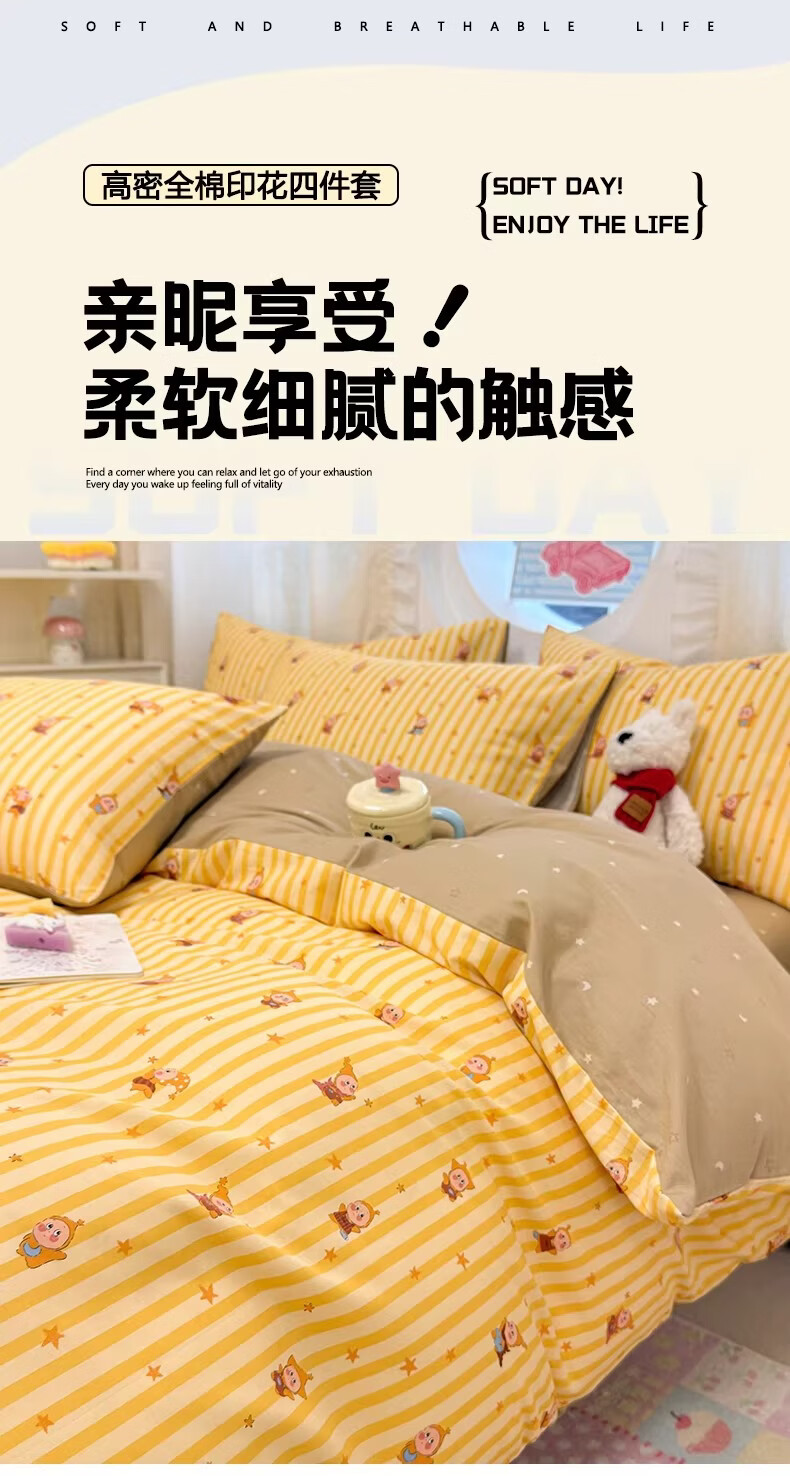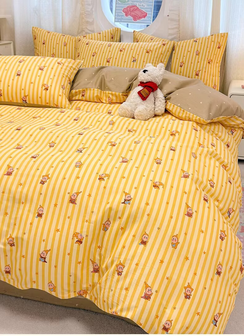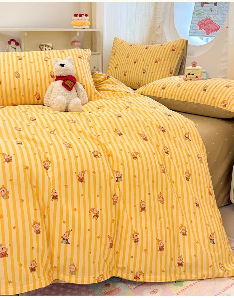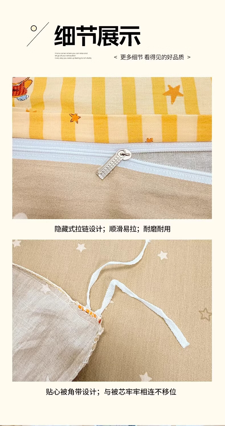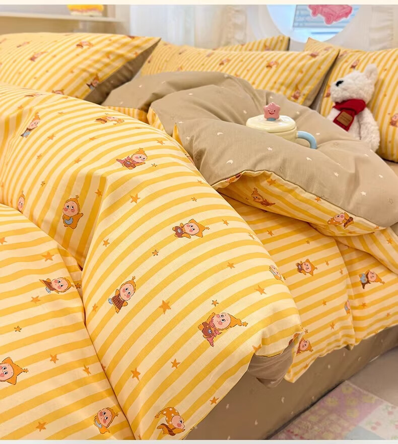 无印良品全棉儿童床上四件套纯棉卡通星星人被套床单床笠款宿舍家用三件套 萌星【亲肤全棉 舒适柔软】 1.8m 床单款 四件套-被套200x230cm