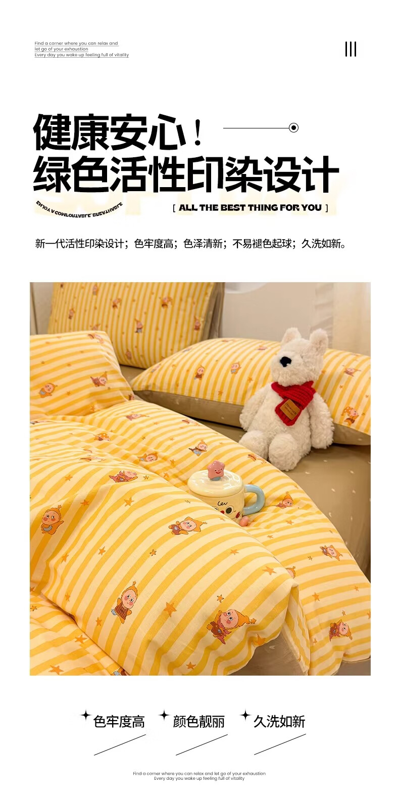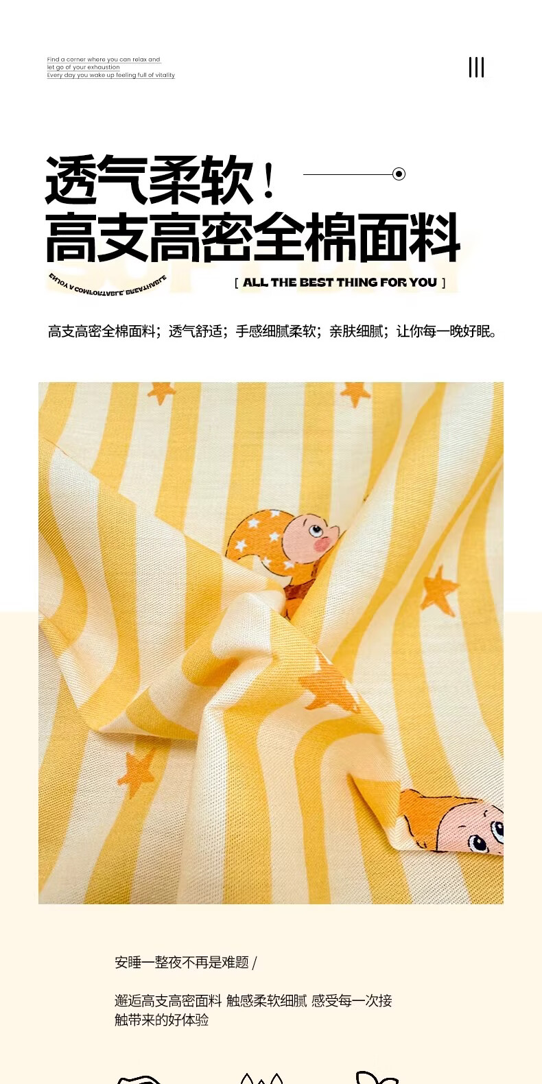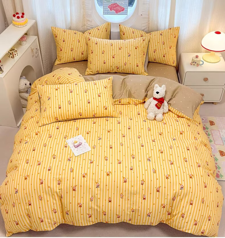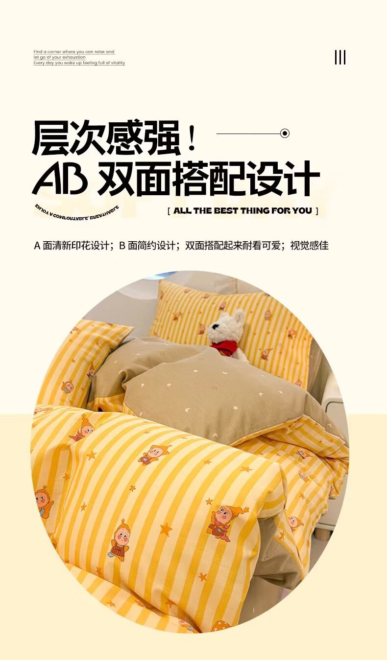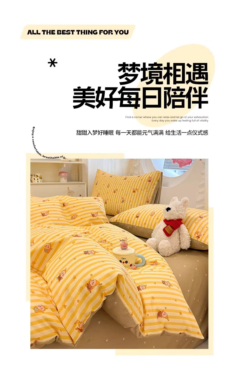 无印良品全棉儿童床上四件套纯棉卡通星星人被套床单床笠款宿舍家用三件套 萌星【亲肤全棉 舒适柔软】 1.8m 床单款 四件套-被套200x230cm