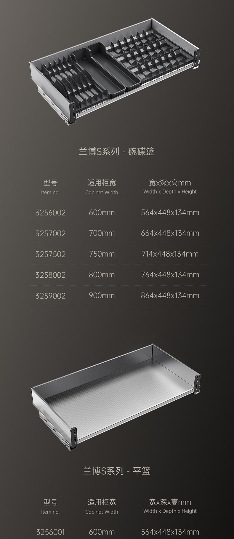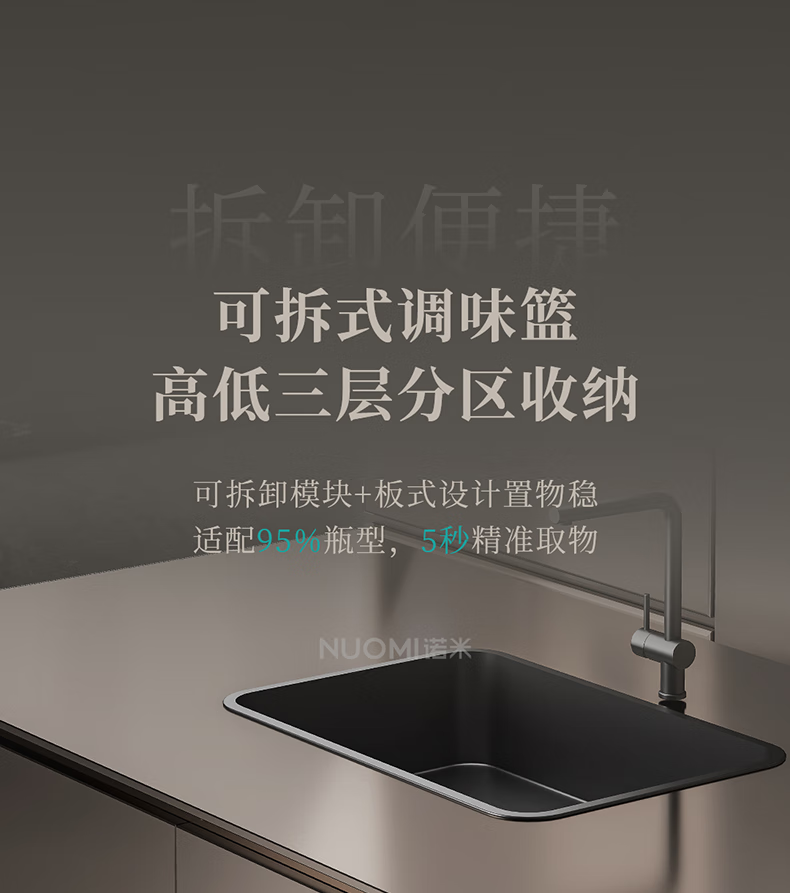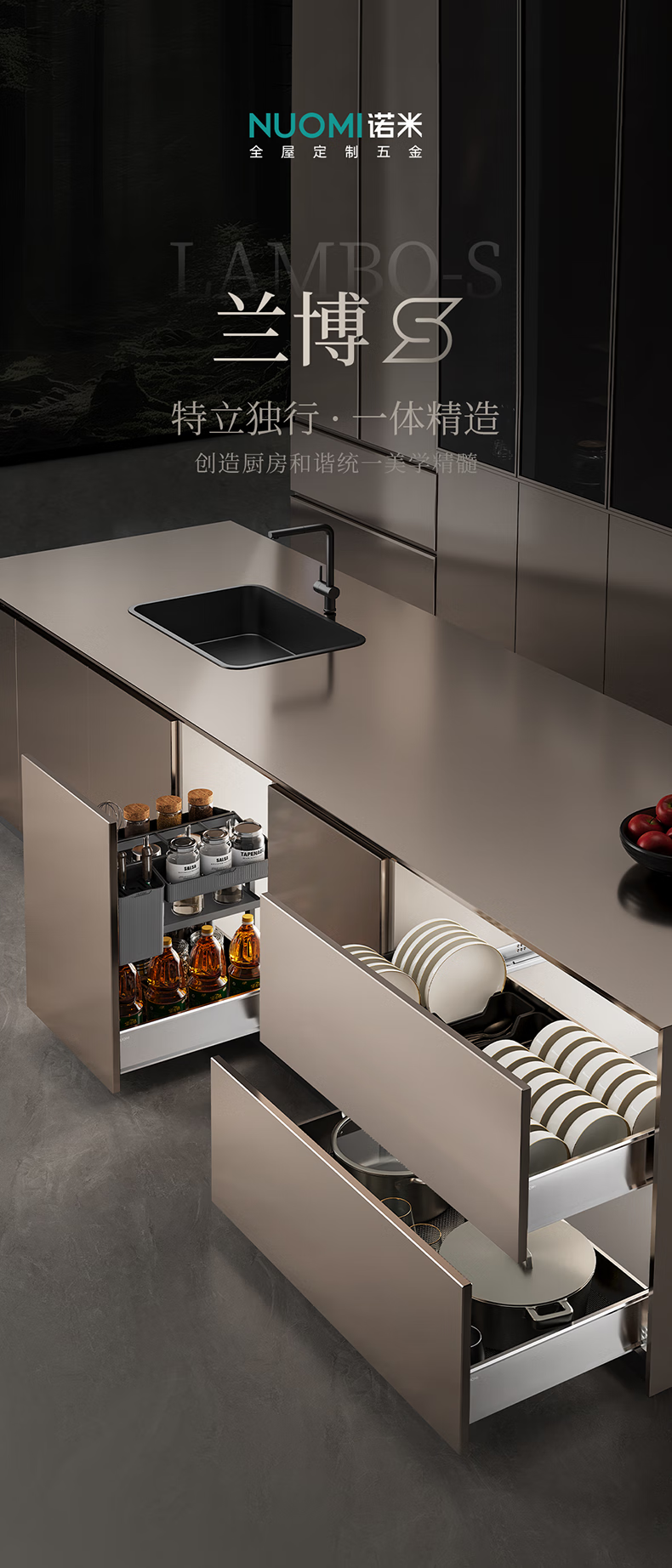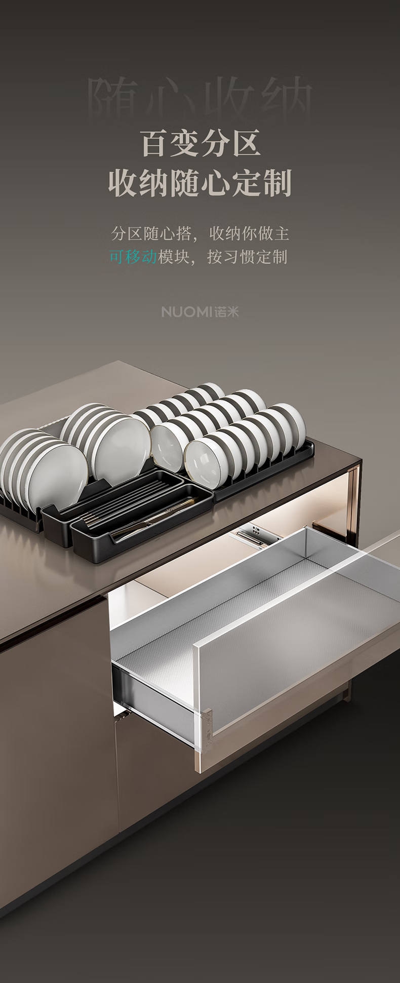 诺米(Nuomi)厨房拉篮抽屉式橱柜拉篮碗碟置物架收纳架调味篮阻尼单双层拉篮 600柜-单层平篮-兰博S系列