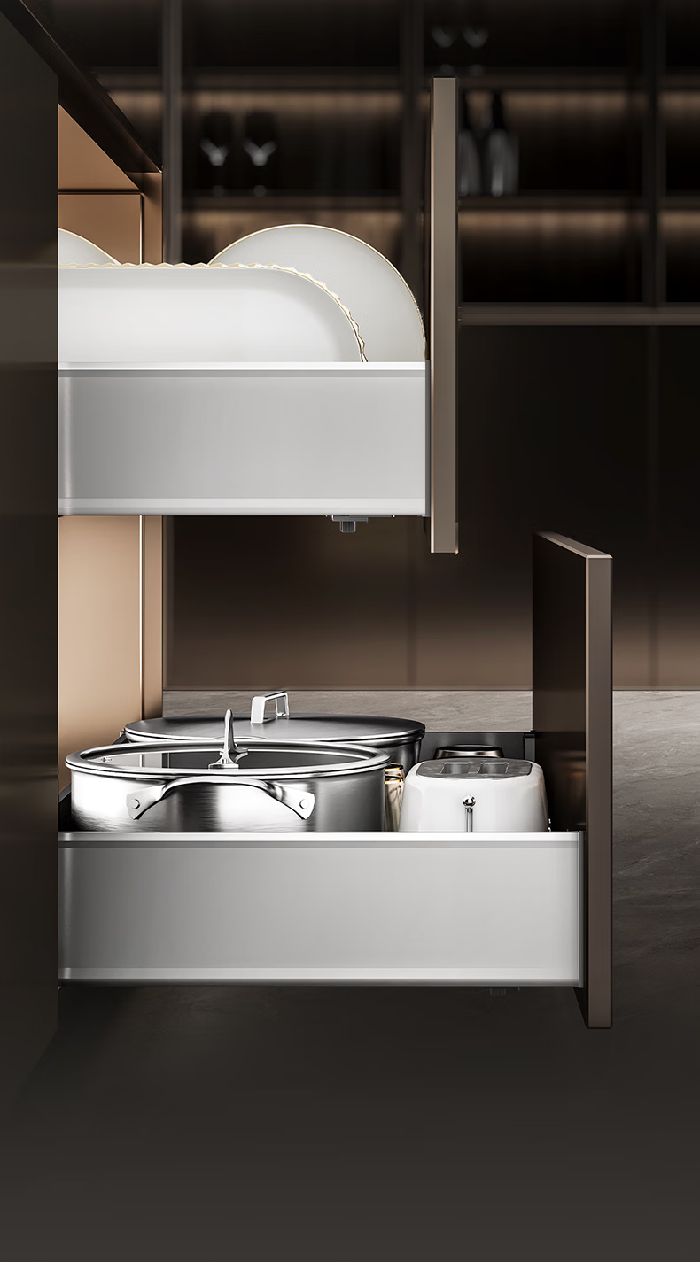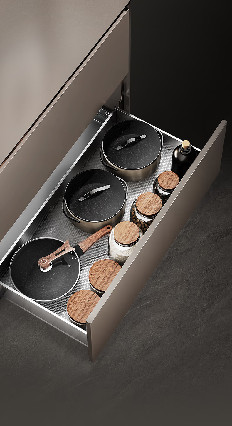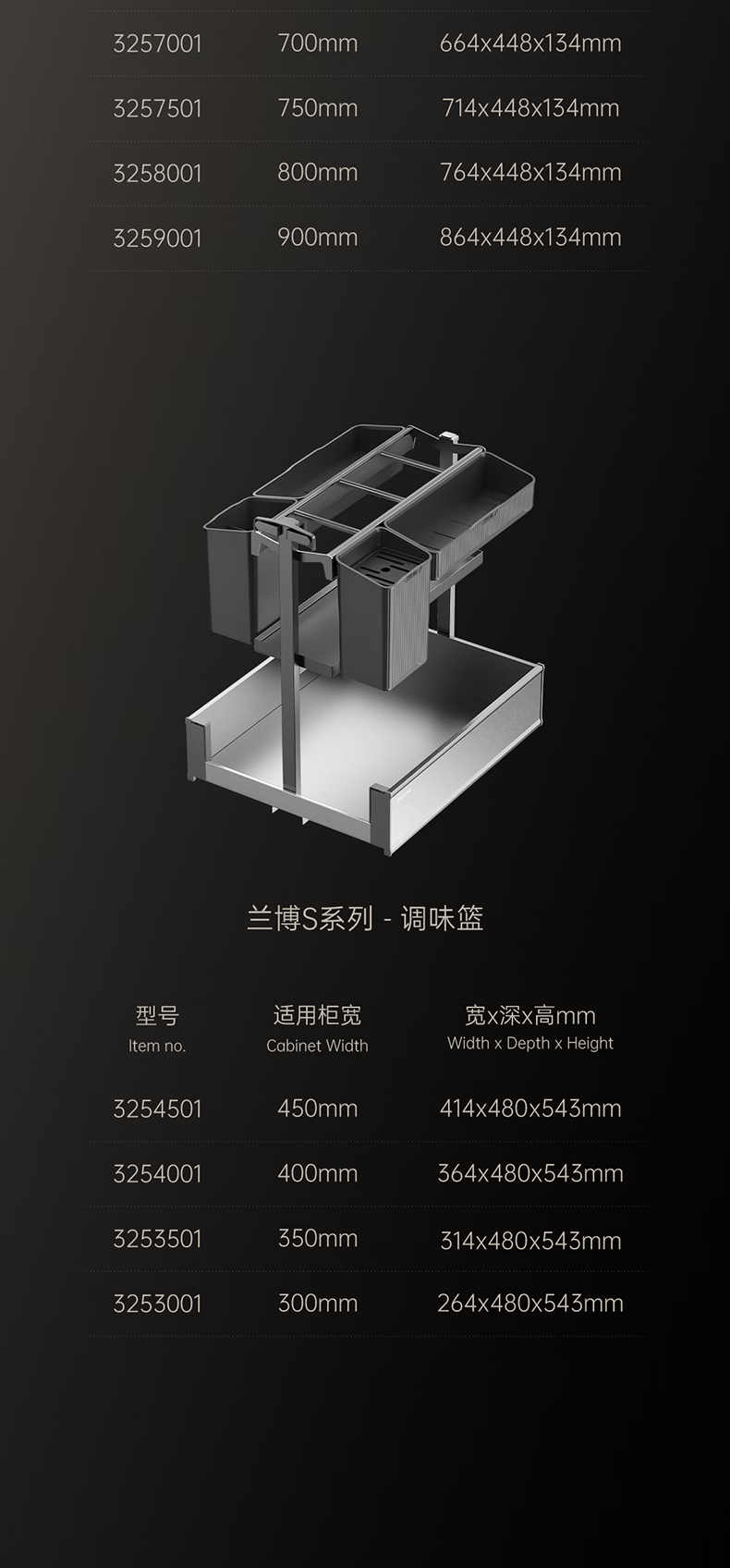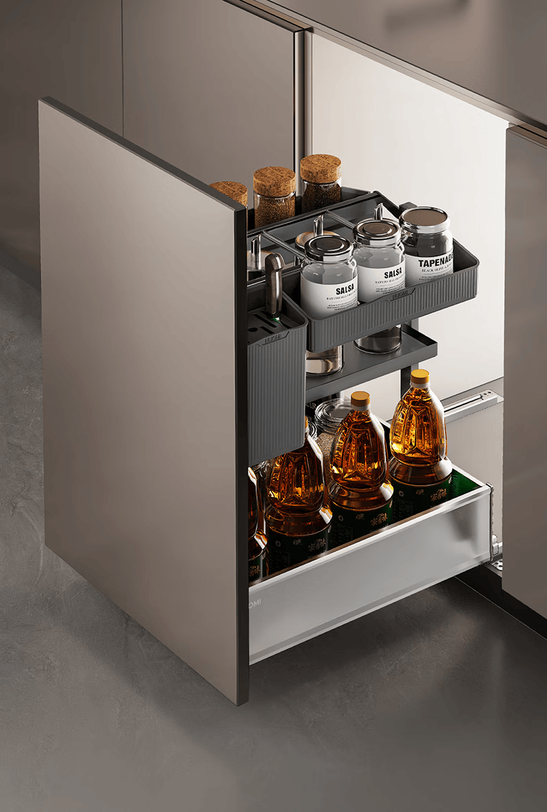 诺米(Nuomi)厨房拉篮抽屉式橱柜拉篮碗碟置物架收纳架调味篮阻尼单双层拉篮 600柜-单层平篮-兰博S系列