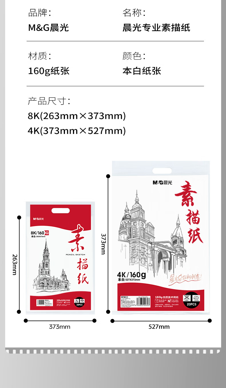 晨光(M&G)文具4K/160g巧手画本白素描纸绘画纸素描本美术写生临摹速写铅画纸开学礼物APYMU22PA