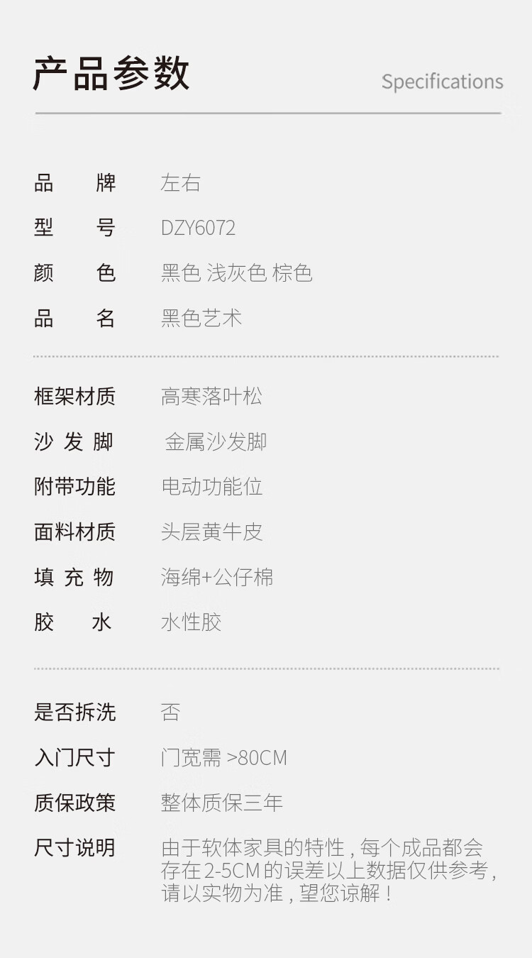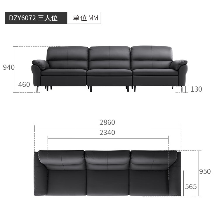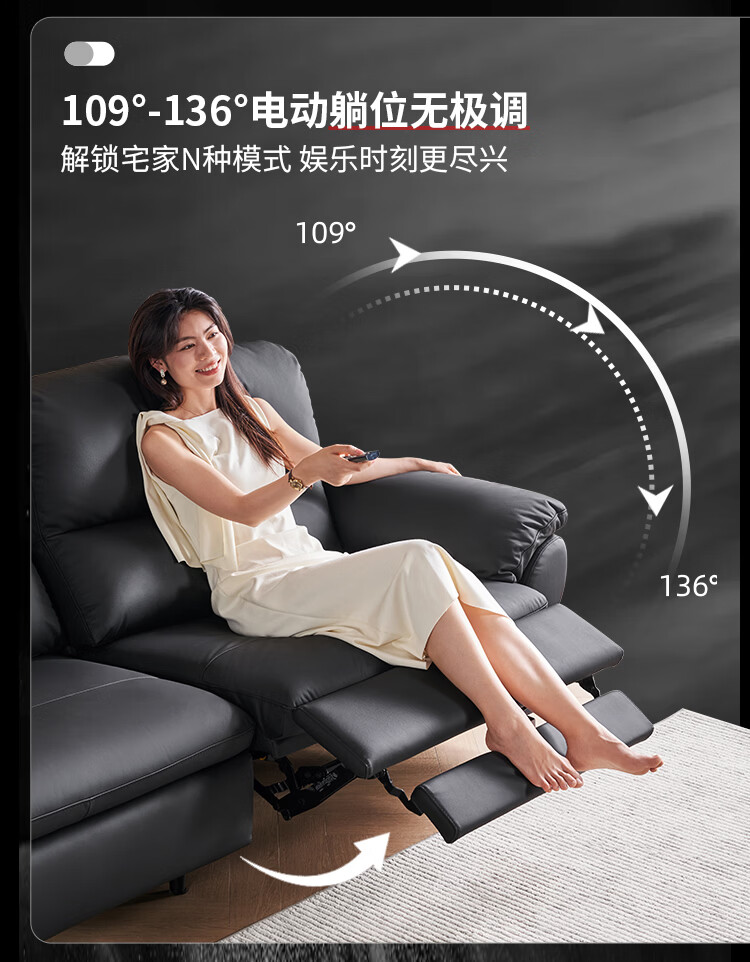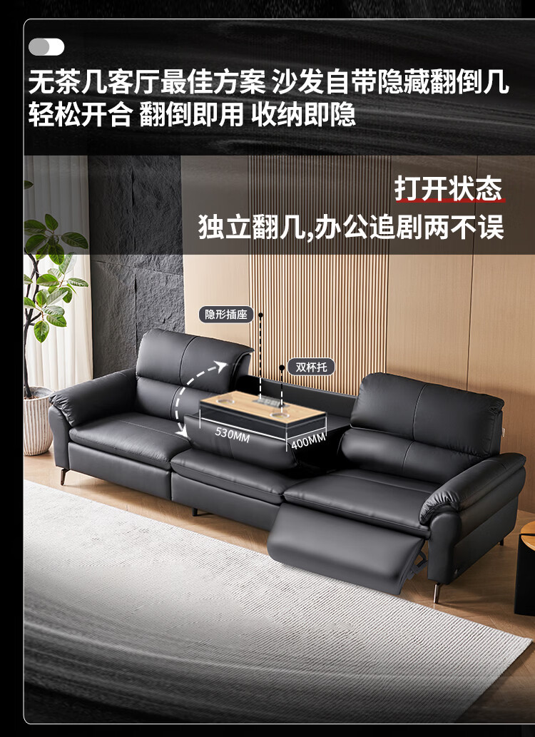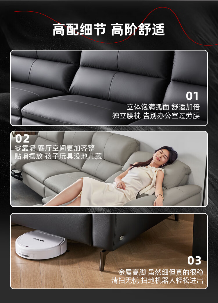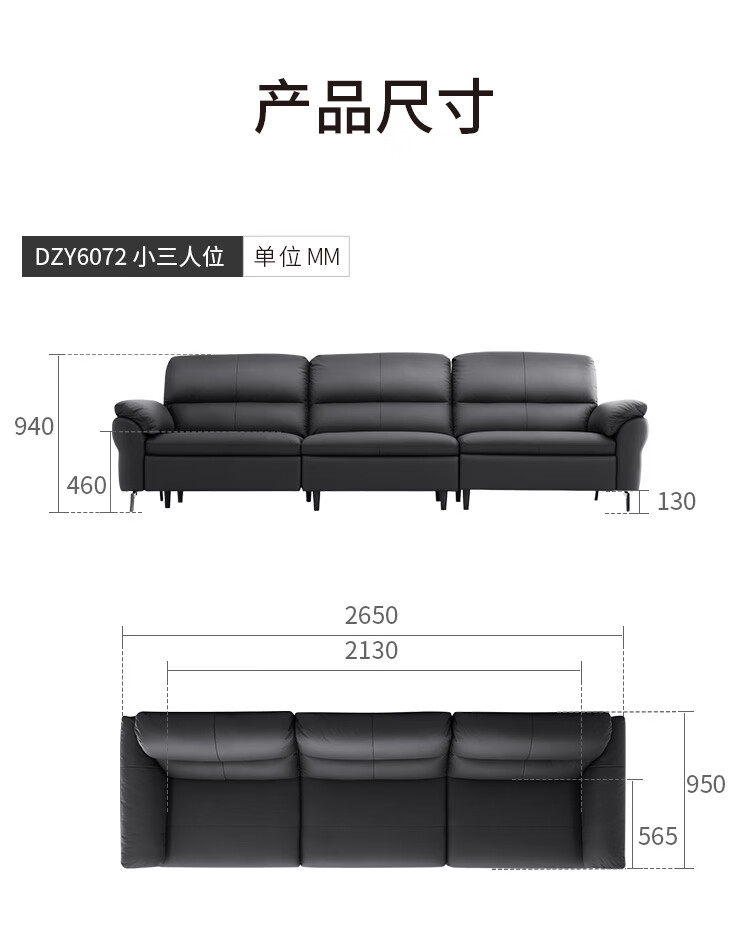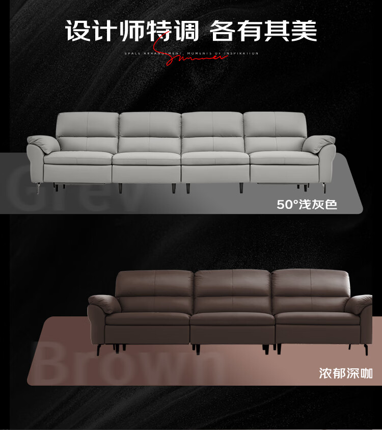 左右真皮沙发零靠墙电动功能沙发高脚可进扫地机大户型头层皮沙发6072 29固定位2.65米小三人 灰