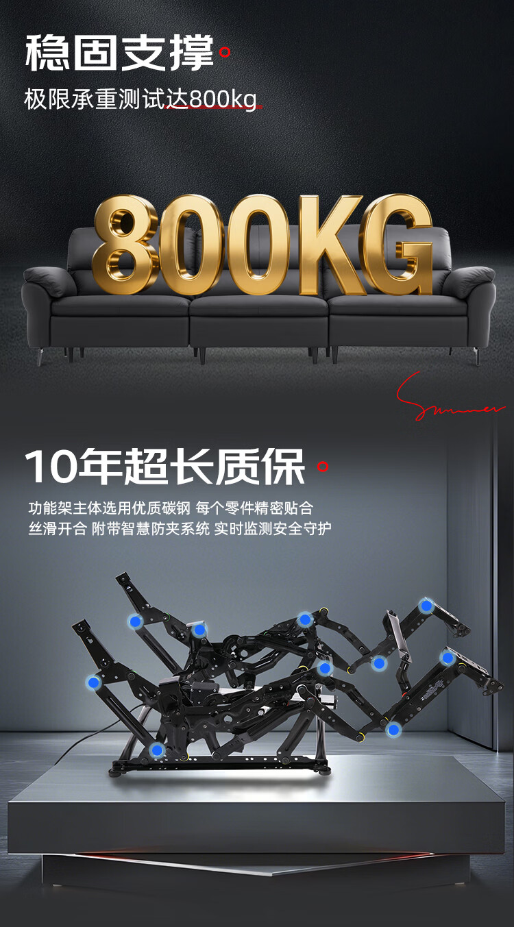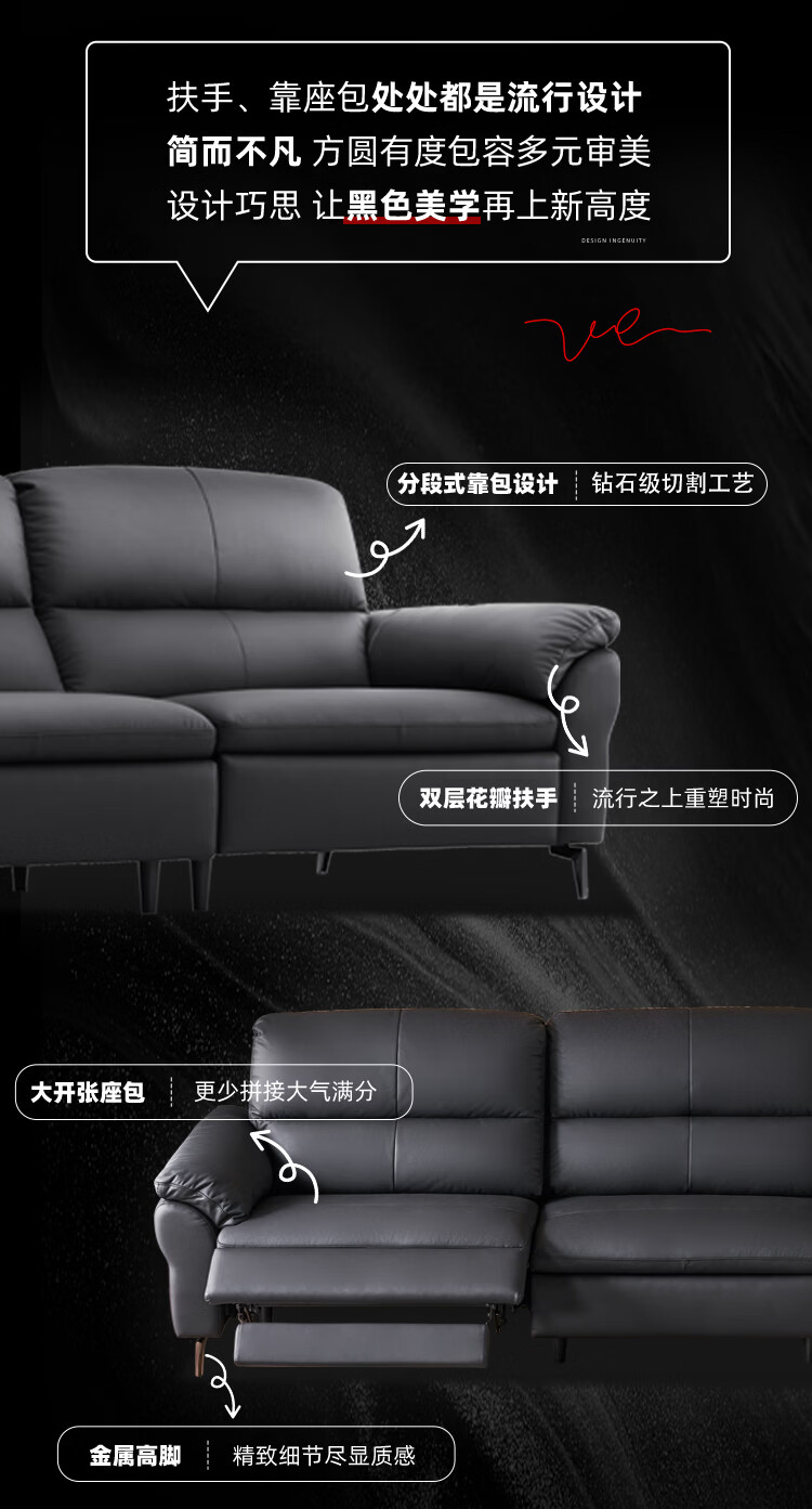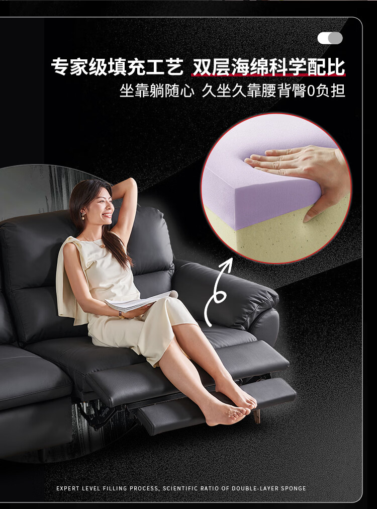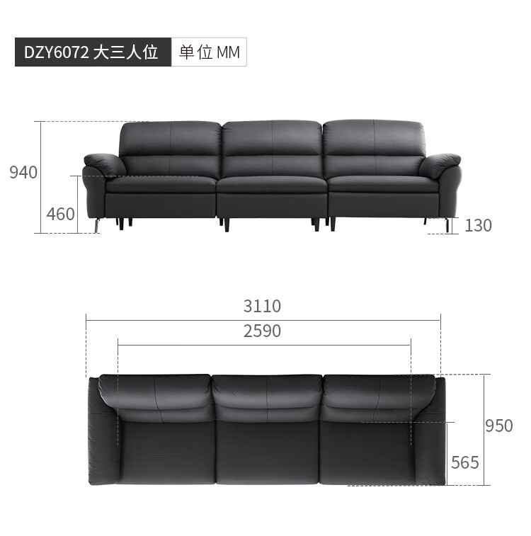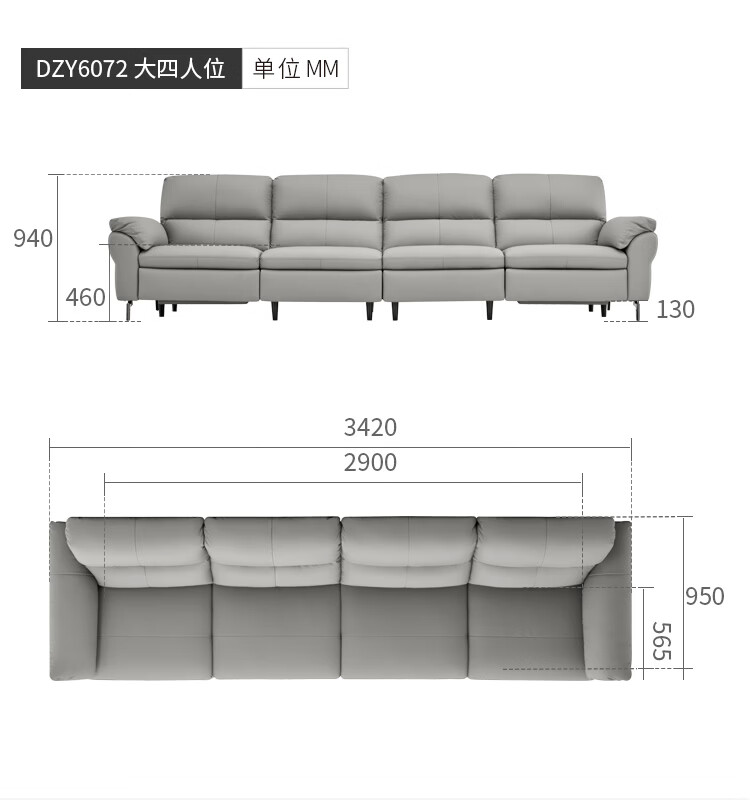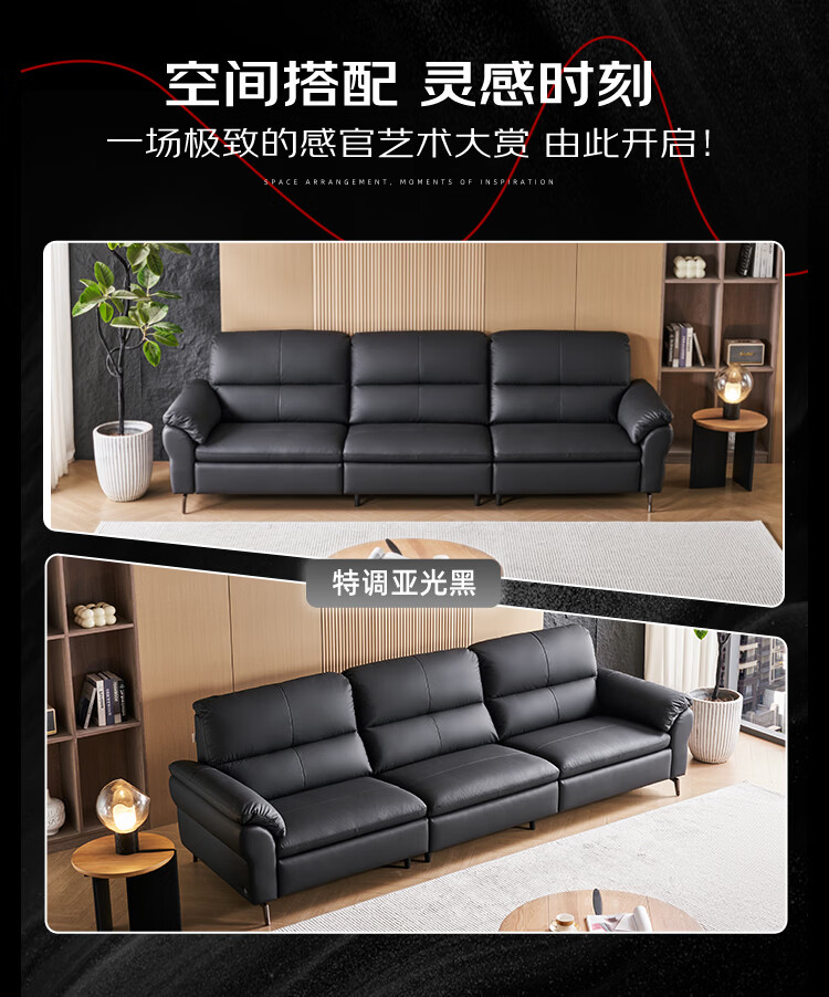 左右真皮沙发零靠墙电动功能沙发高脚可进扫地机大户型头层皮沙发6072 29固定位2.65米小三人 灰