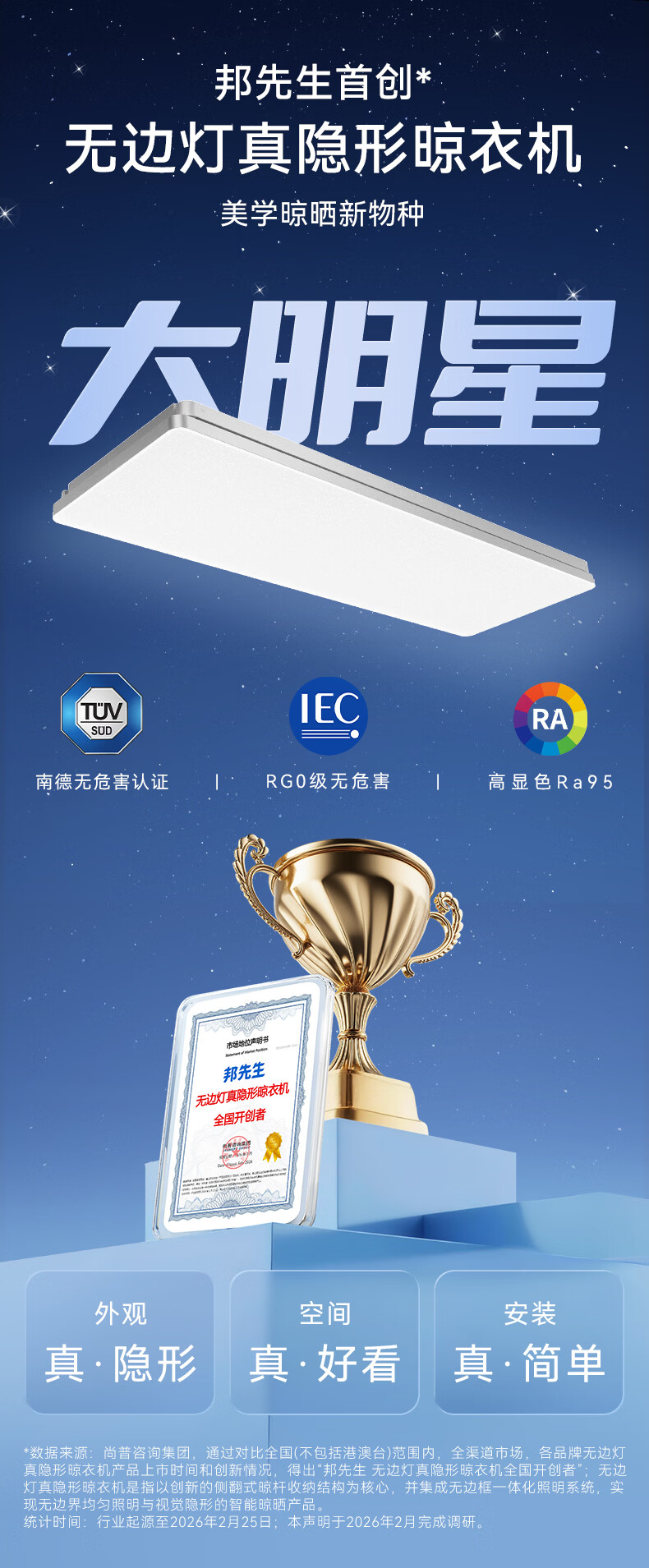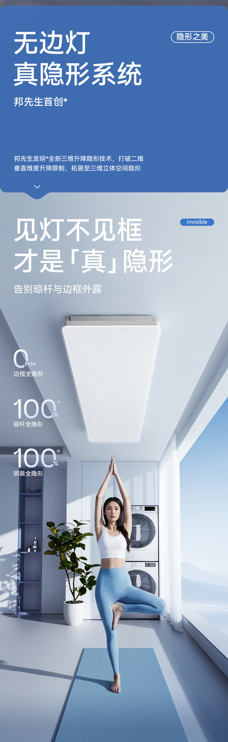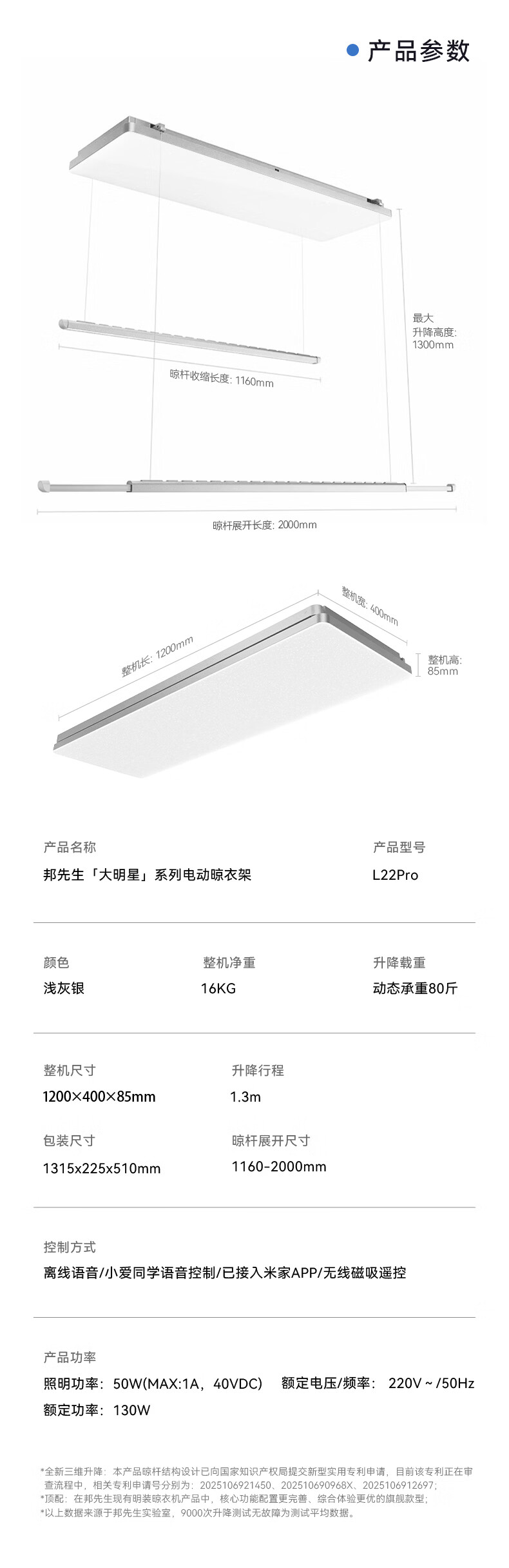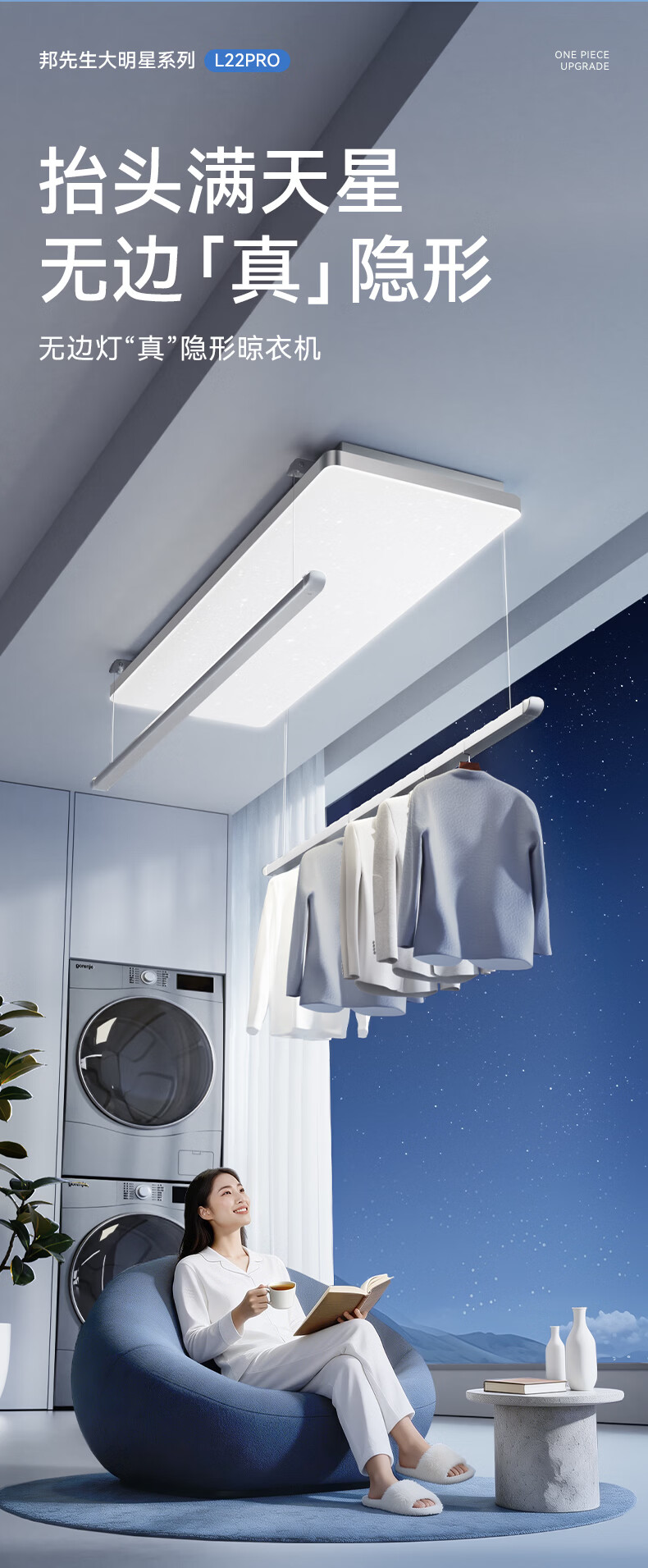 邦先生(Mr.Bond)智能电动晾衣架隐形超薄衣被同晒星空灯照明大明星系列 L22PRO 银灰色 双控晾衣灯