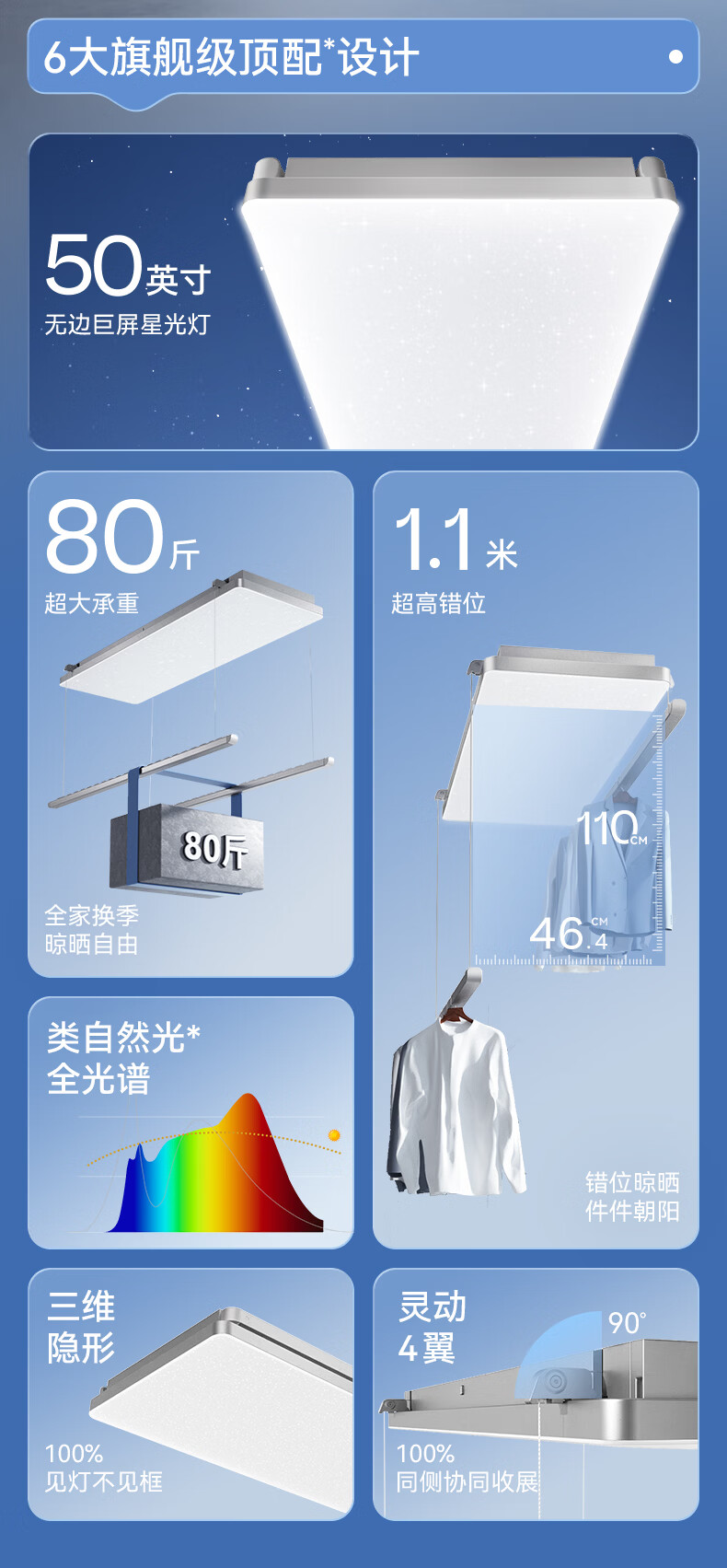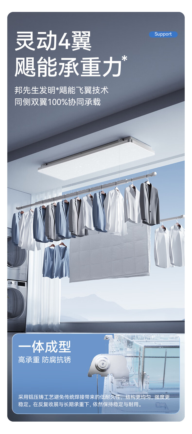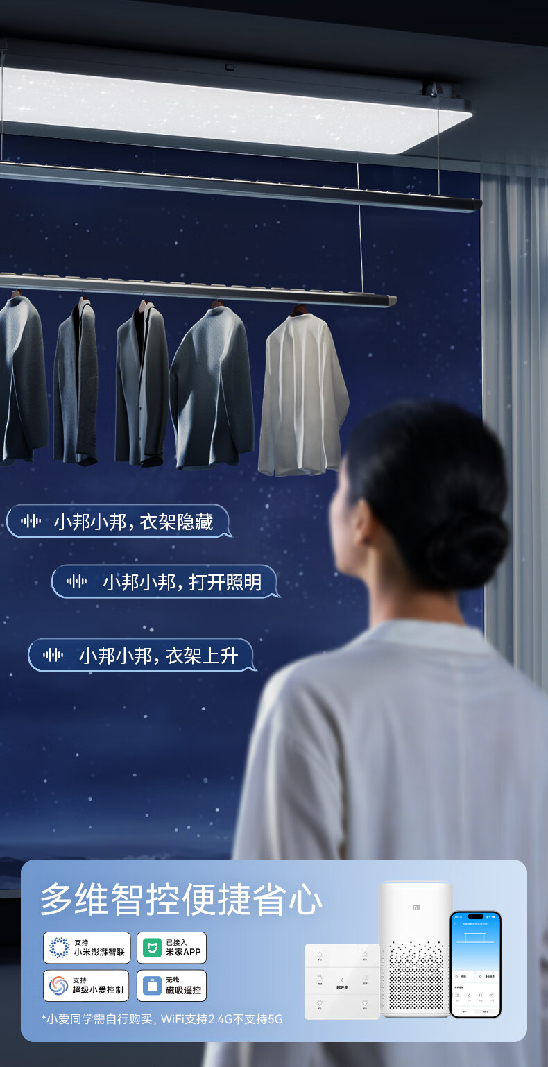 邦先生(Mr.Bond)智能电动晾衣架隐形超薄衣被同晒星空灯照明大明星系列 L22PRO 银灰色 双控晾衣灯