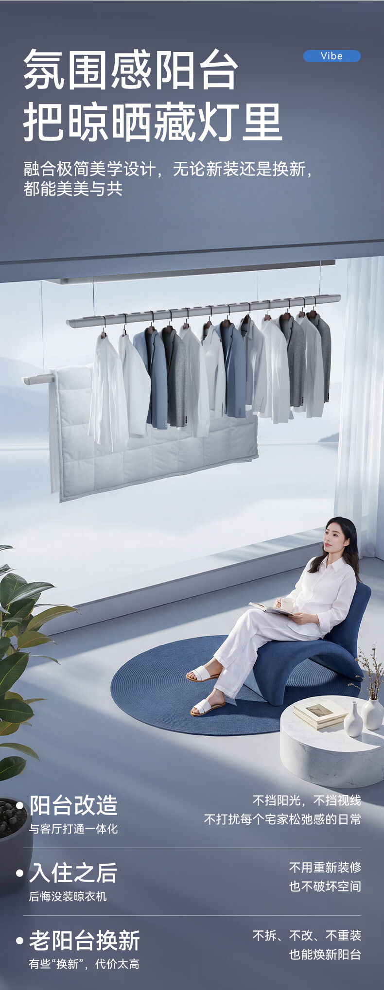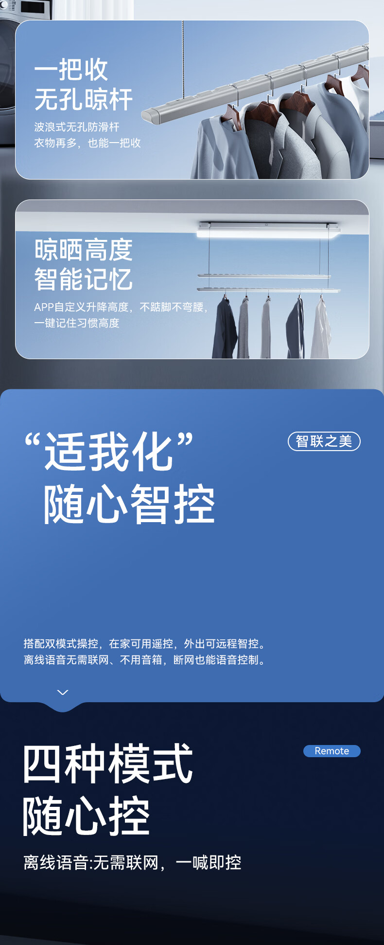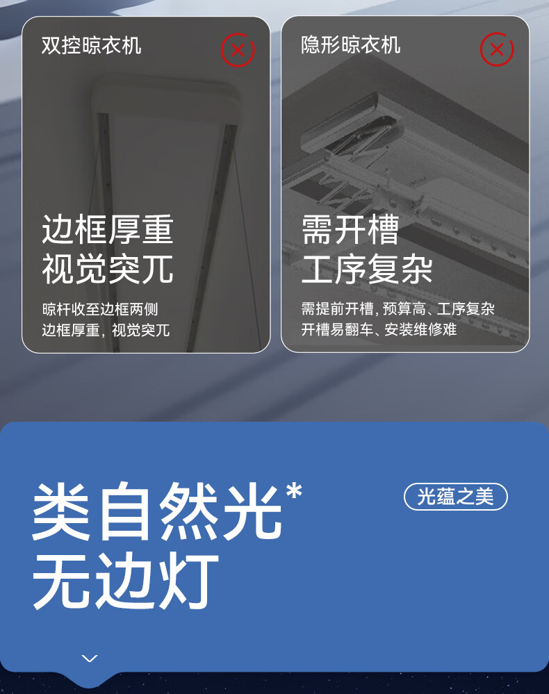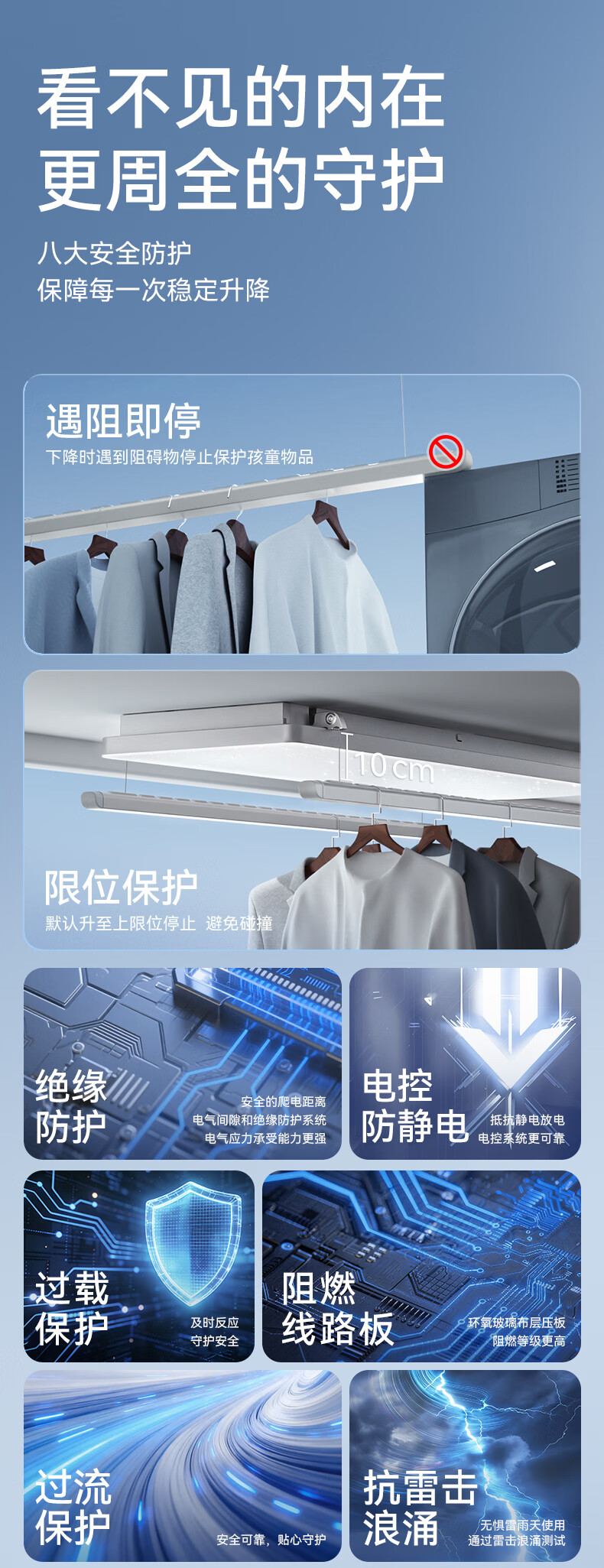 邦先生(Mr.Bond)智能电动晾衣架隐形超薄衣被同晒星空灯照明大明星系列 L22PRO 银灰色 双控晾衣灯