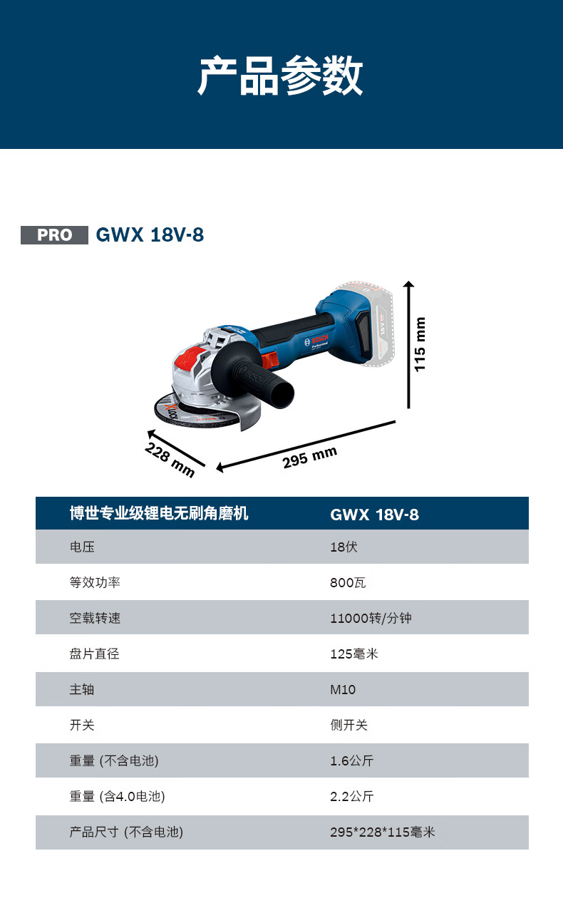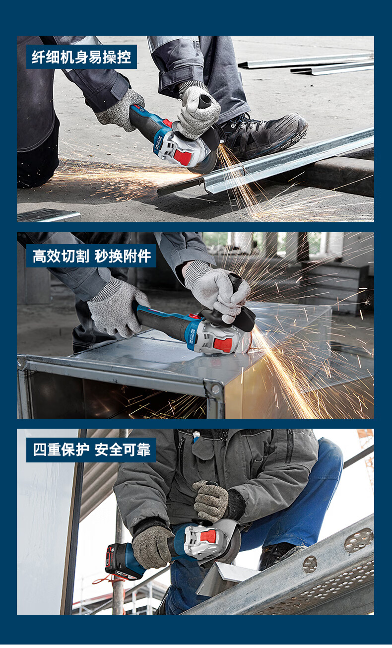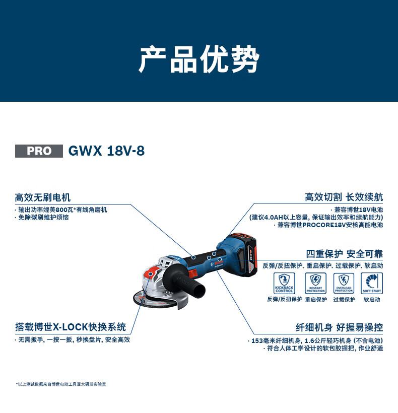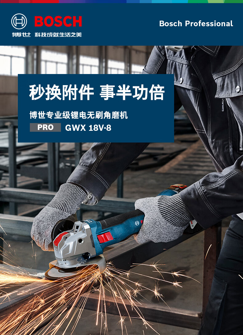 博世(BOSCH)GWX 18V-8专业级锂电无刷角磨机高效切割磨光机X-LOCK快换打磨机 两电一充套装