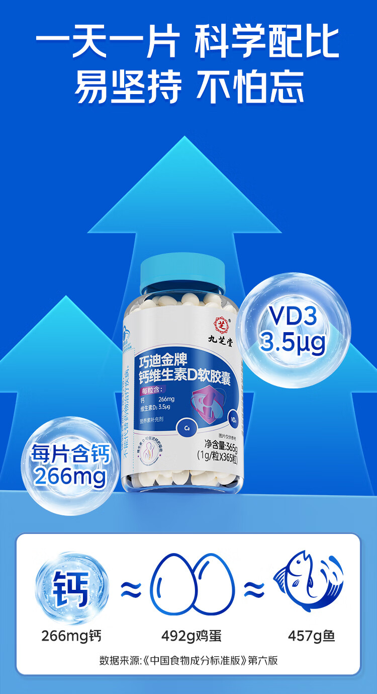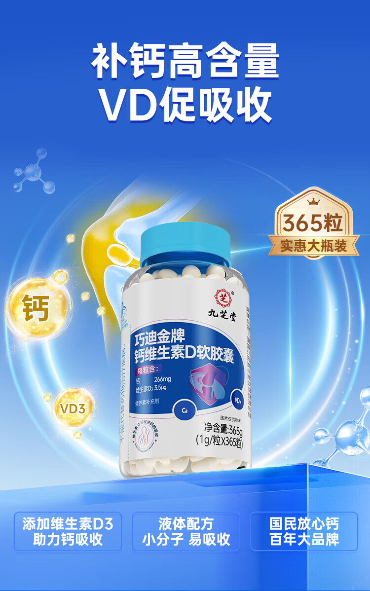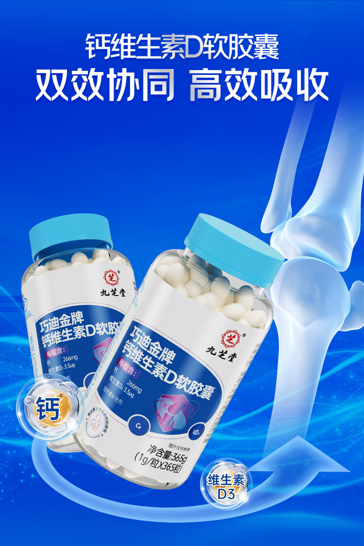 九芝堂钙片维生素d365粒液体钙片中老年人补钙腿抽筋腰腿疼骨质疏松成人