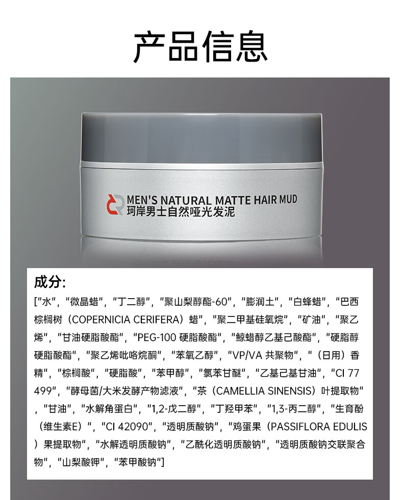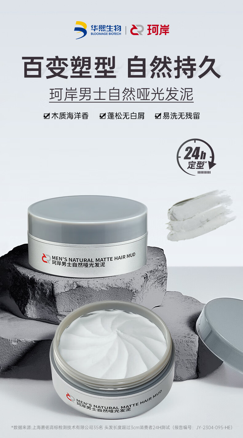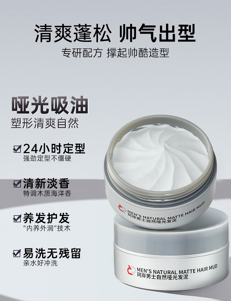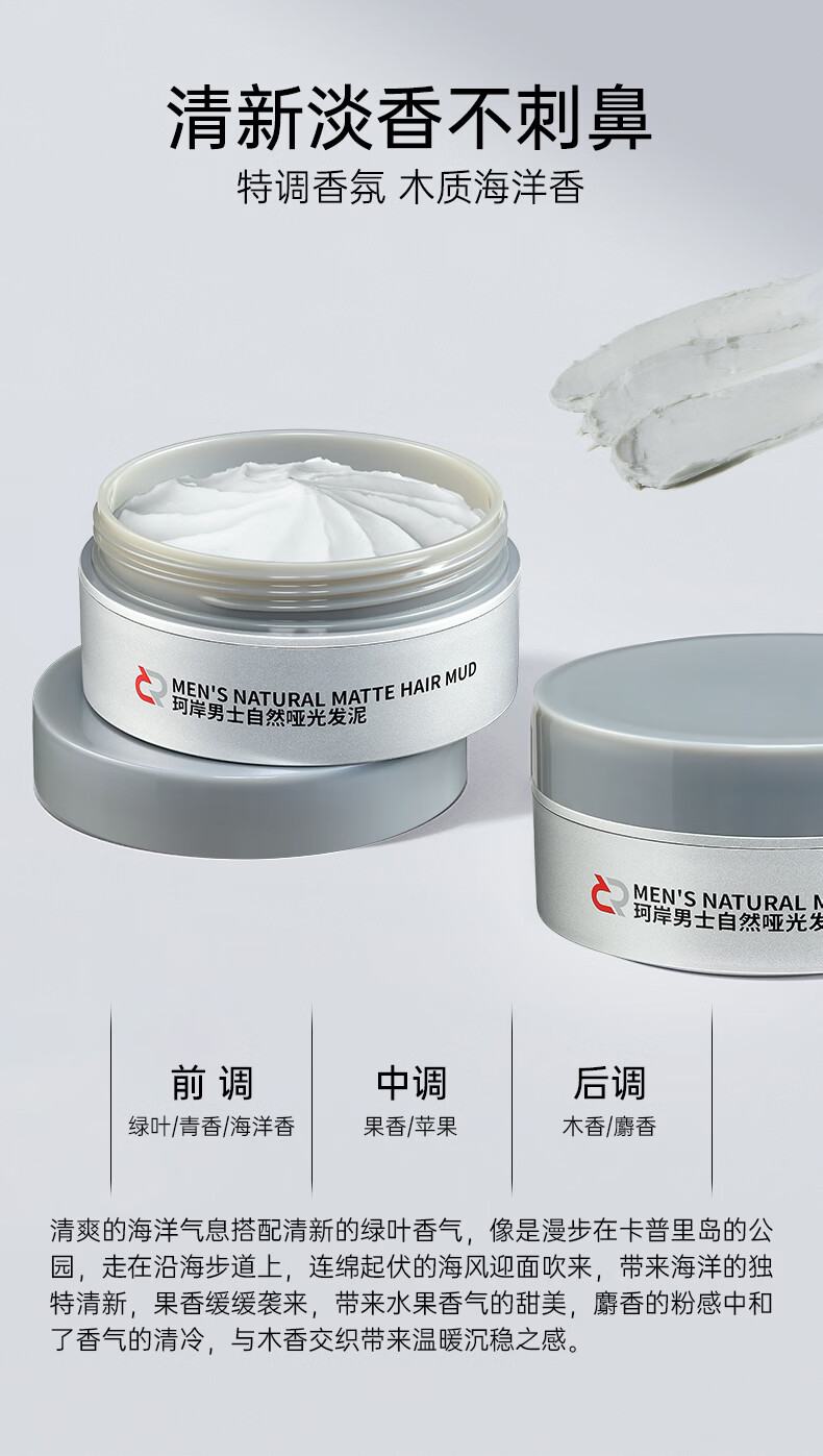 珂岸 华熙生物自然哑光发泥头发蓬松定型清香持久造型男士发泥发蜡 自然哑光发泥50g