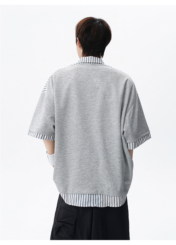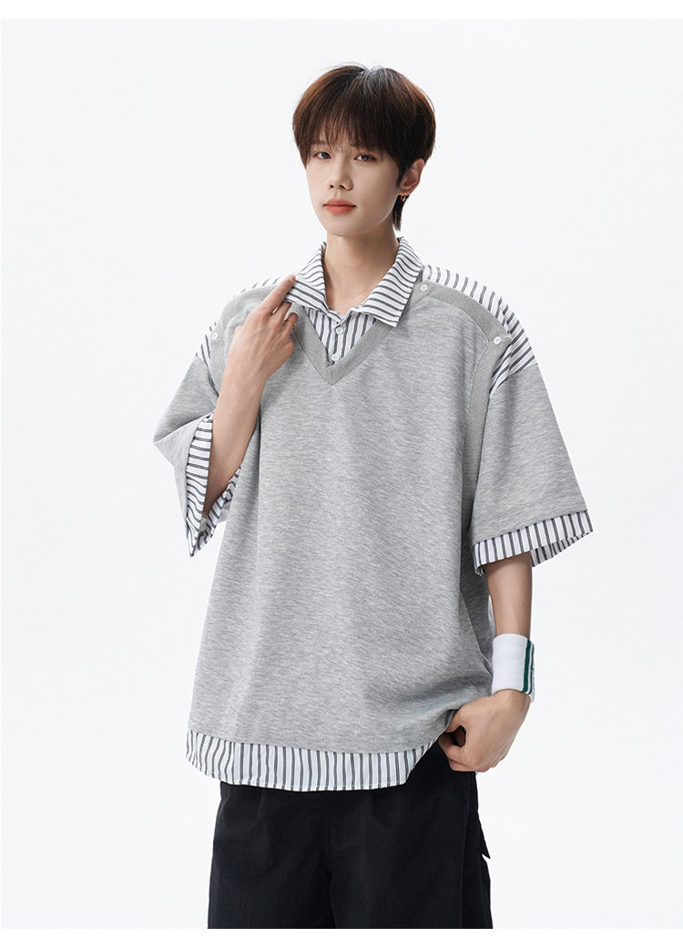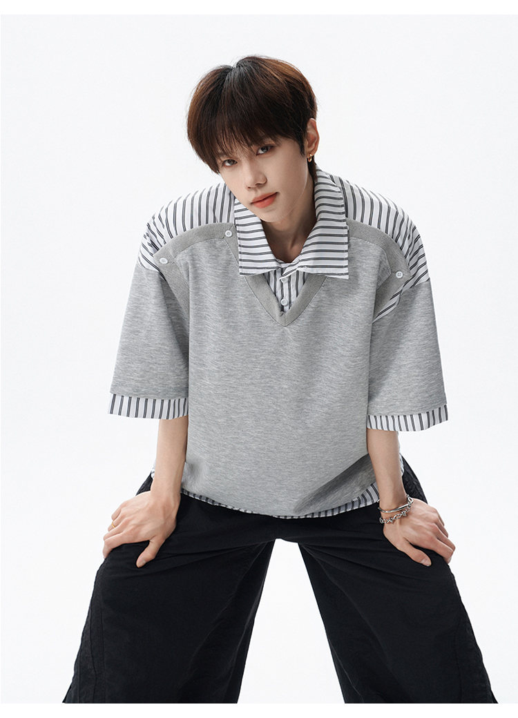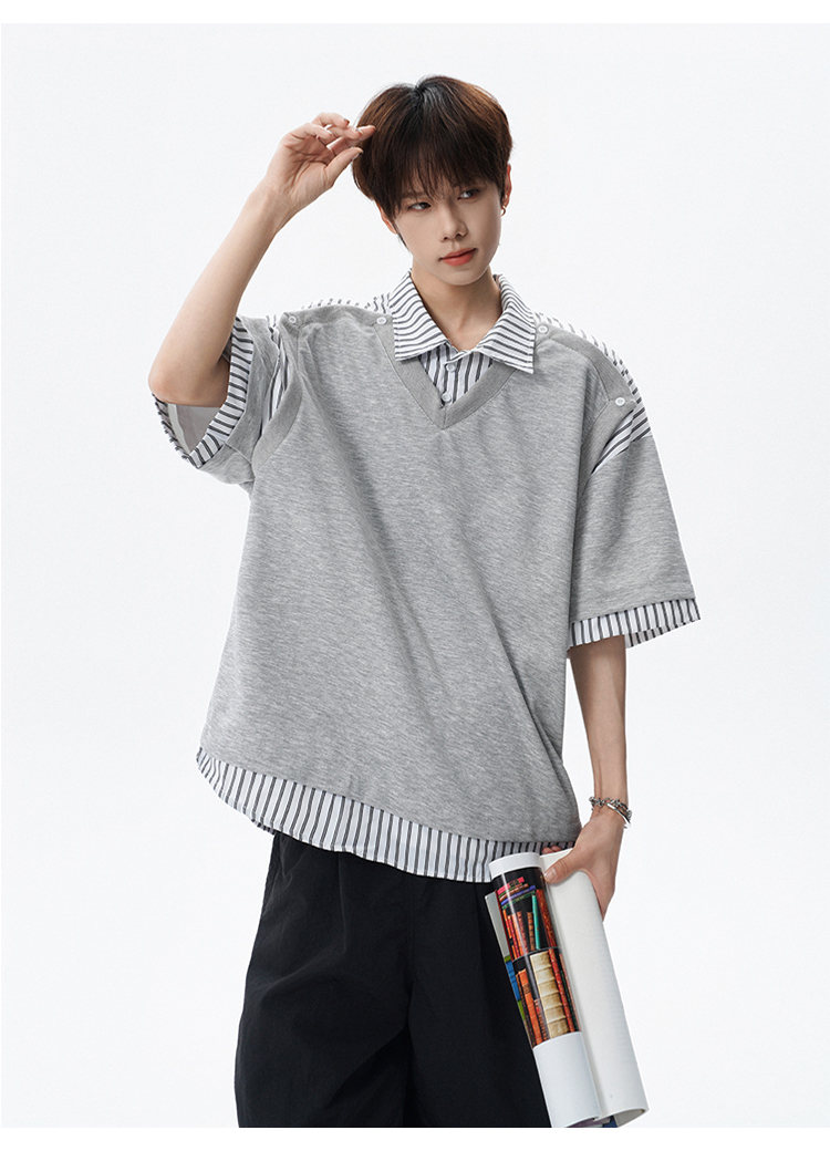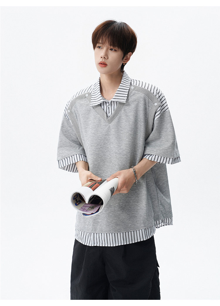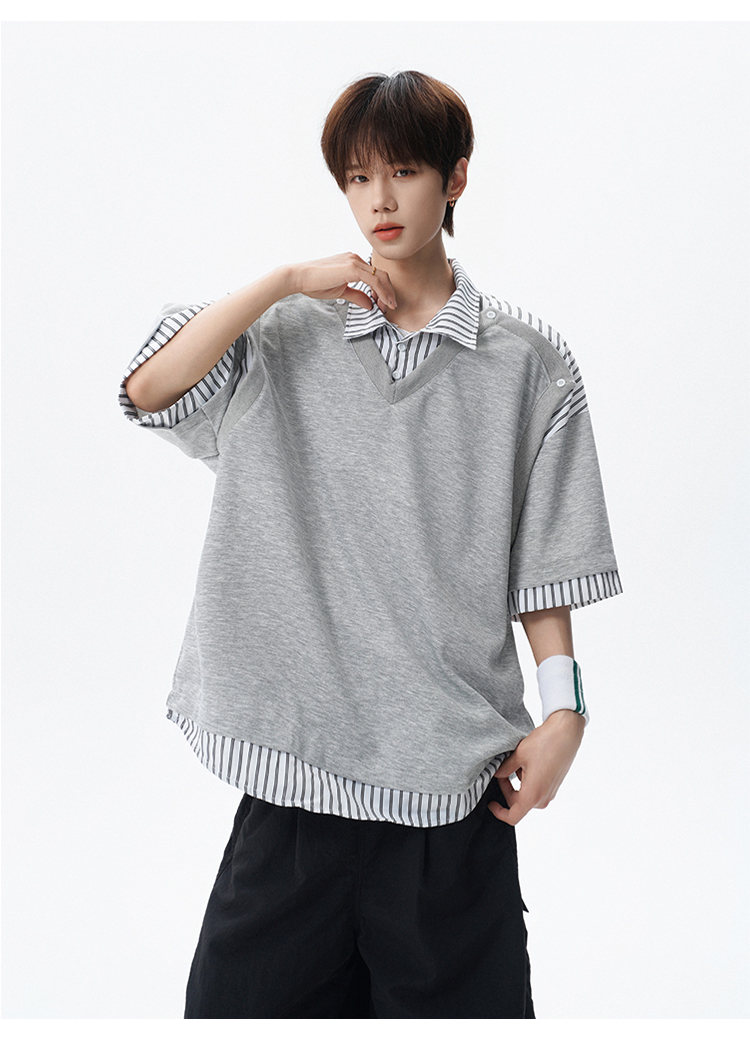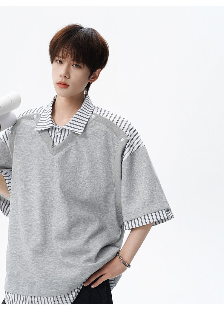 NEW OR MODE学院风短袖polo衫男士夏季新款条纹拼接撞色t恤百搭休闲半袖衬衫 黑色【高品质】 M 【建议90-110斤】