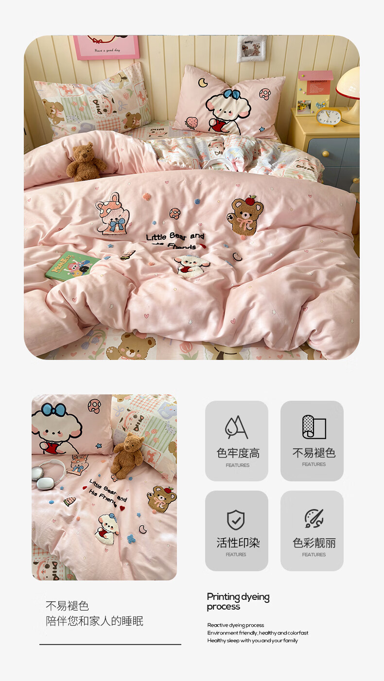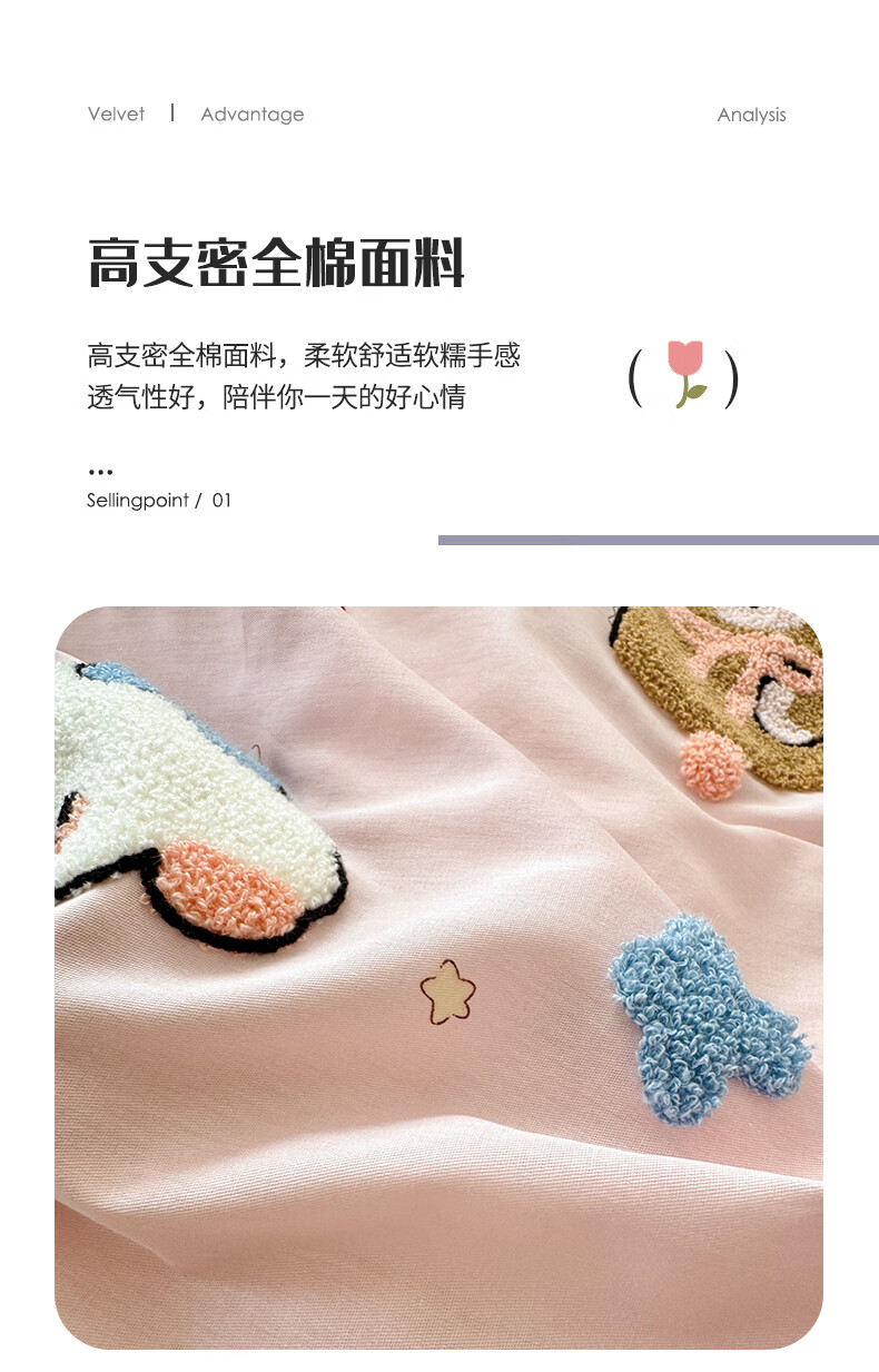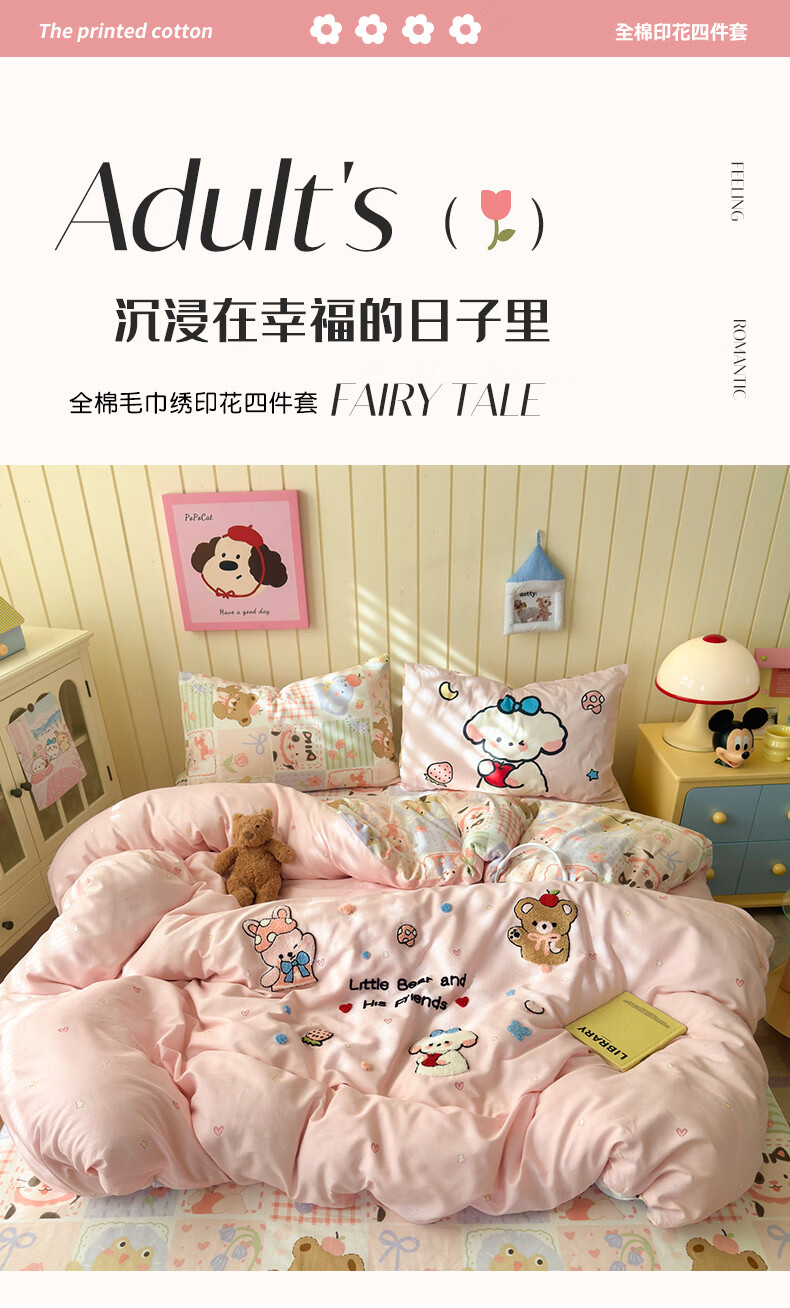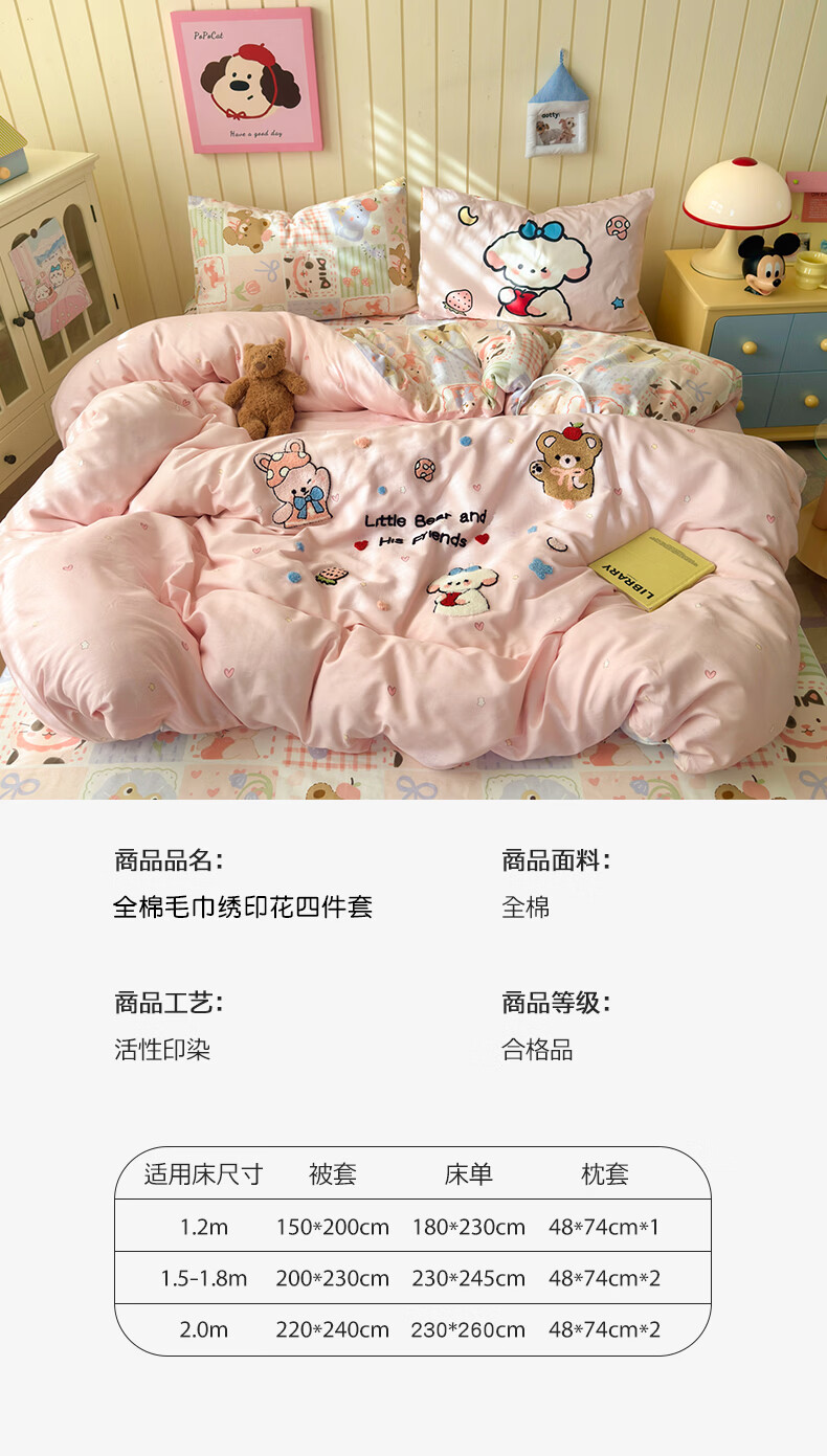 一默全棉四件套100%纯棉2026新款被套床单枕套毛巾绣马上有钱四件套 马上有钱-粉色 2.0m 床单款 (被套200*230cm) 四件套