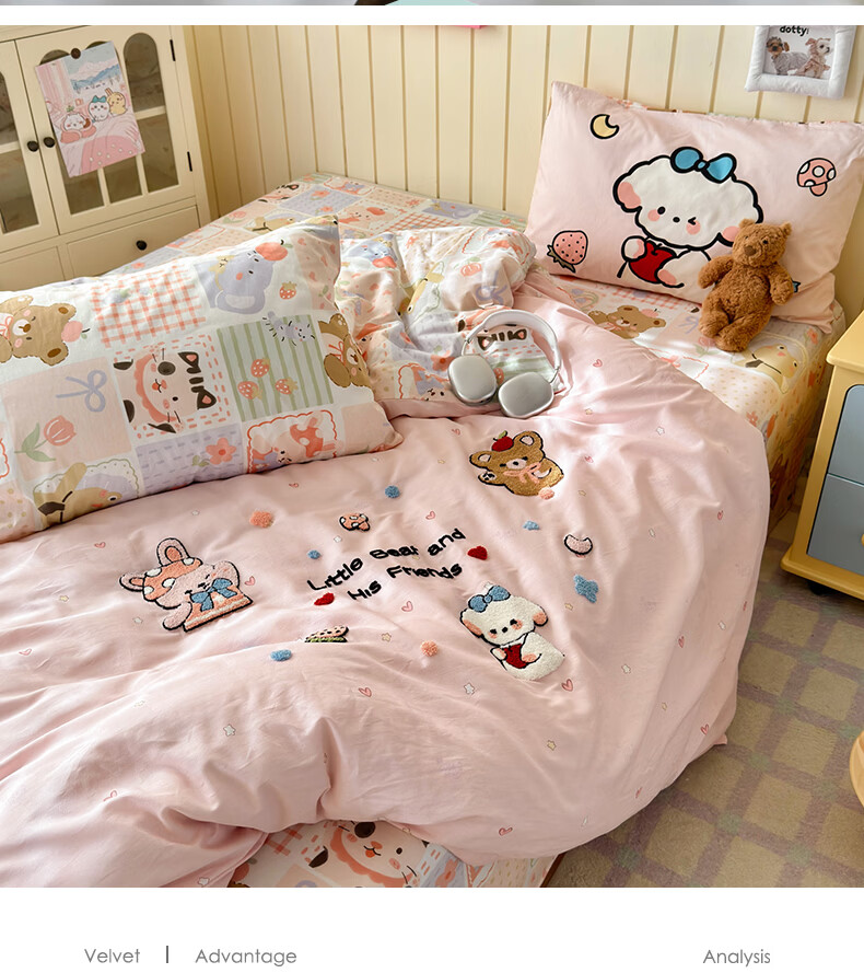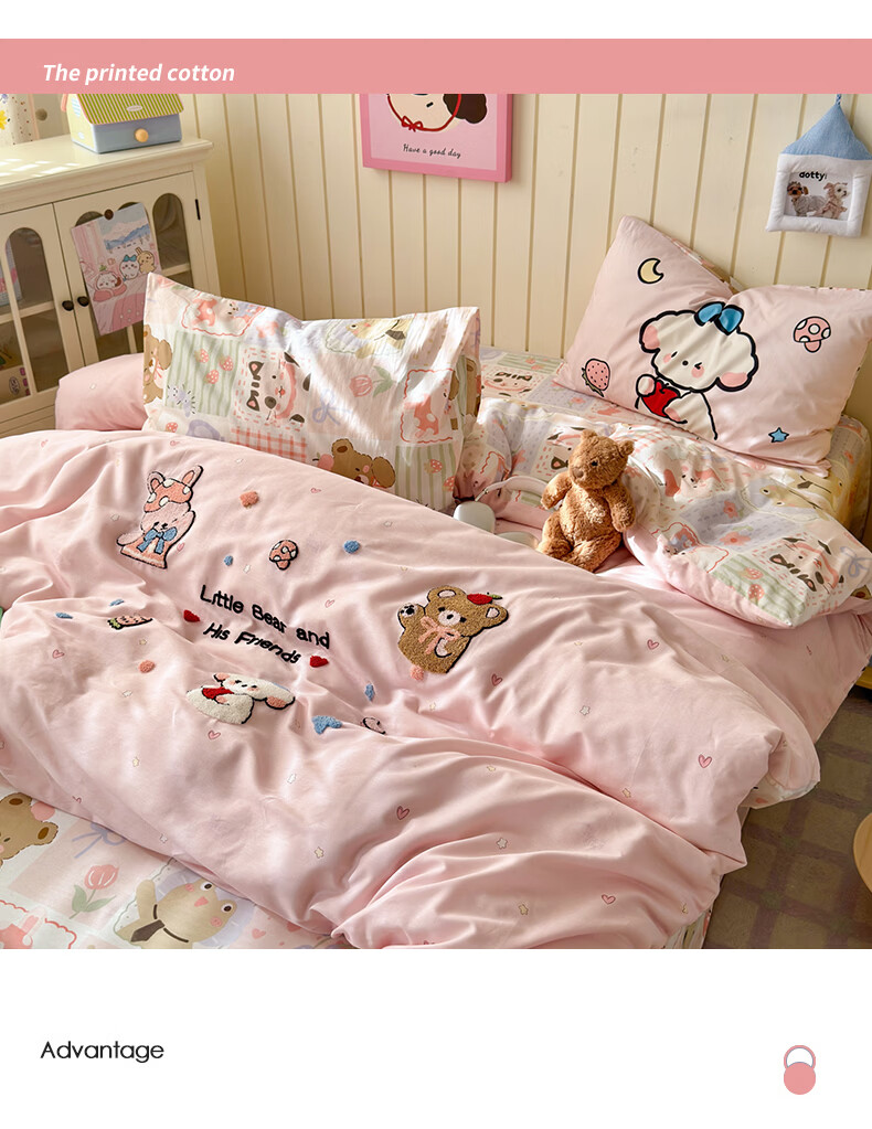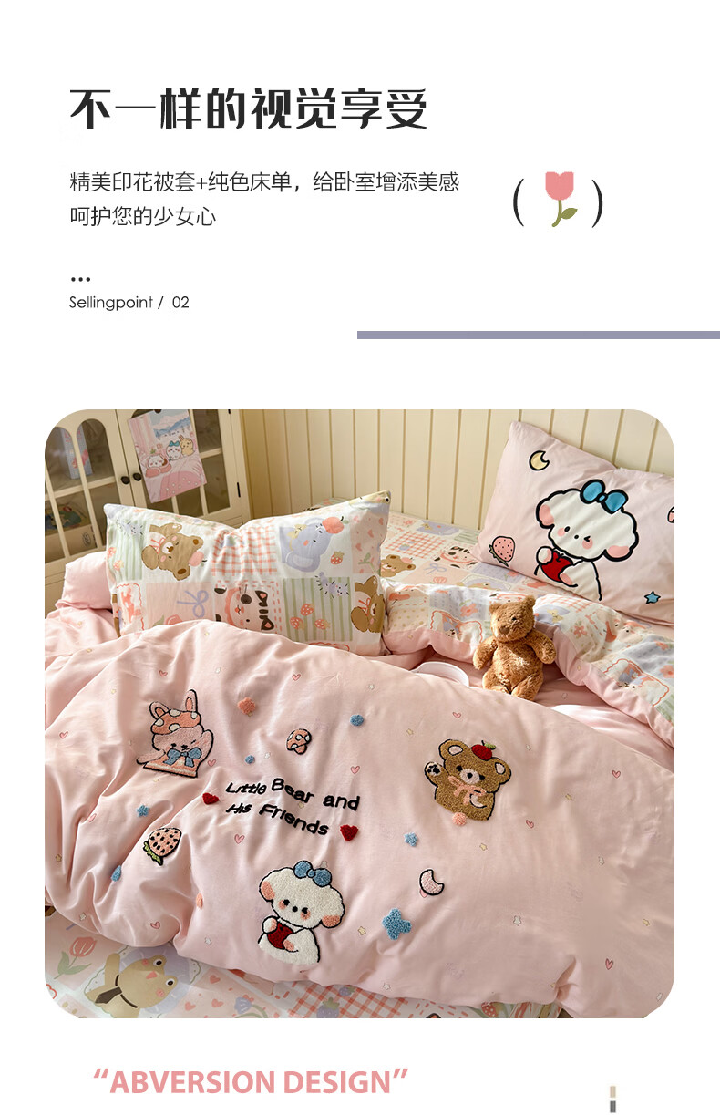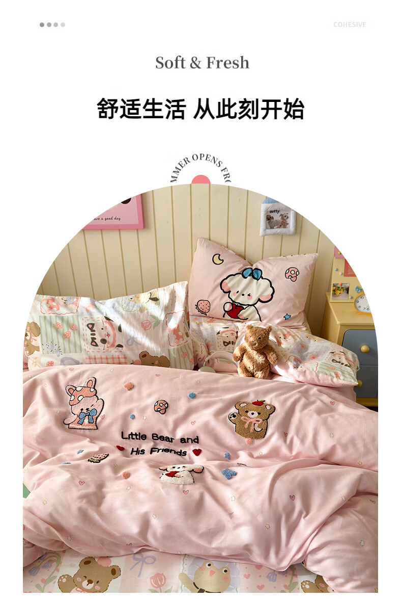 一默全棉四件套100%纯棉2026新款被套床单枕套毛巾绣马上有钱四件套 马上有钱-粉色 2.0m 床单款 (被套200*230cm) 四件套