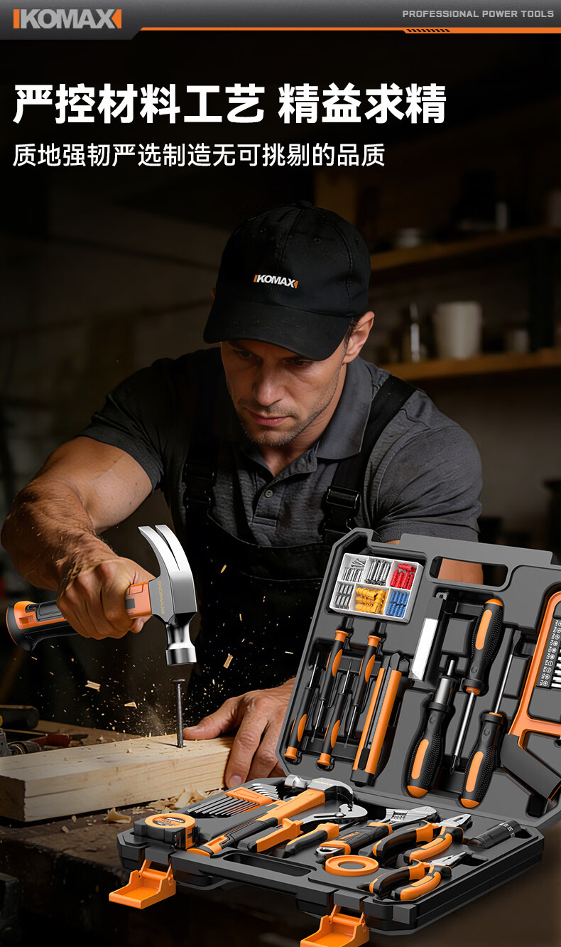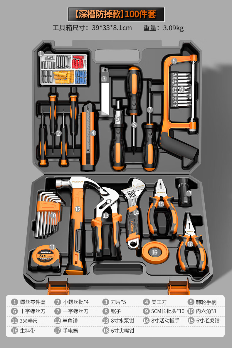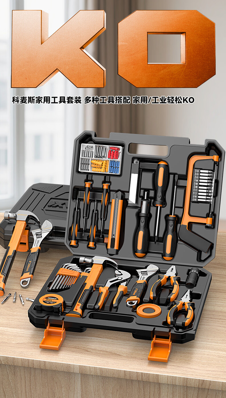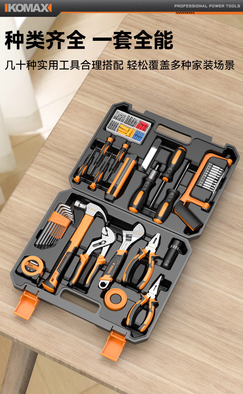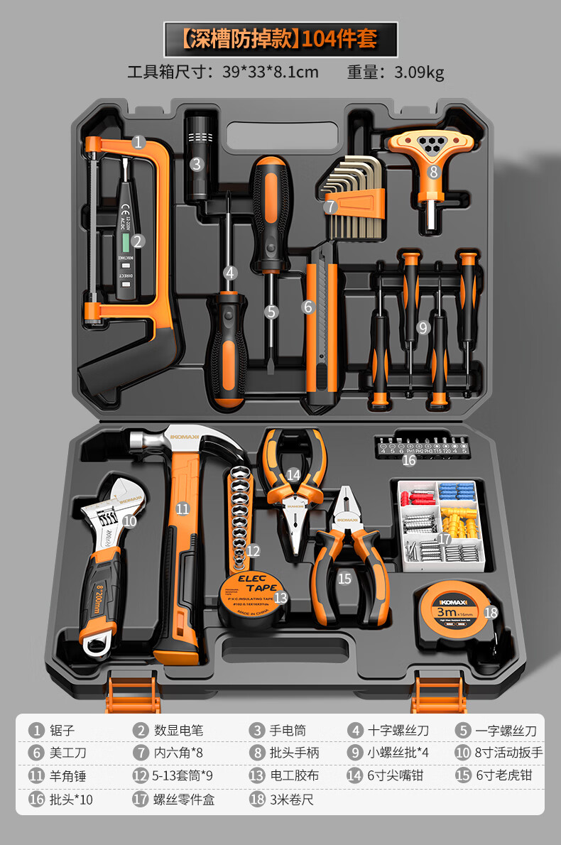 科麦斯(KOMAX)棘轮套筒全套家用五金工具箱螺丝刀钳子扳手家庭维修手动工具套装 【深槽防掉款】104件套