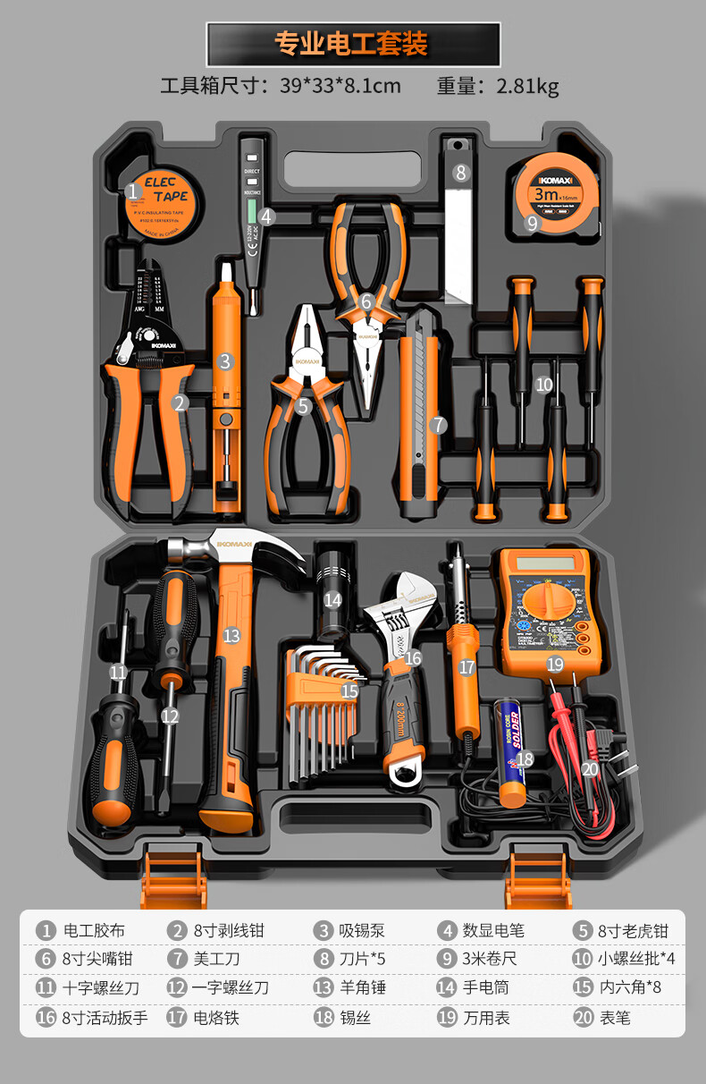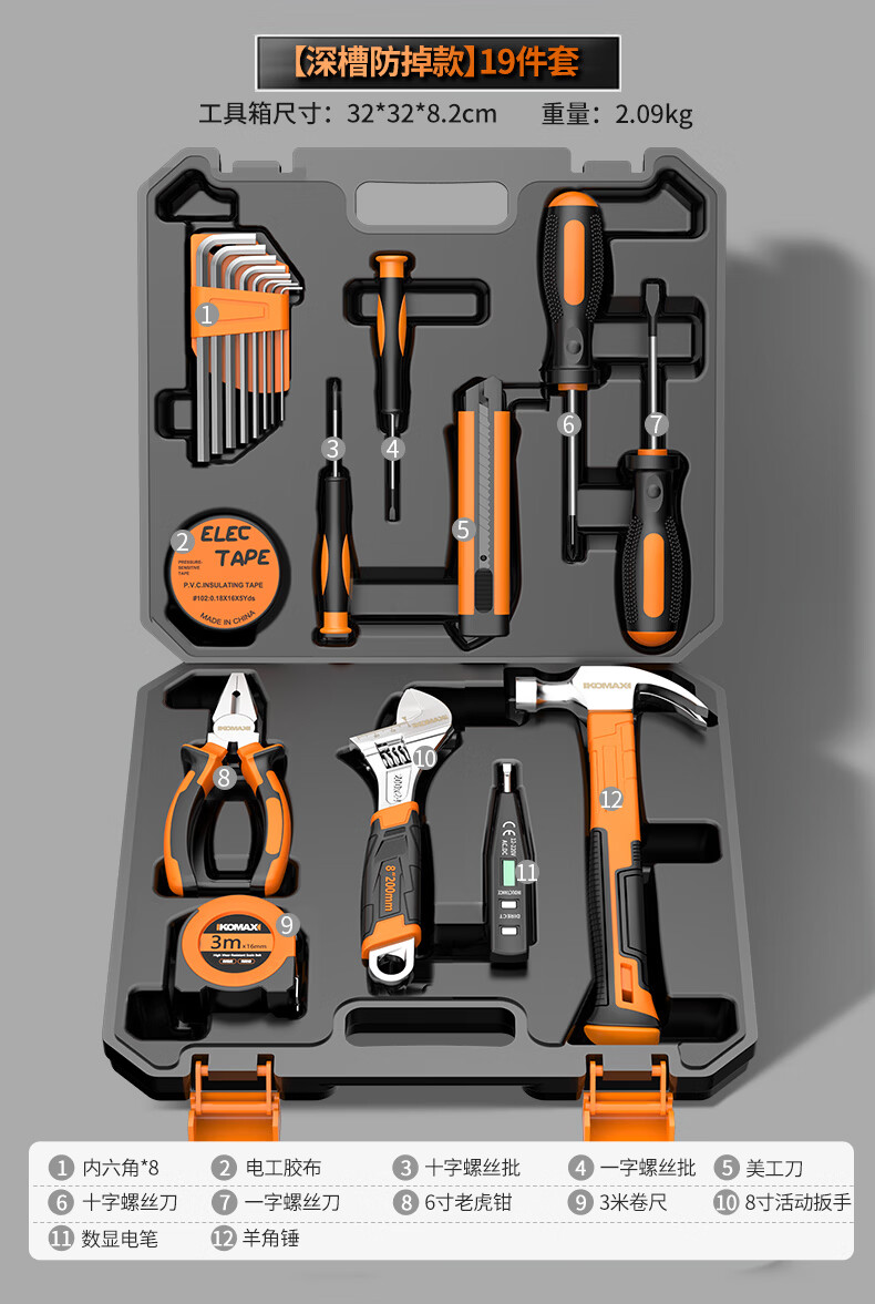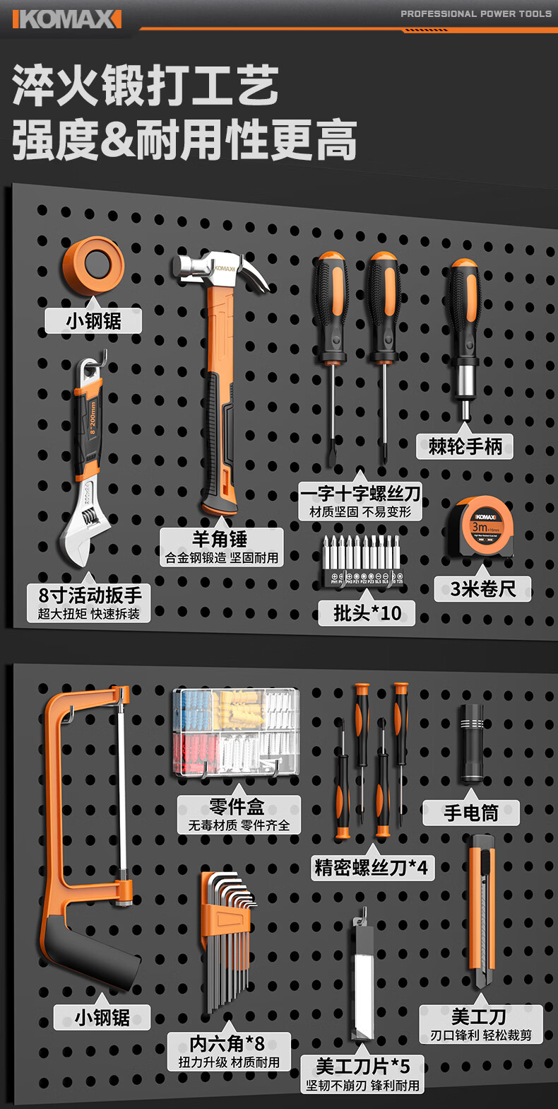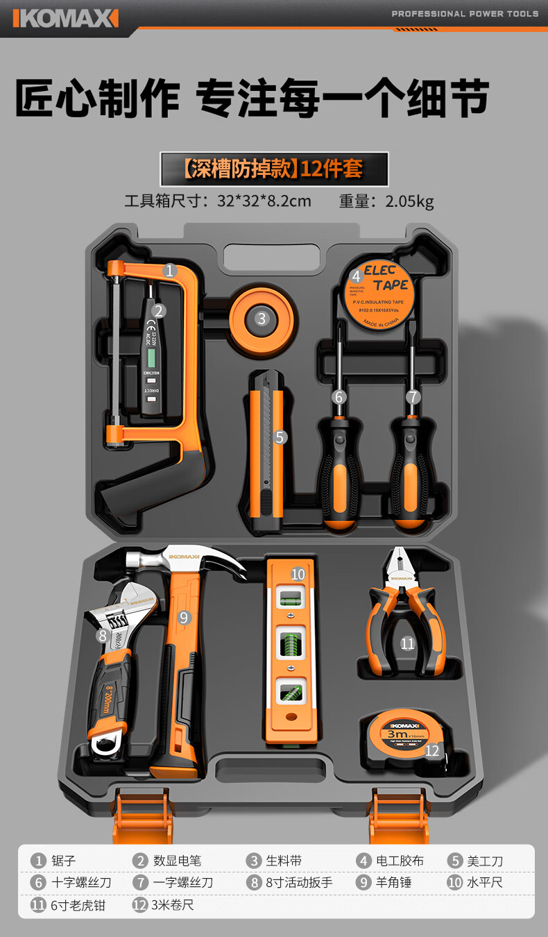 科麦斯(KOMAX)棘轮套筒全套家用五金工具箱螺丝刀钳子扳手家庭维修手动工具套装 【深槽防掉款】104件套