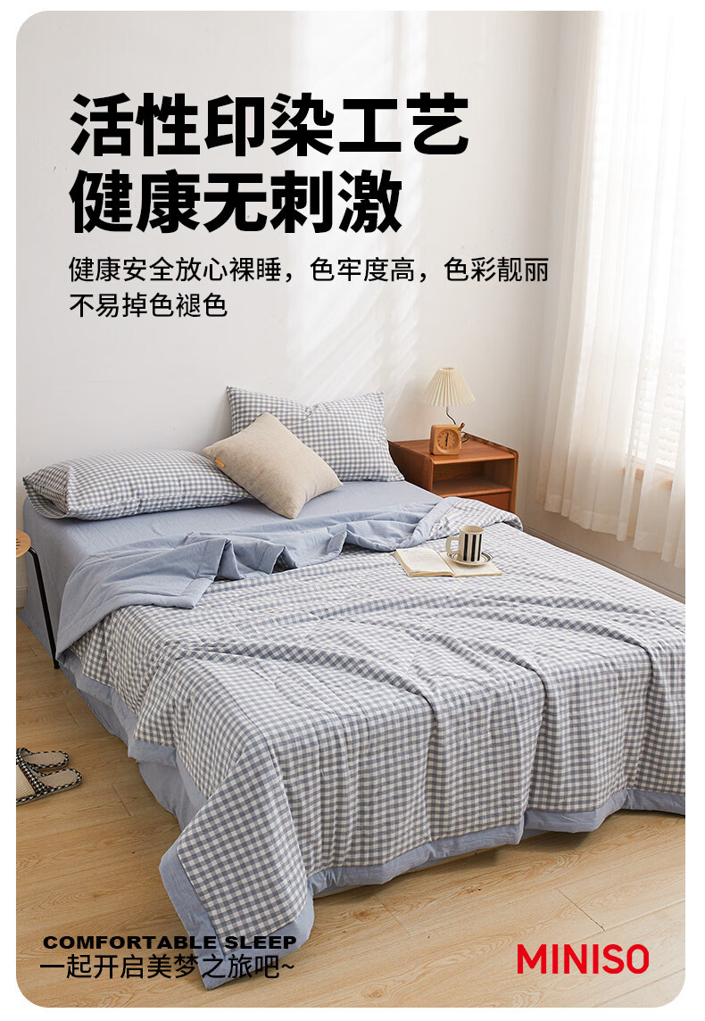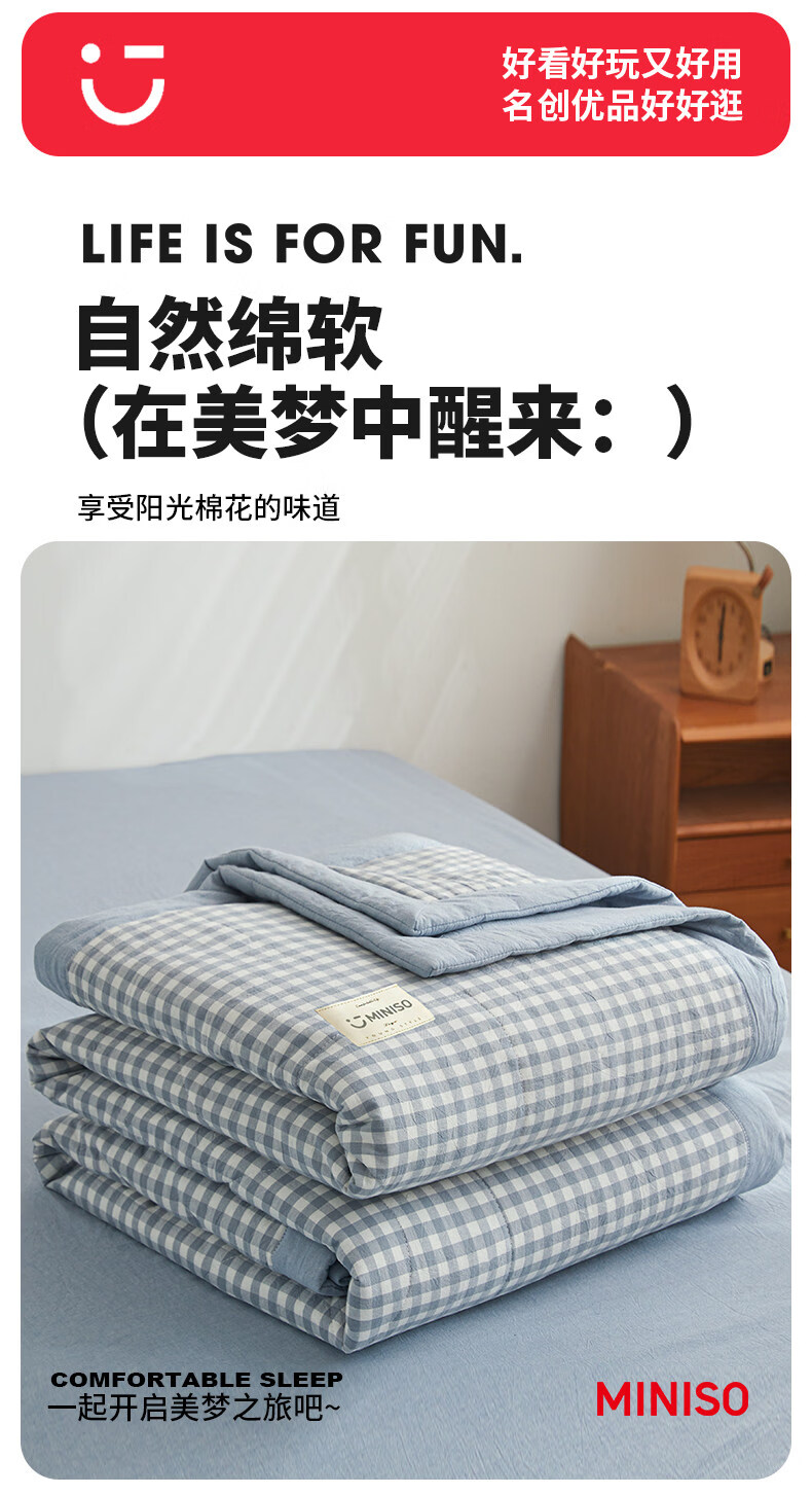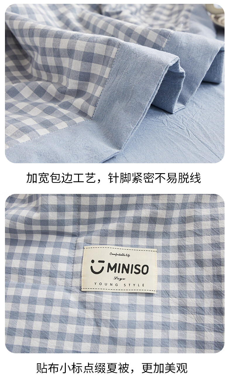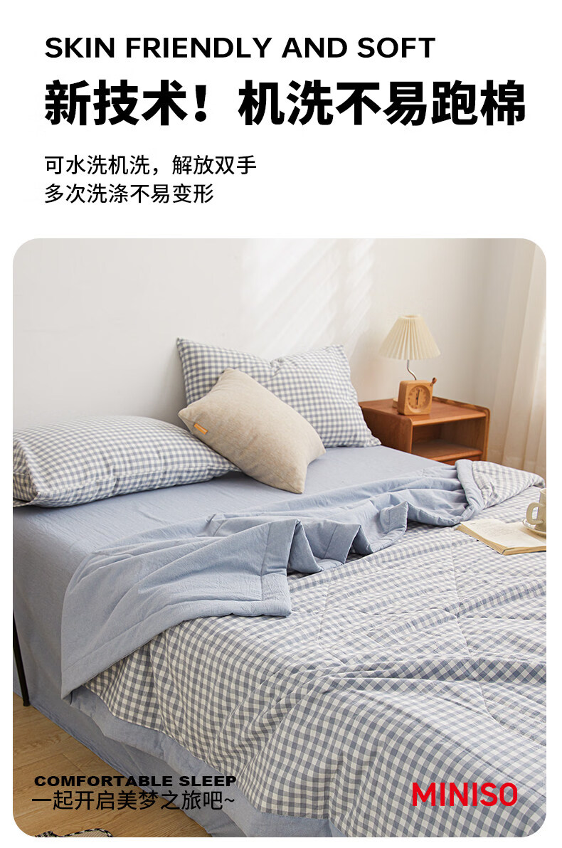 名创优品(MINISO)纯棉夏凉被夏被 夏季全棉空调被棉被芯单双人宿舍薄被子 miniso-浅蓝小格 110*150cm夏被