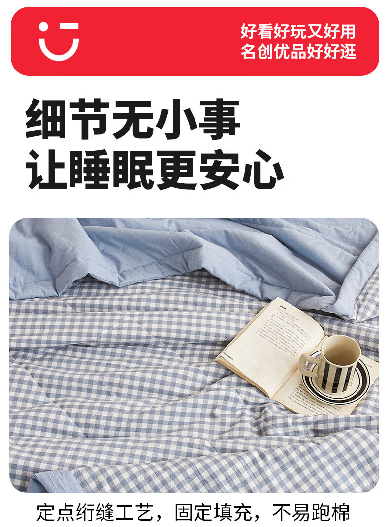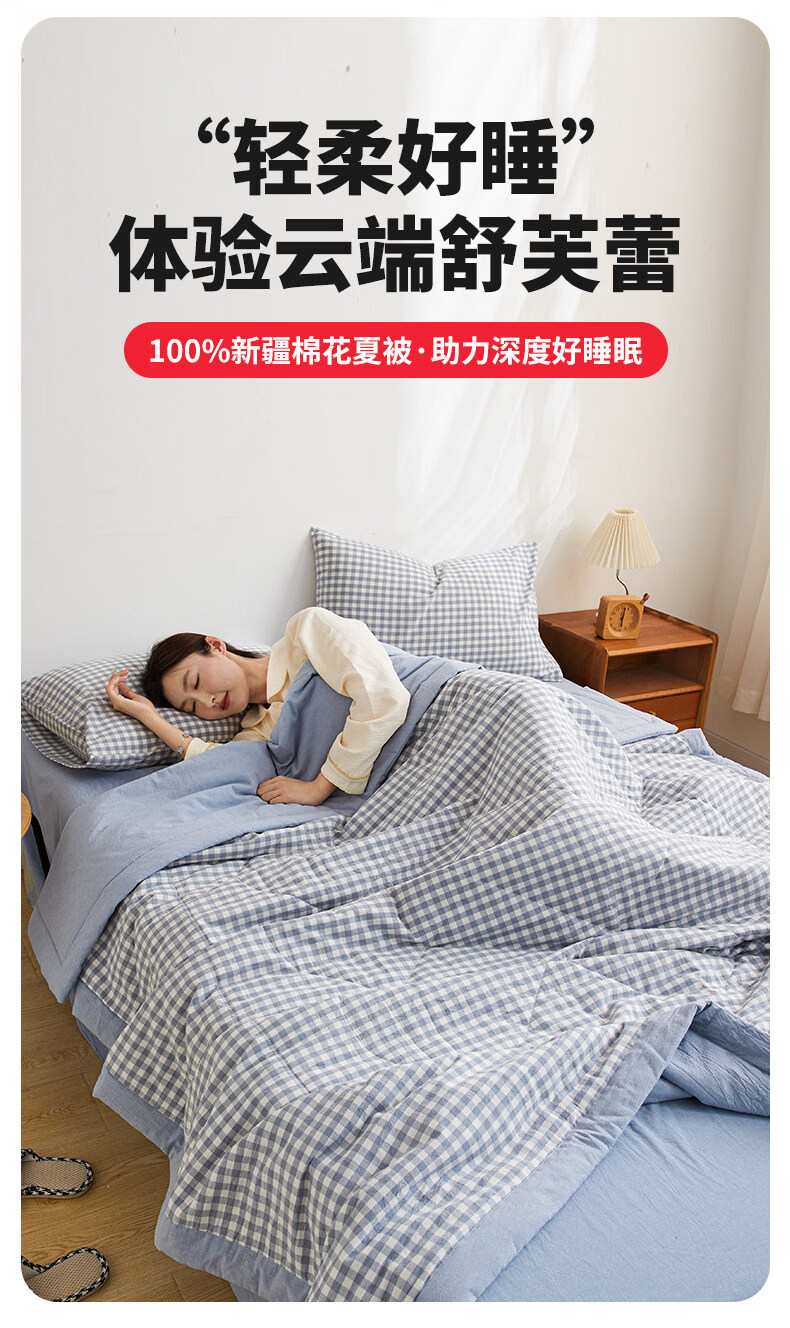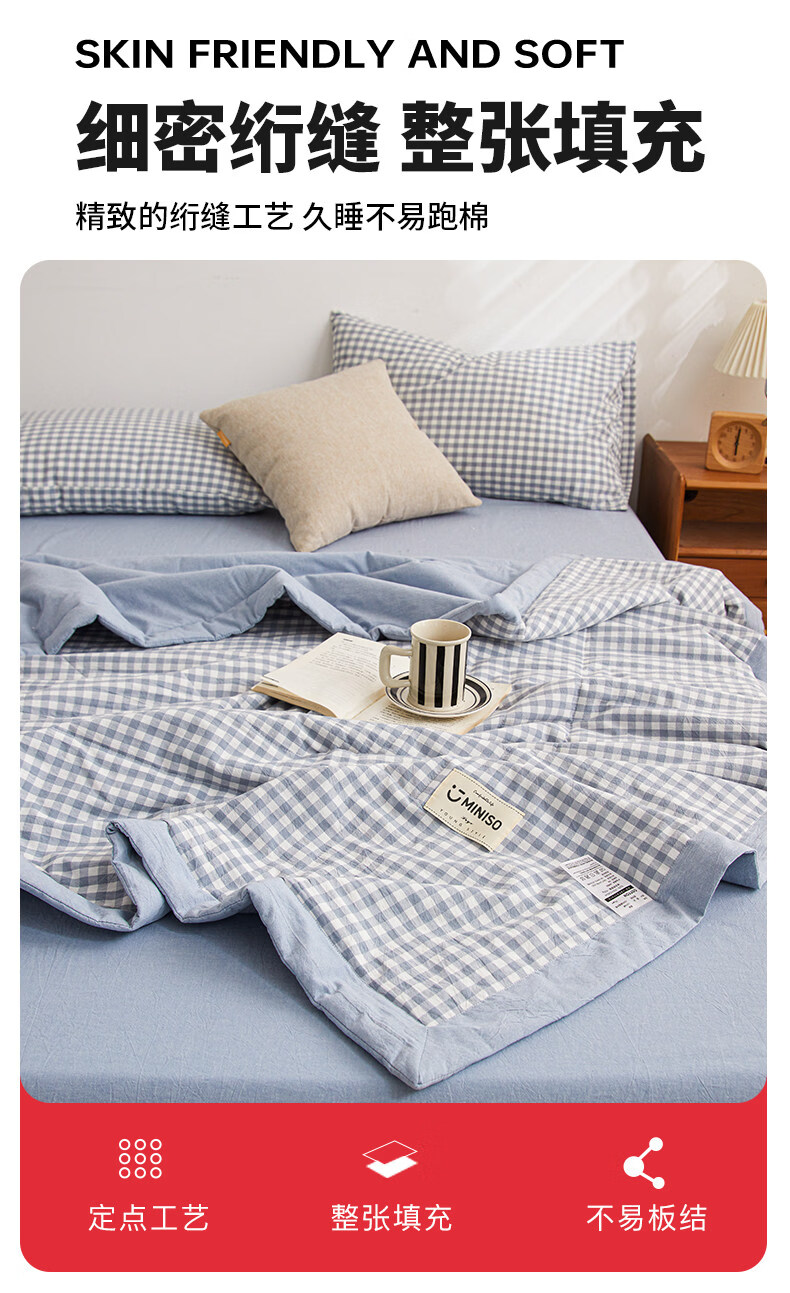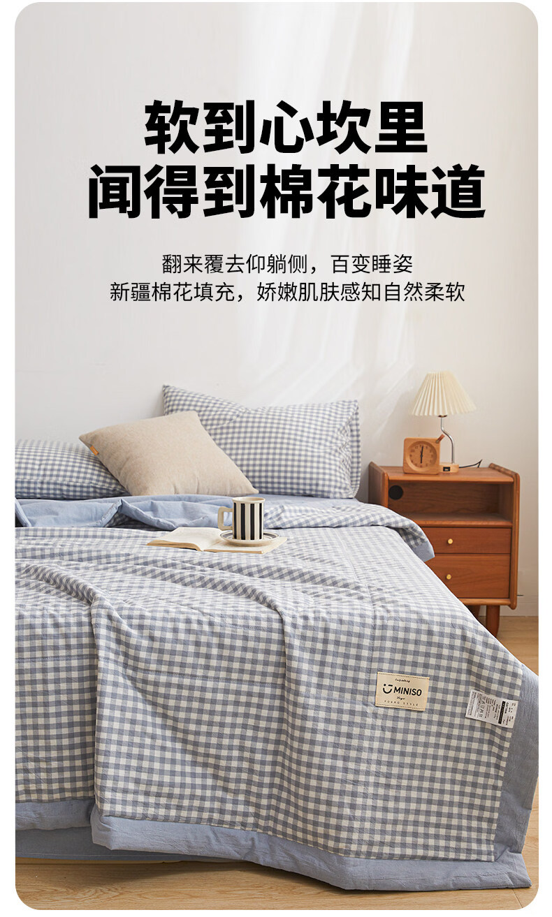 名创优品(MINISO)纯棉夏凉被夏被 夏季全棉空调被棉被芯单双人宿舍薄被子 miniso-浅蓝小格 110*150cm夏被