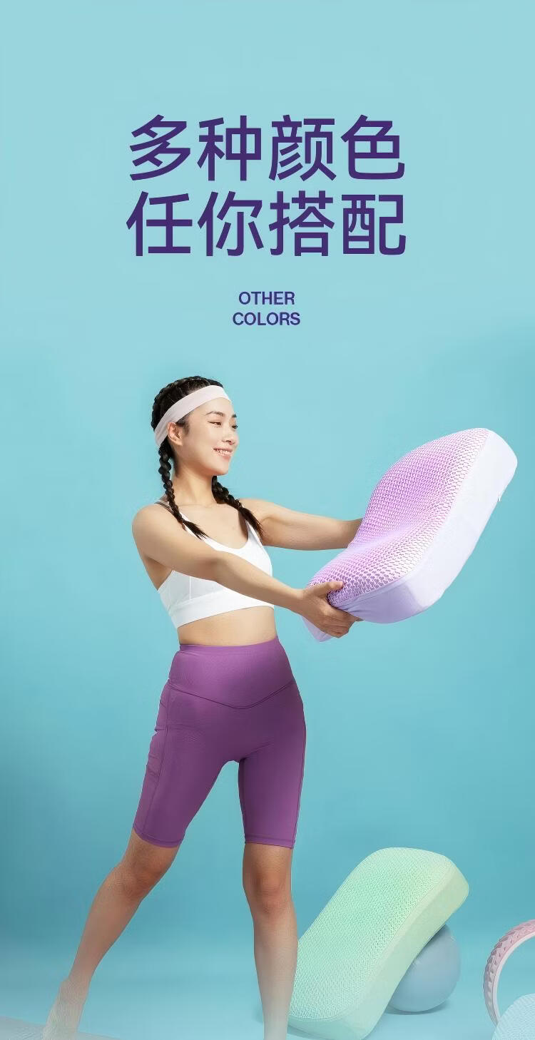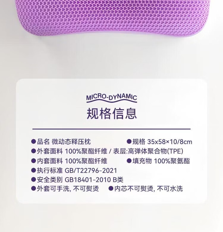ROLAND LIVE微动态释压枕头科学分区护颈助睡眠透气四季枕慢回弹单人家用枕芯 WW微动态释压枕-紫色 【单只装】 保养款35*58cm